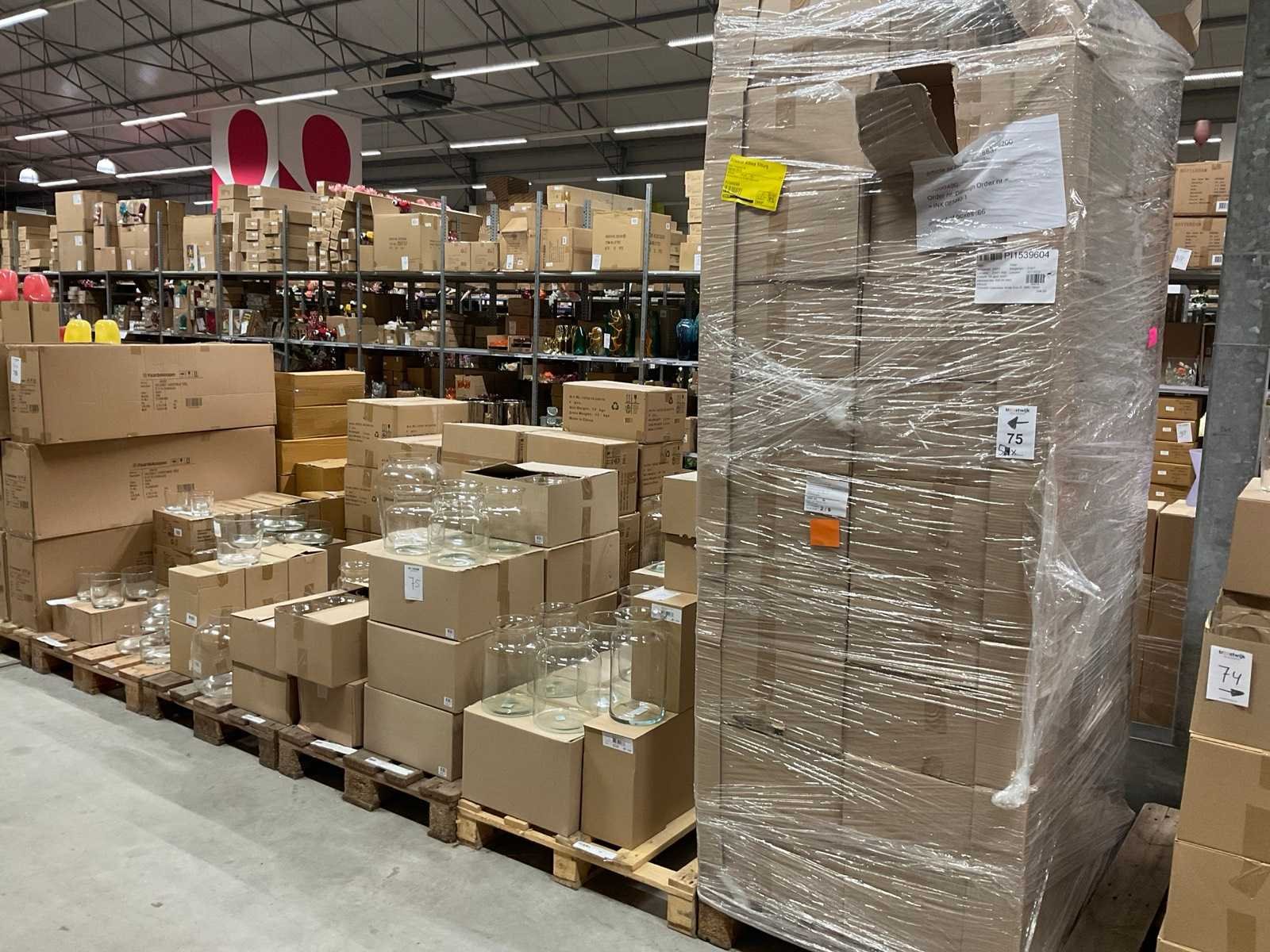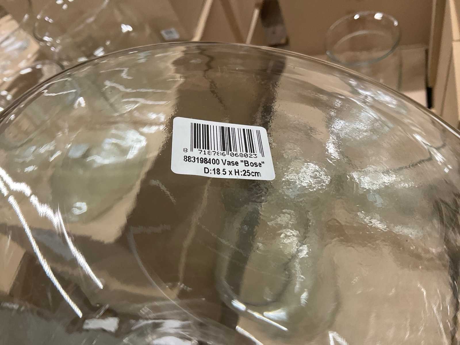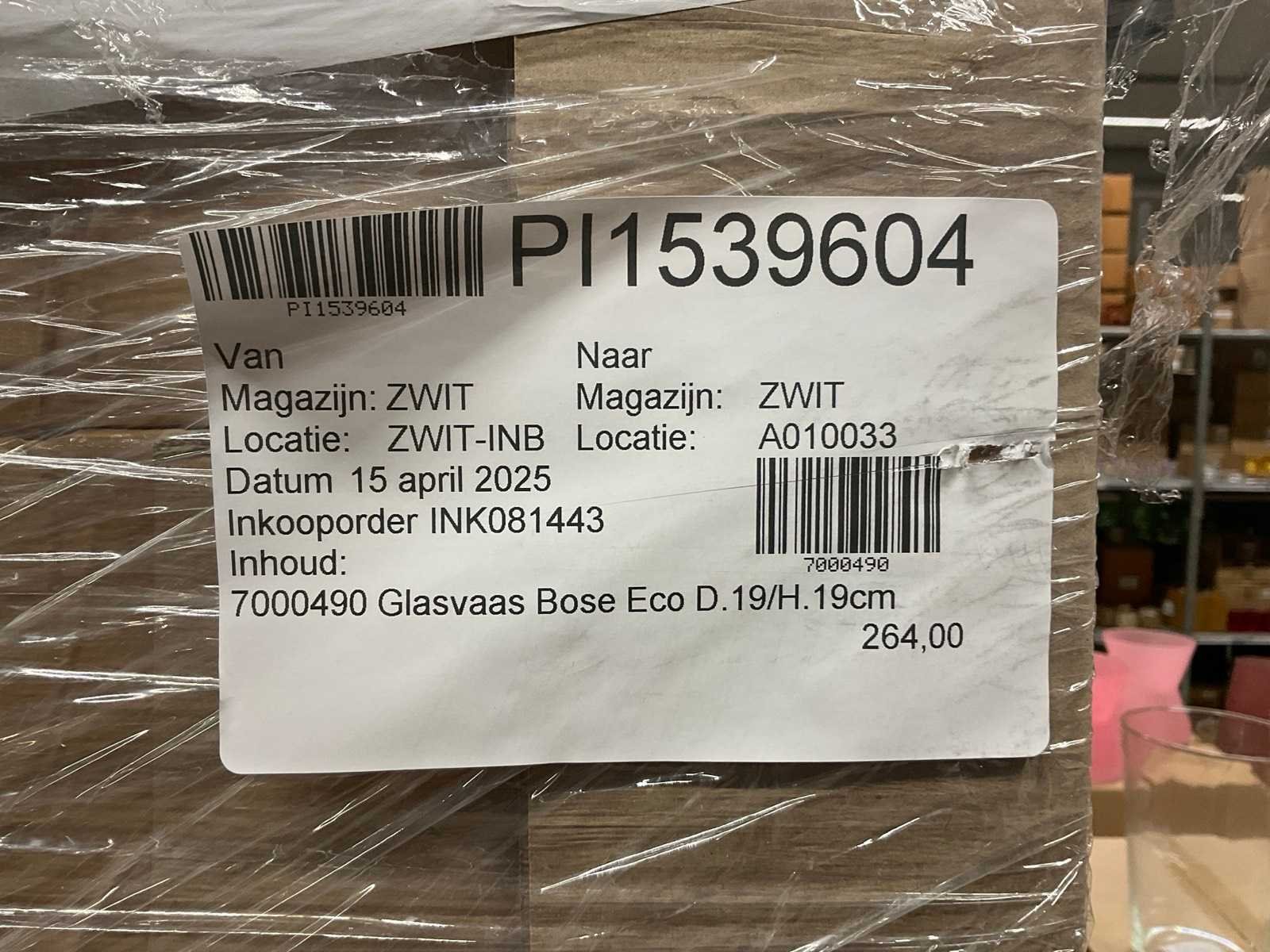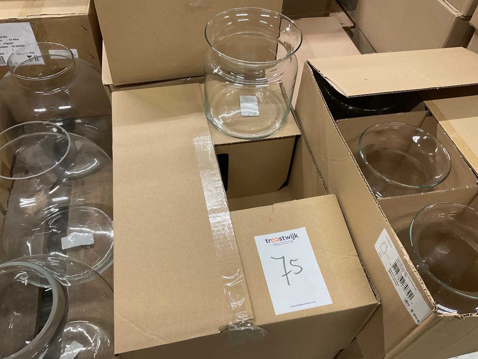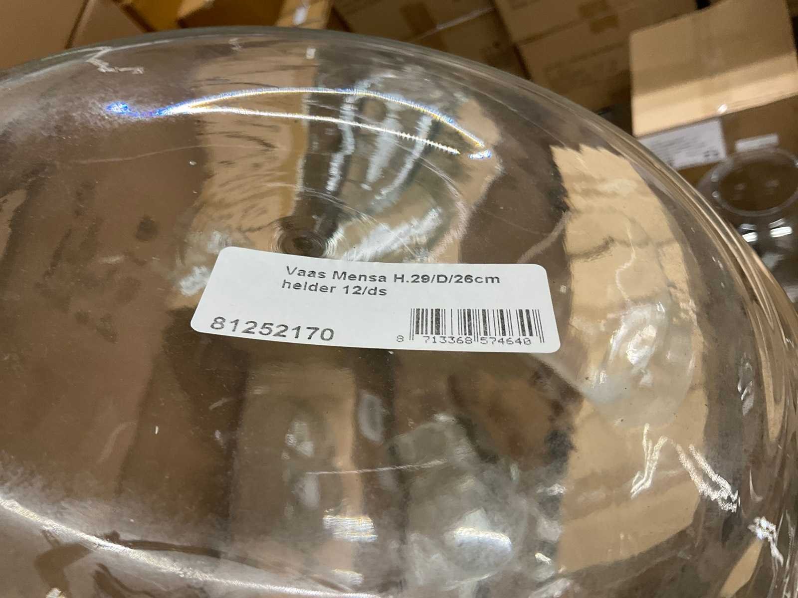 Glazen vazen en schalen op 5 pallets, in diverse vormen en formaten, inclusief pallets. Merk: Glazen