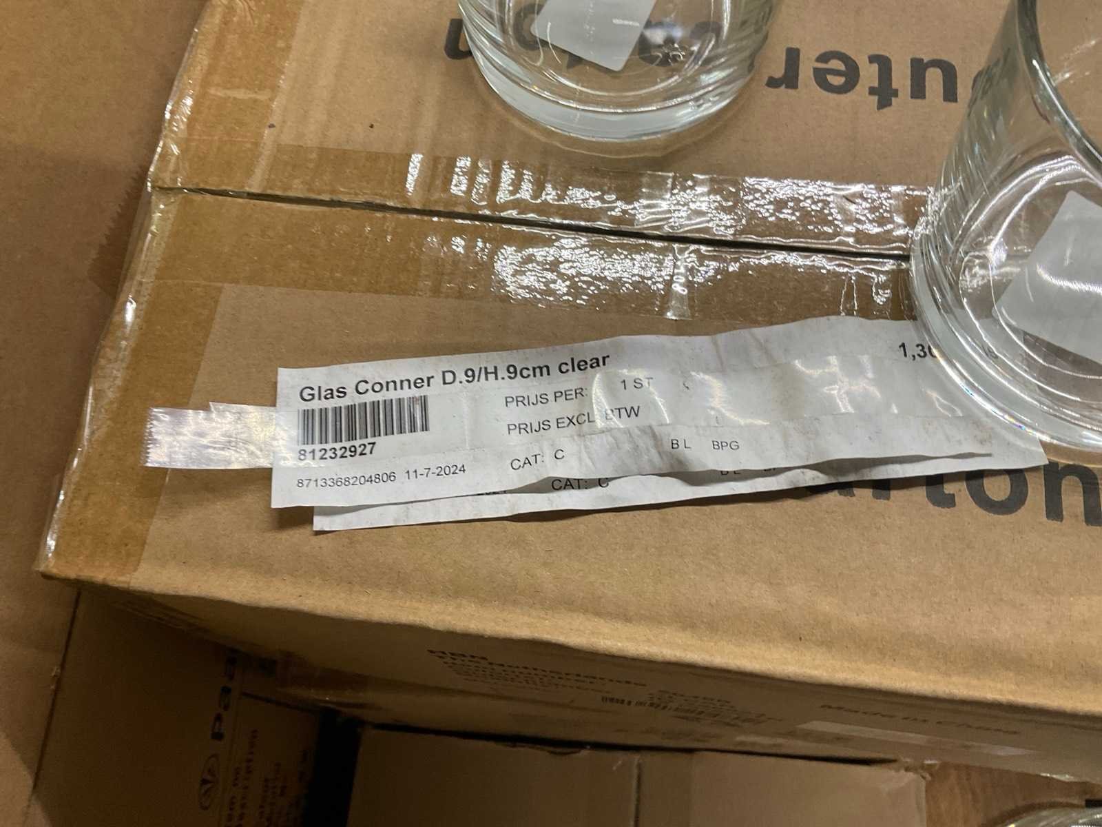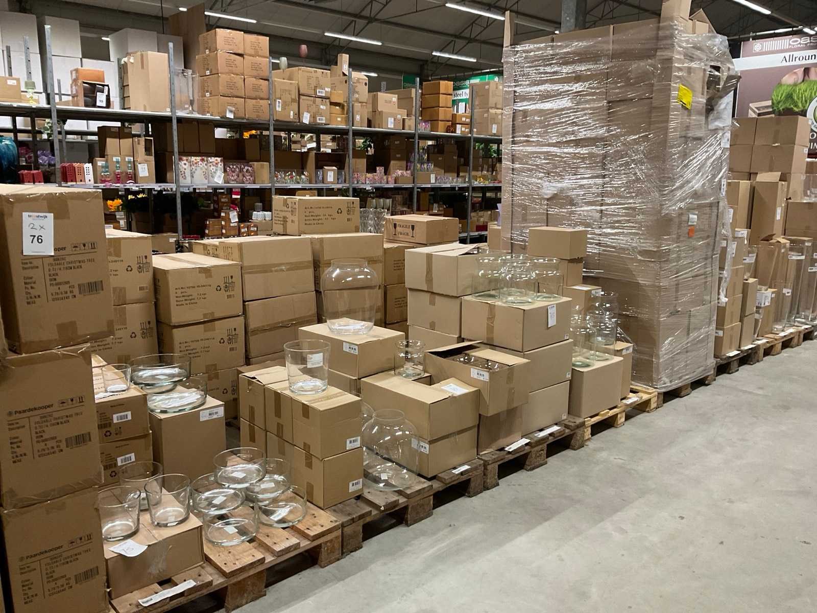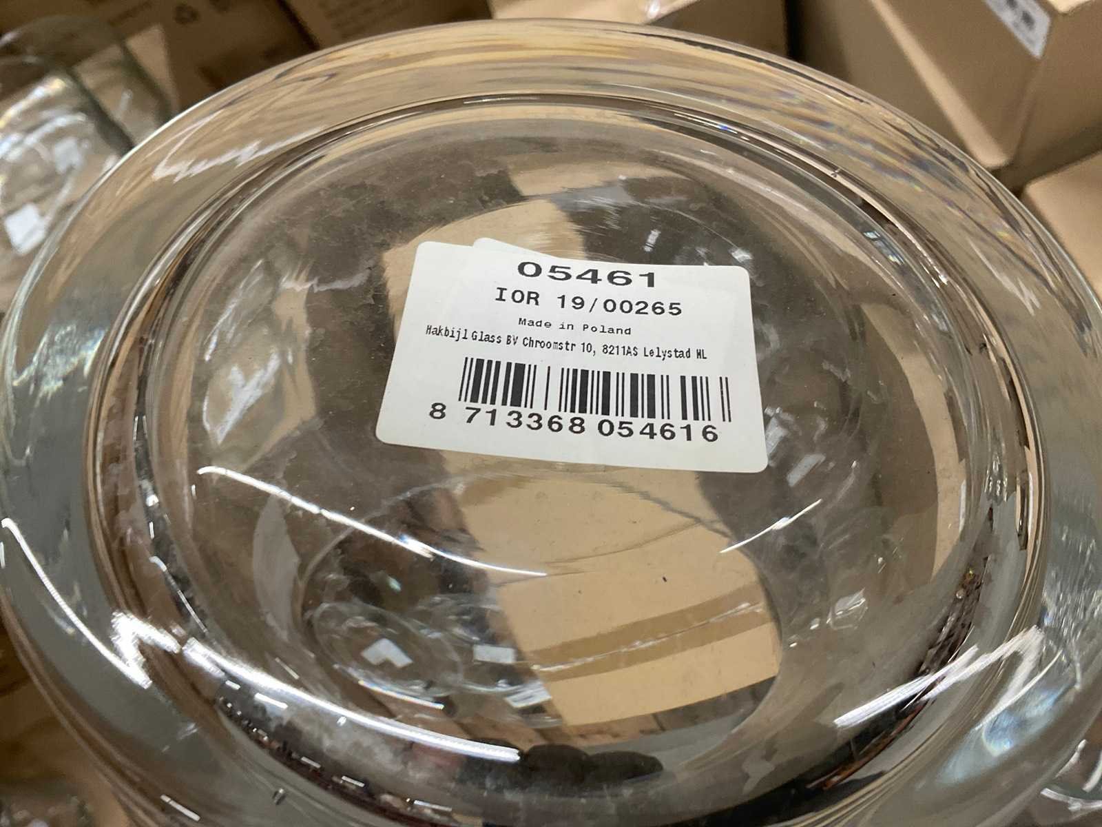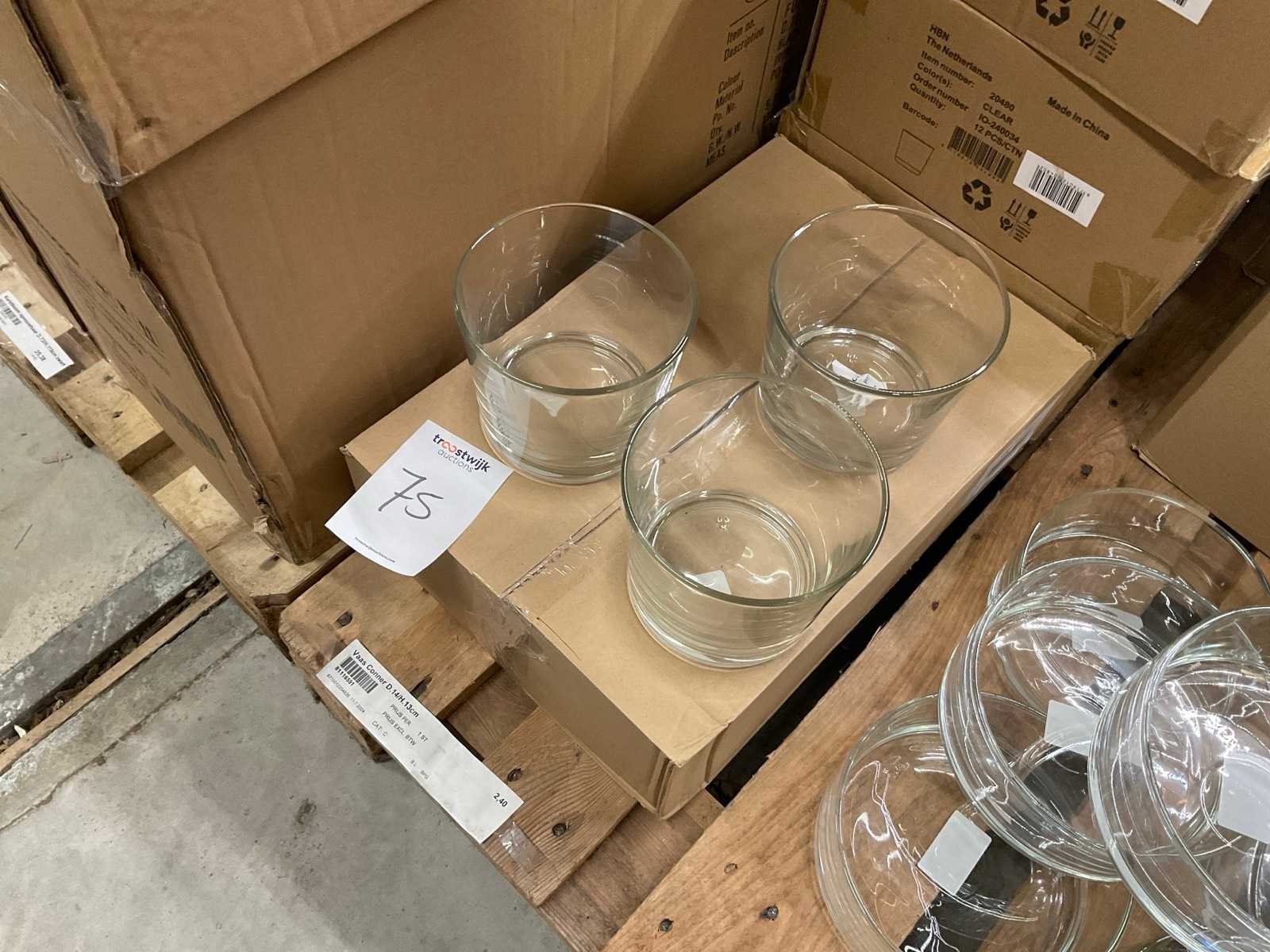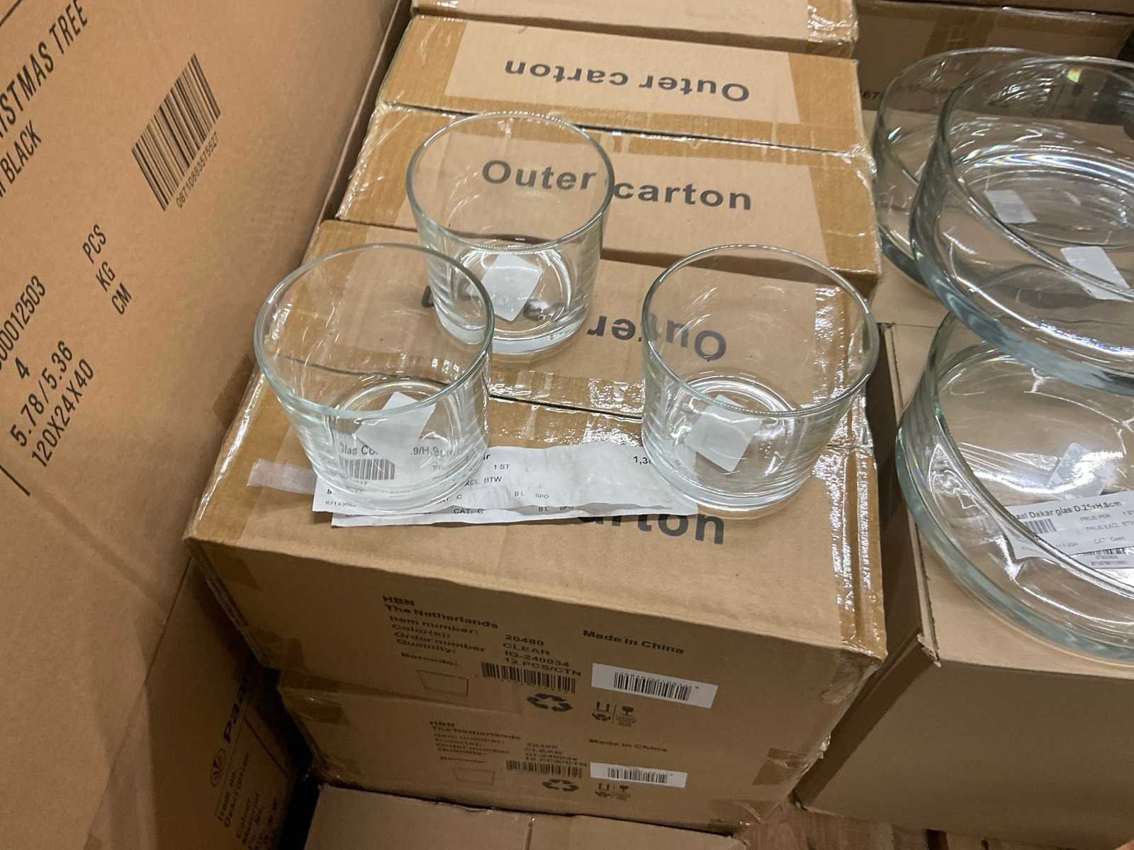 Glazen vazen en schalen op 5 pallets, in diverse vormen en formaten, inclusief pallets. Merk: Glazen