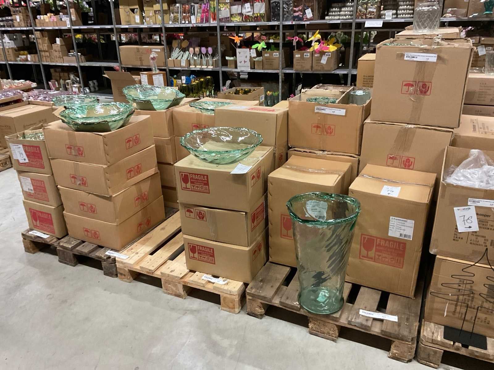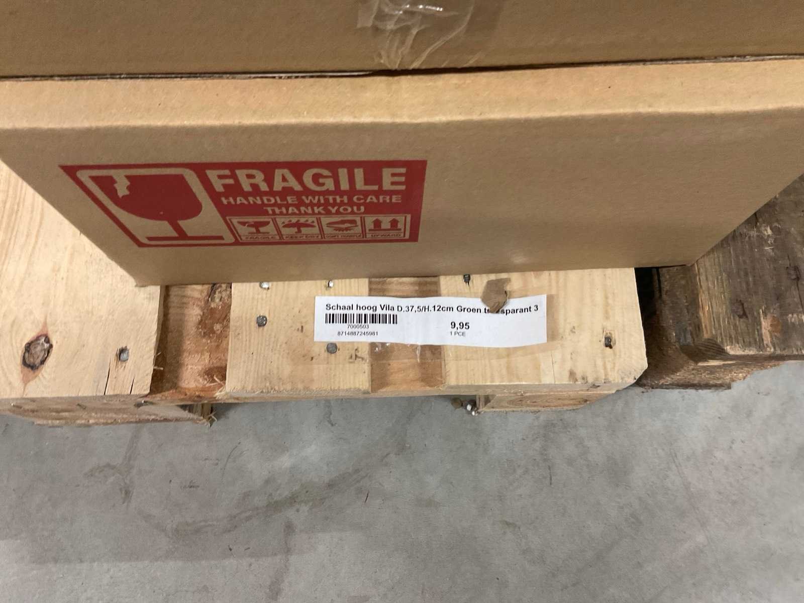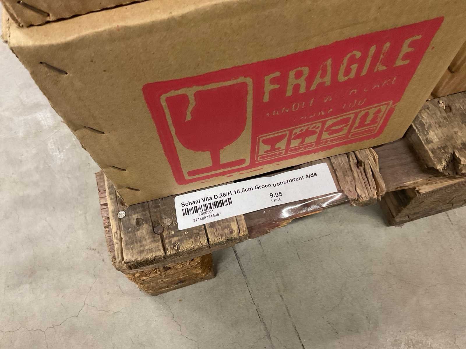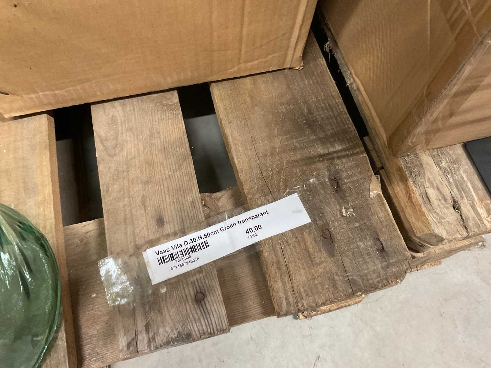 Model Vila, in diverse formaten, kleur groen transparant, op 3 pallets, inclusief pallets.