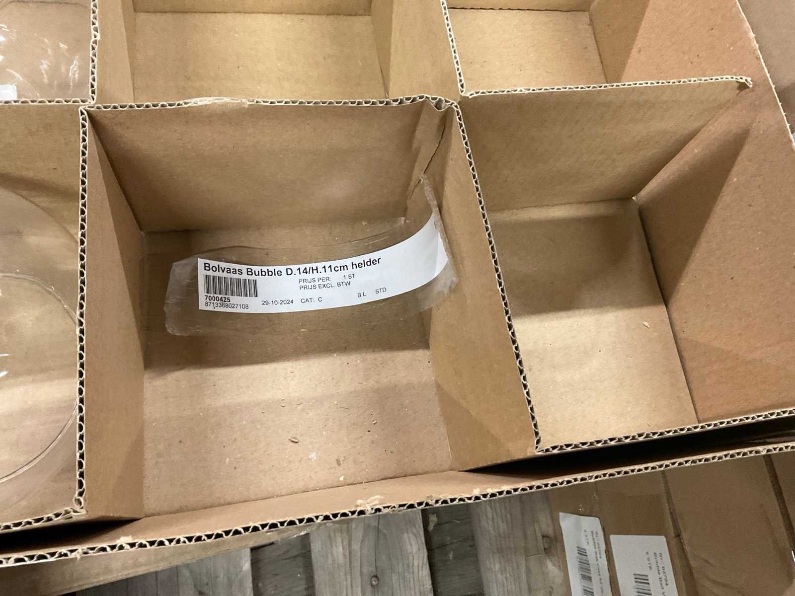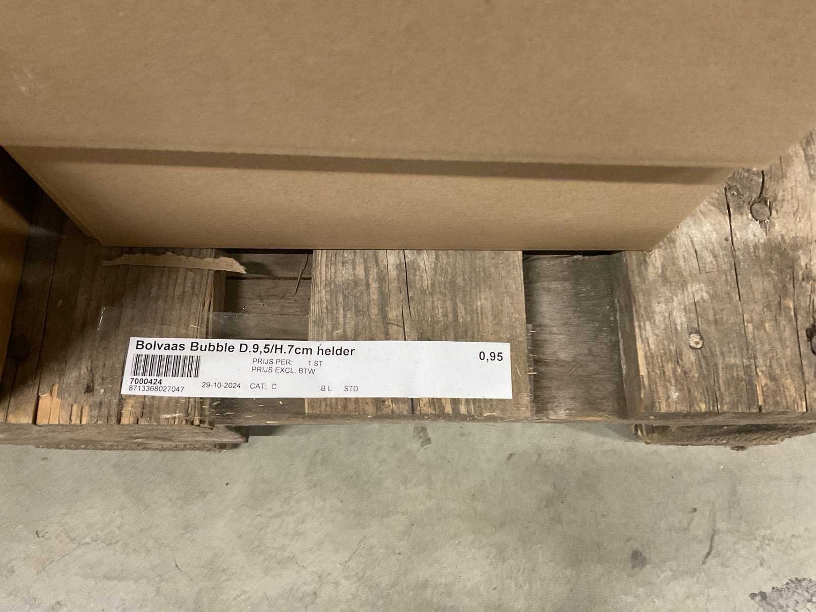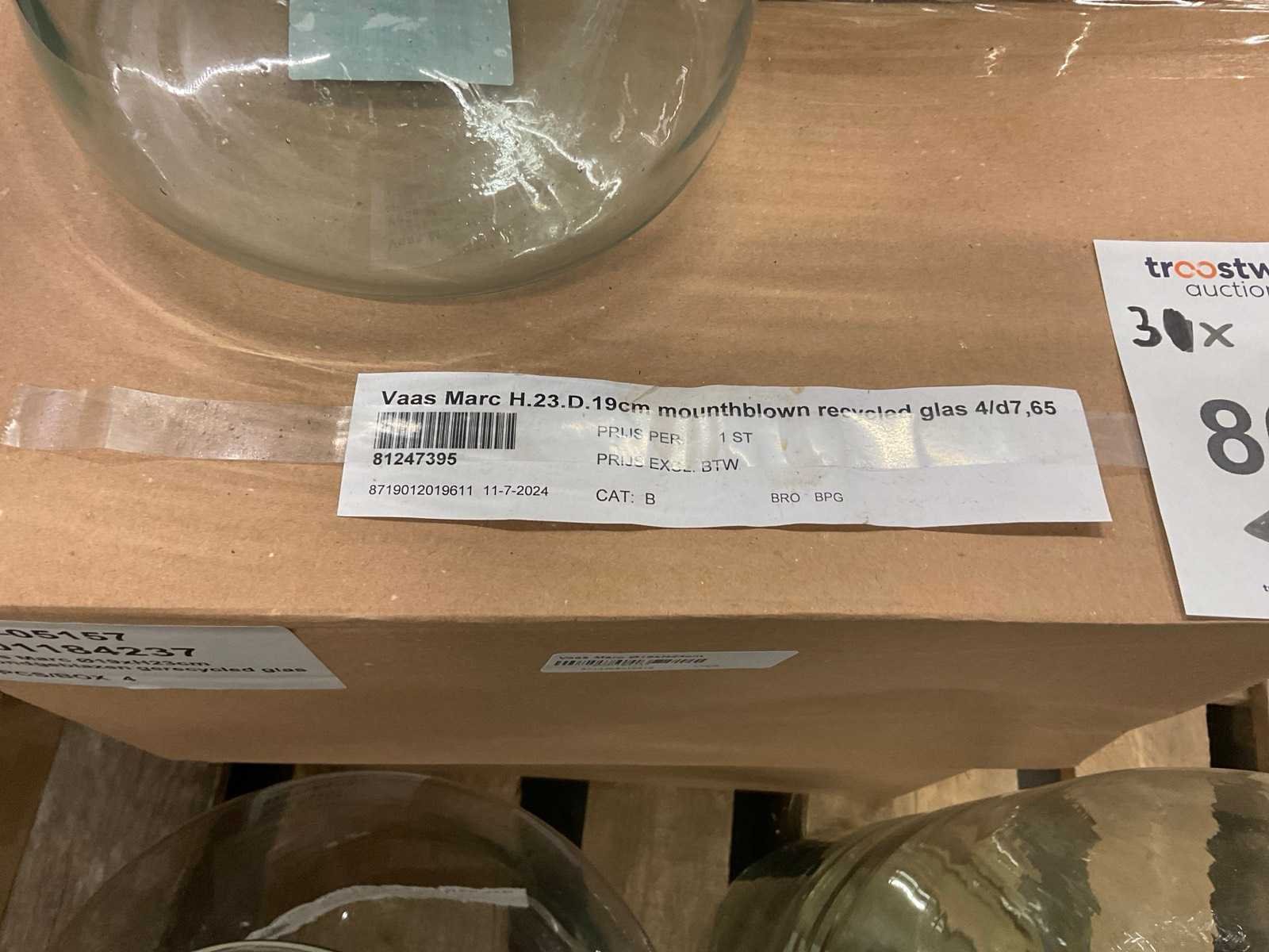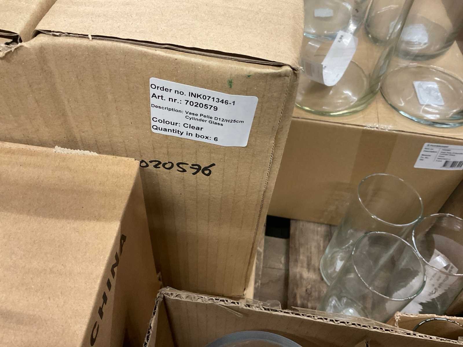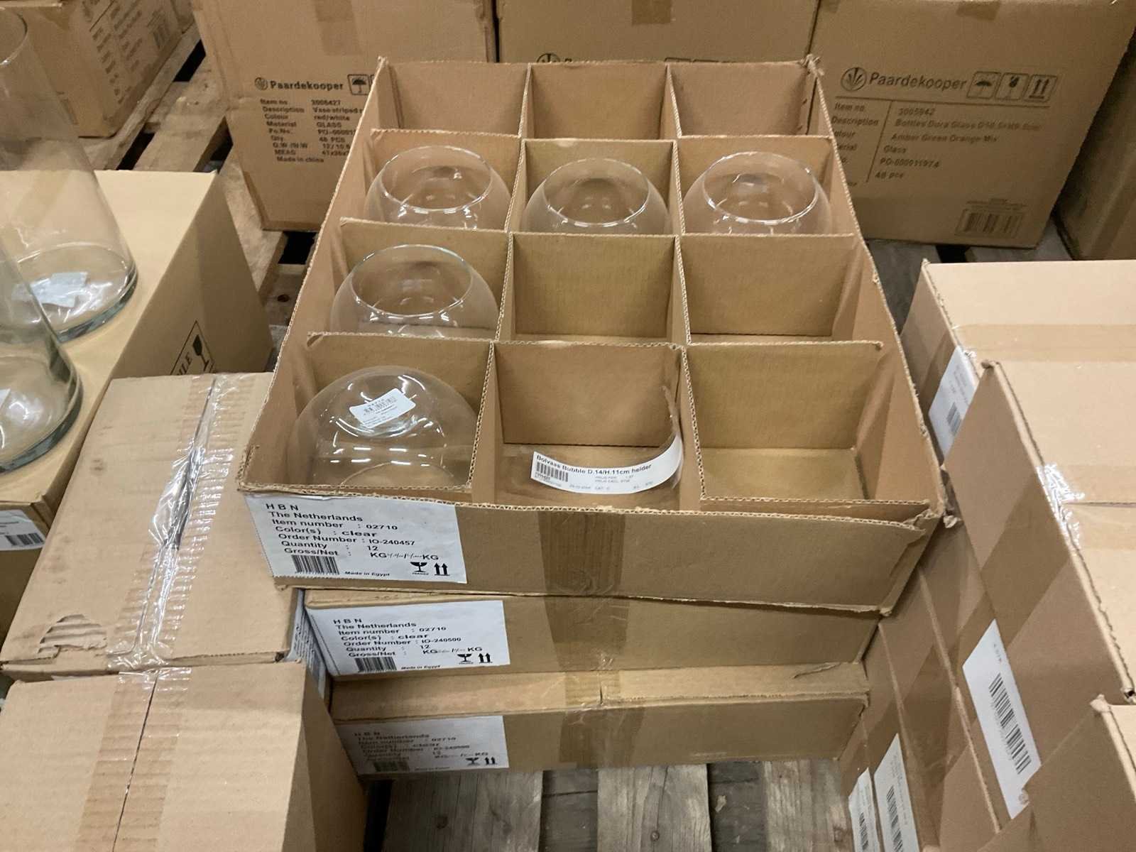 Glazen vazen en schalen op 5 pallets, in diverse vormen en formaten, inclusief pallets. Merk: Glazen