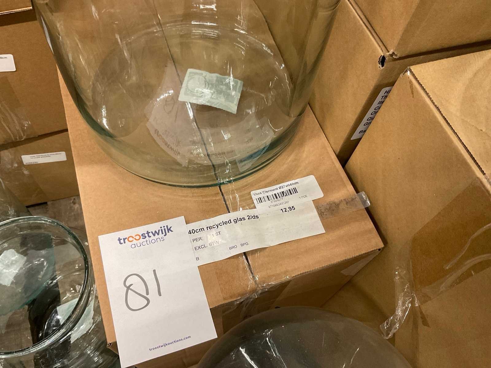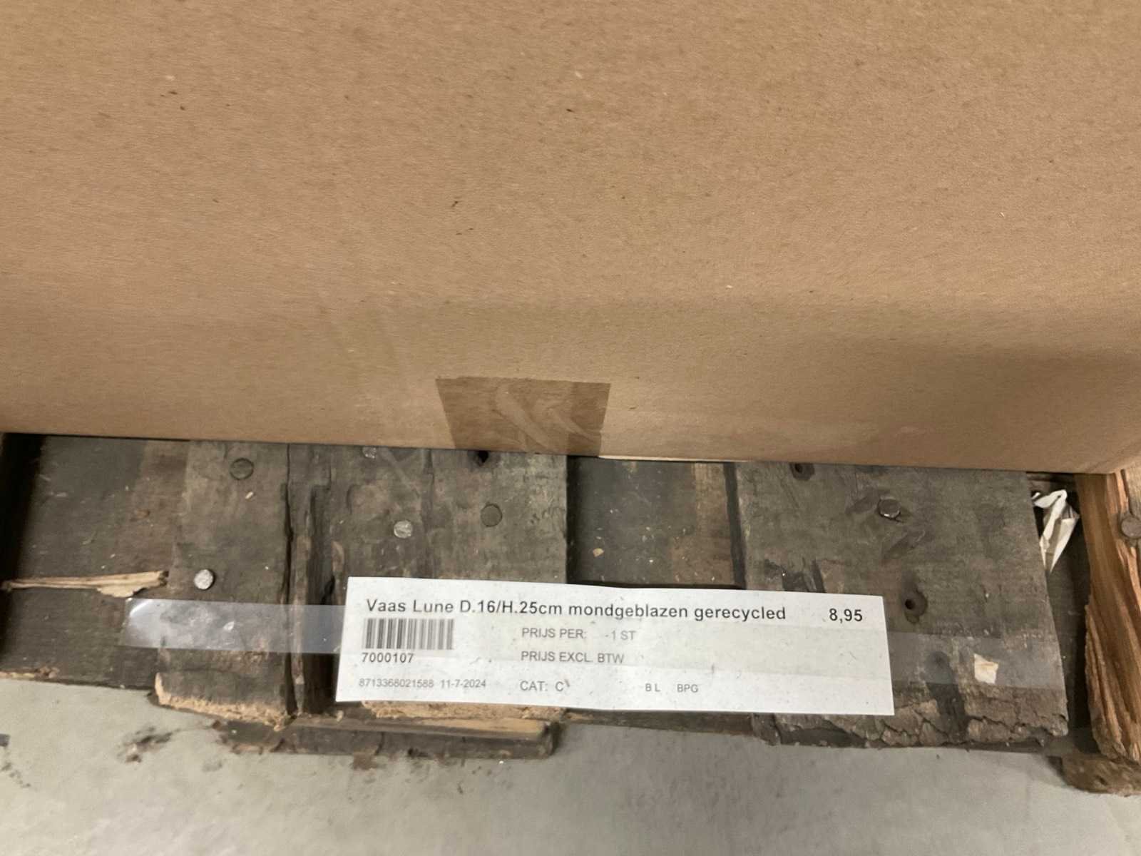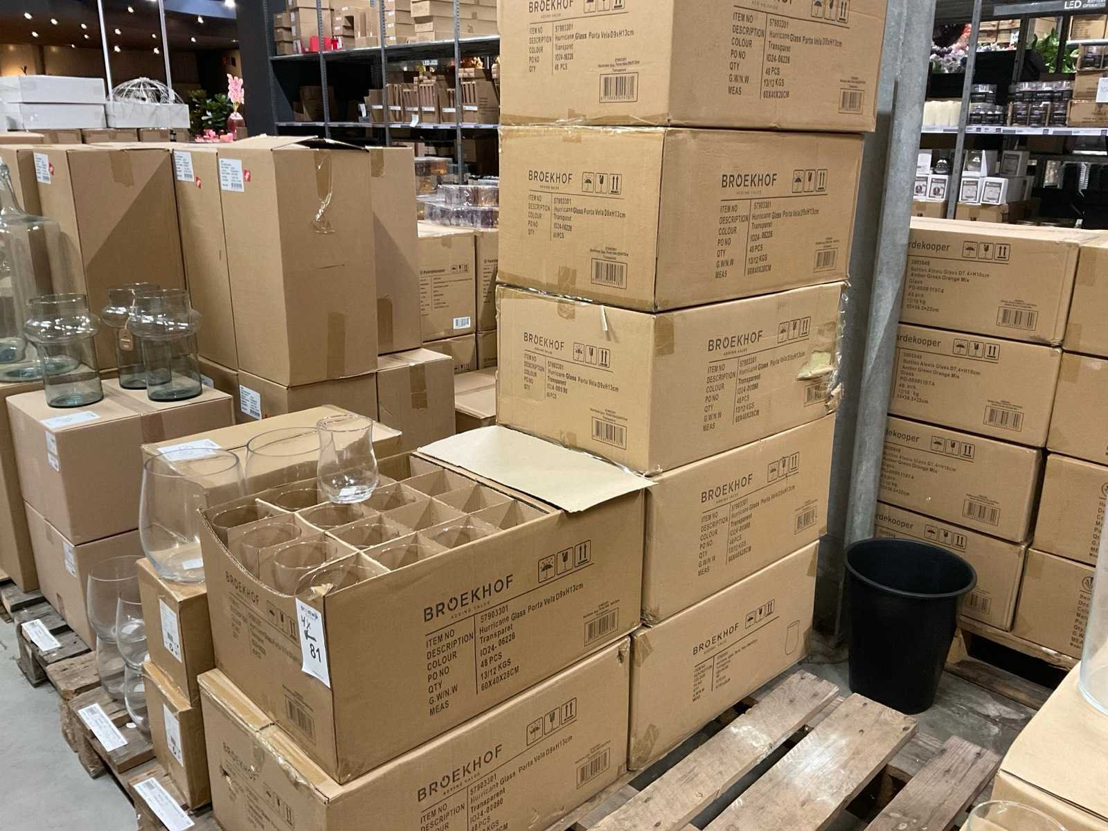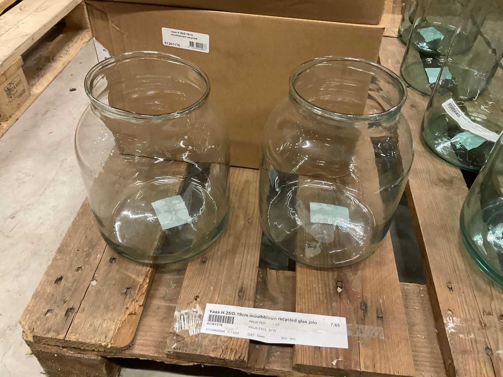 Glazen vazen en windlichten op 4 pallets, in diverse vormen en formaten, inclusief pallets. Merk: Glazen