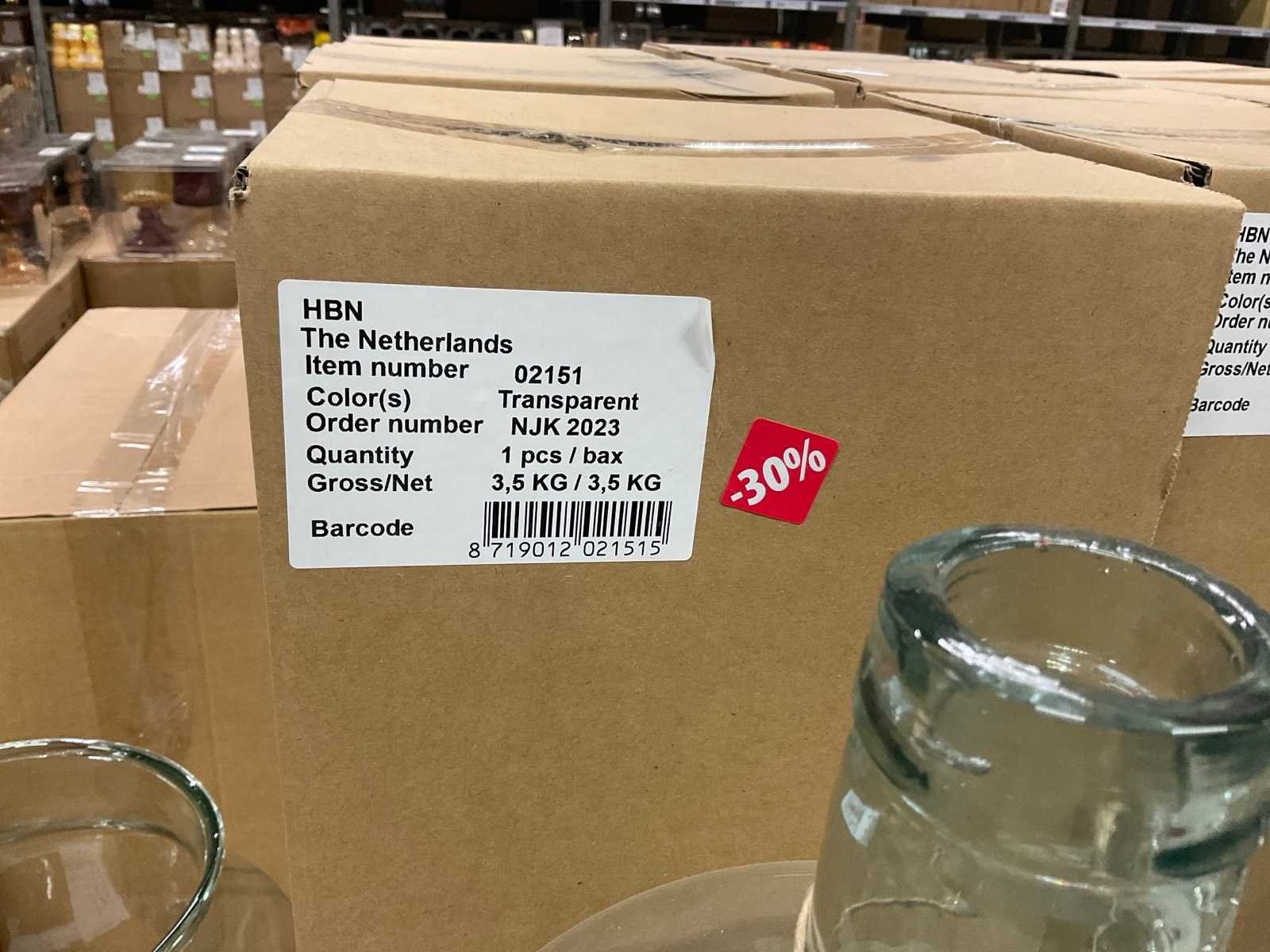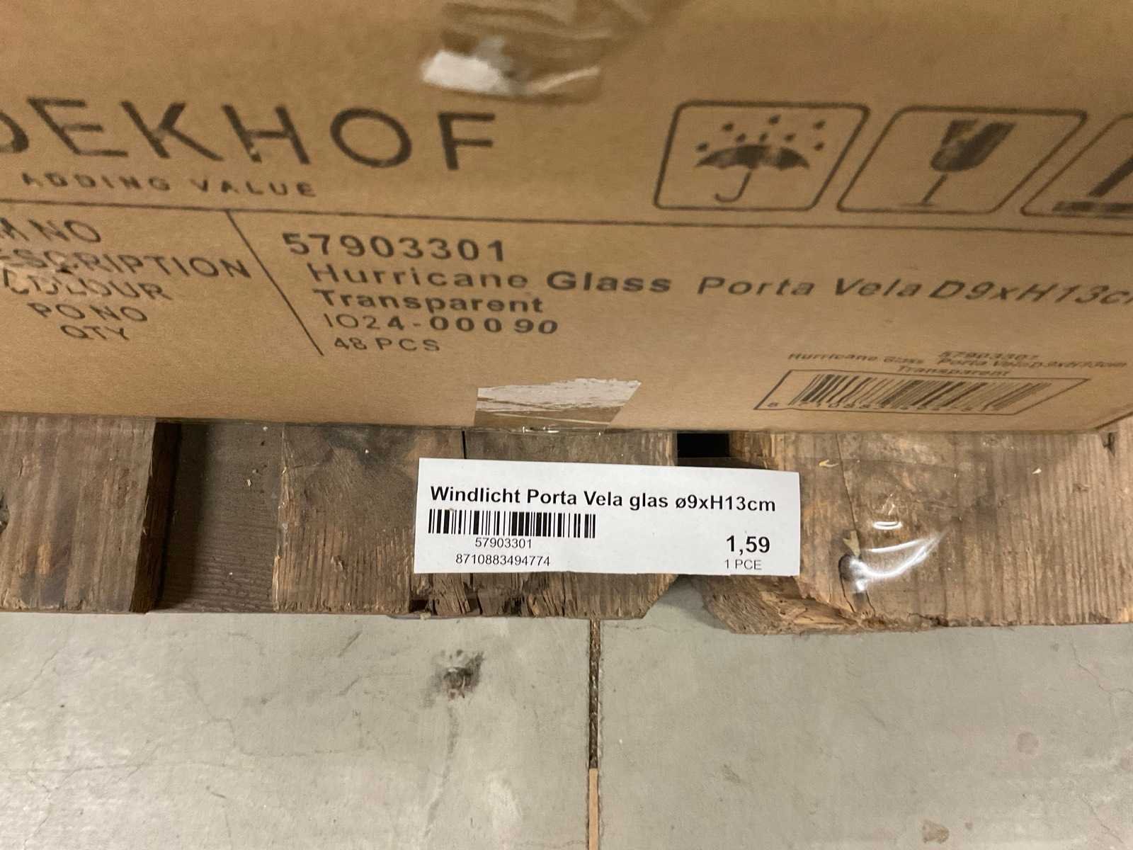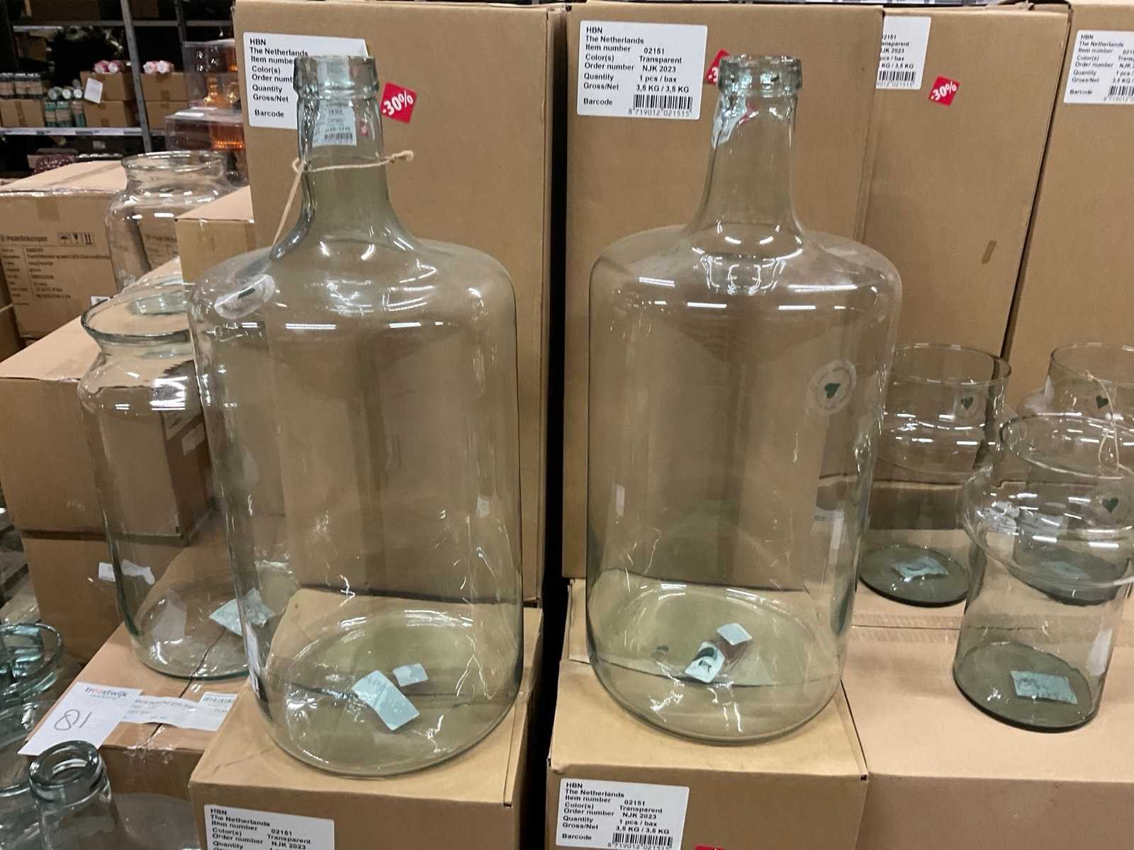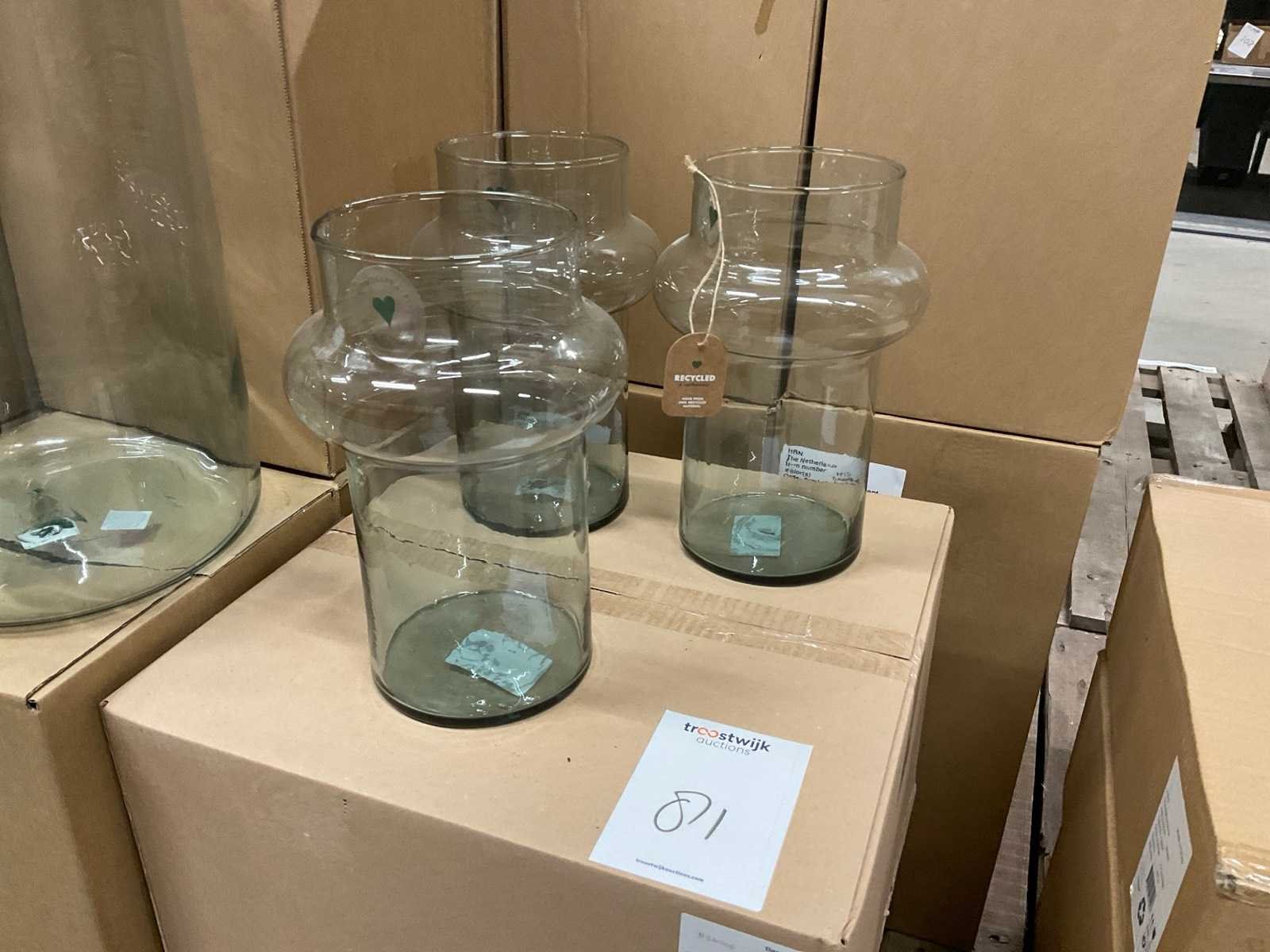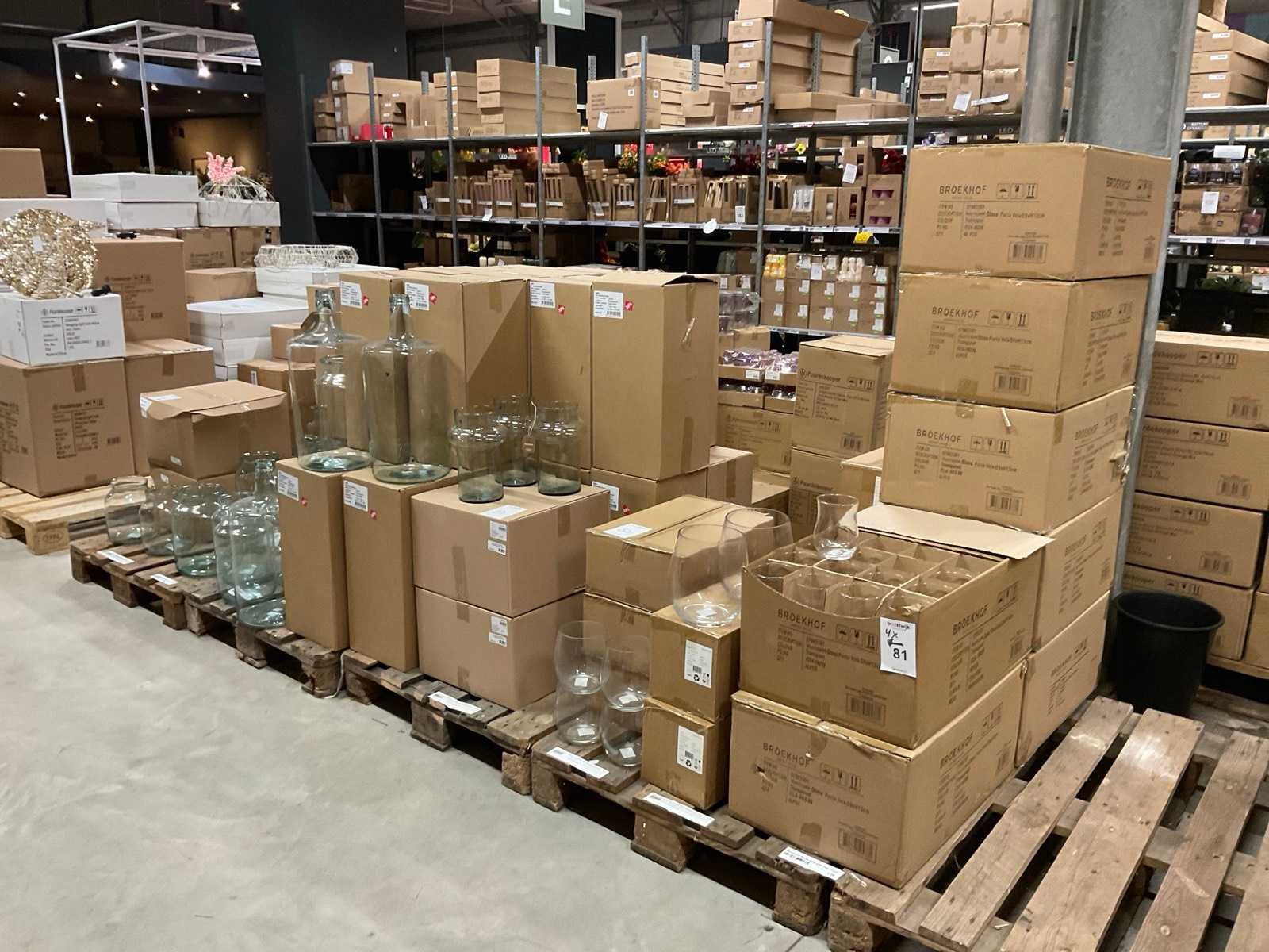 Glazen vazen en windlichten op 4 pallets, in diverse vormen en formaten, inclusief pallets. Merk: Glazen