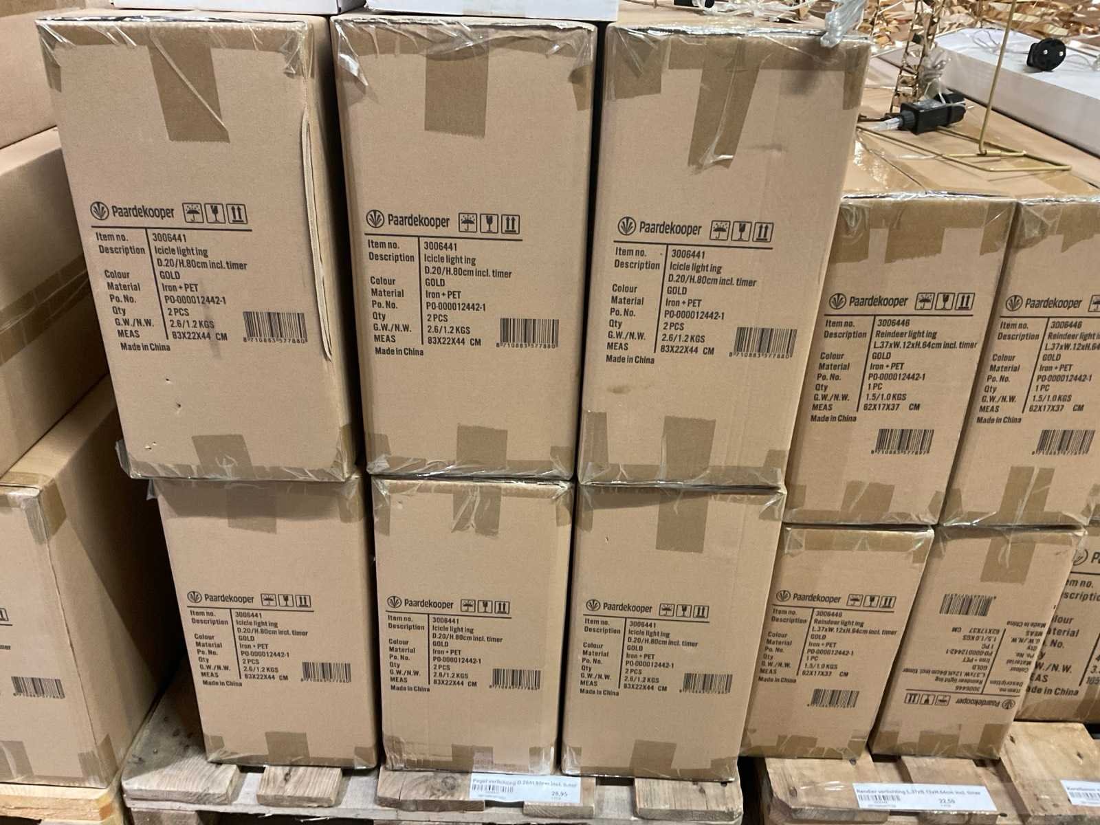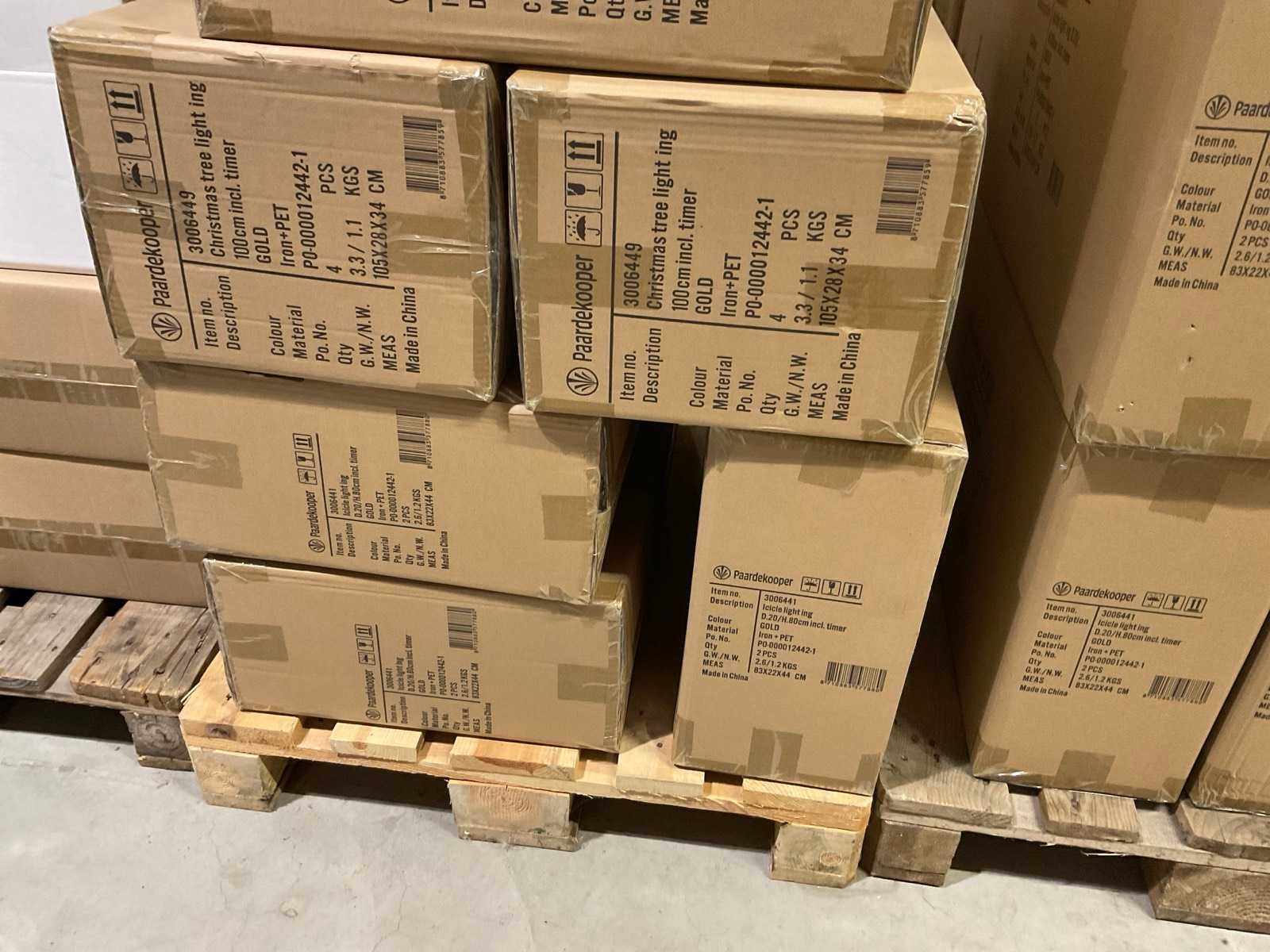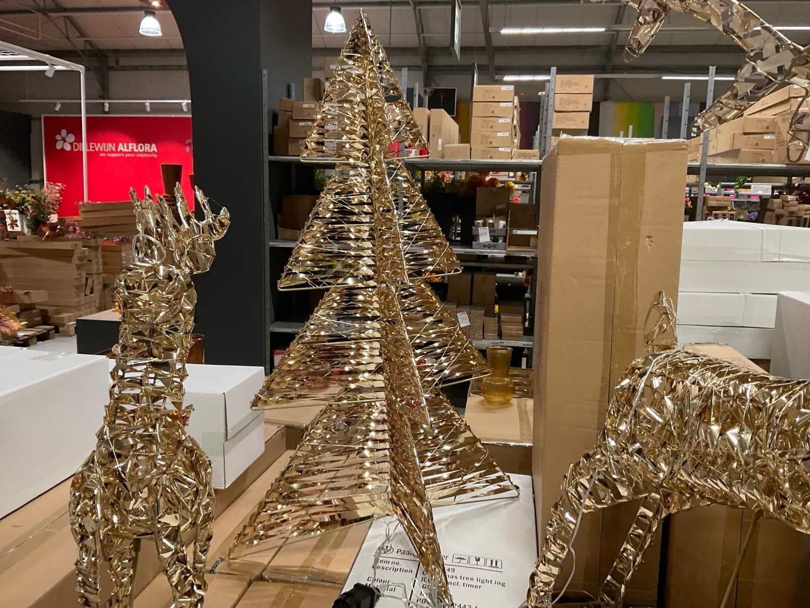 Kerstdecoratie verlicht, rendieren, cones en sterren in verschillen formaten op 3 pallets, inclusief pallets. Merk: Paardekooper