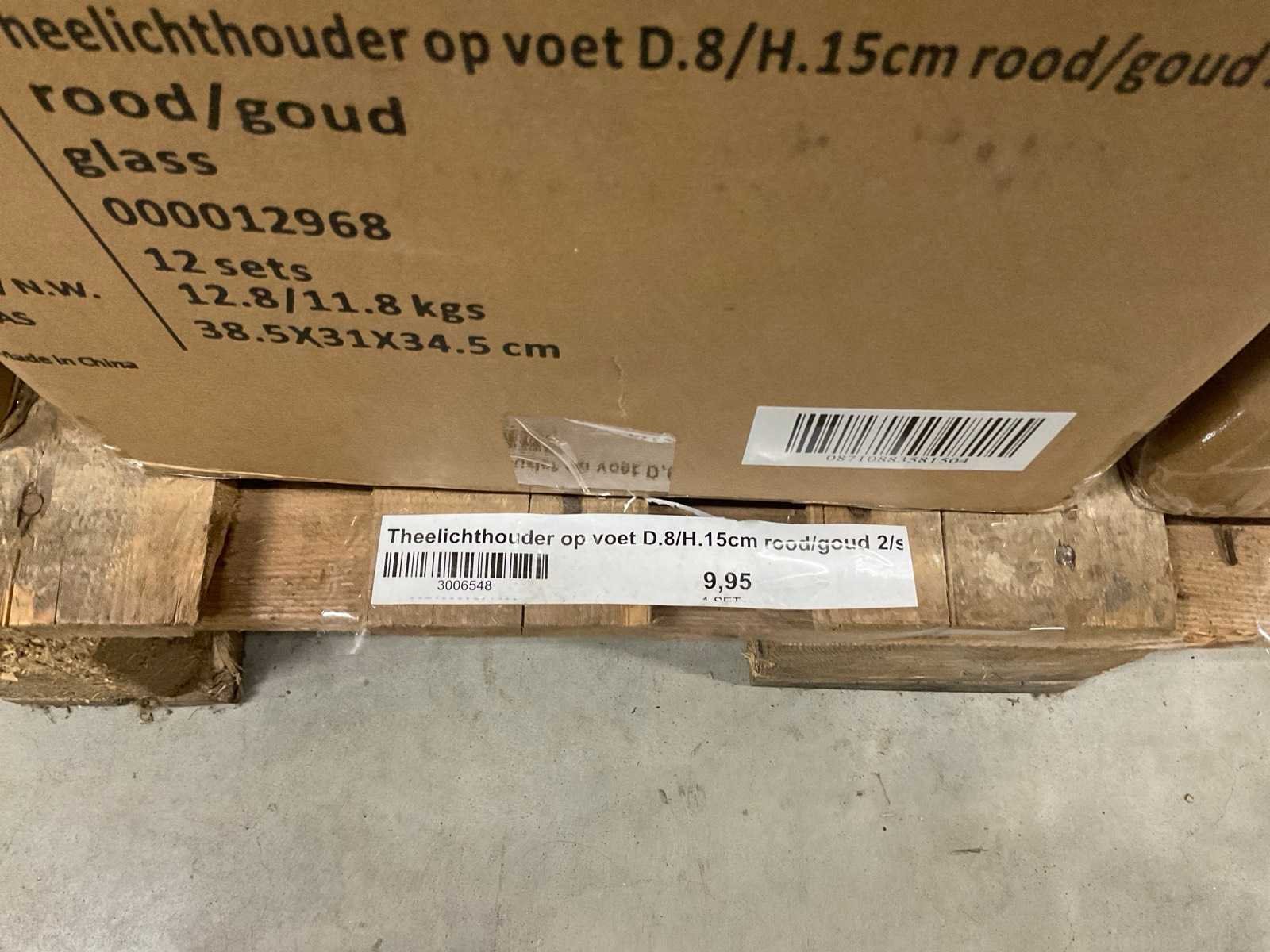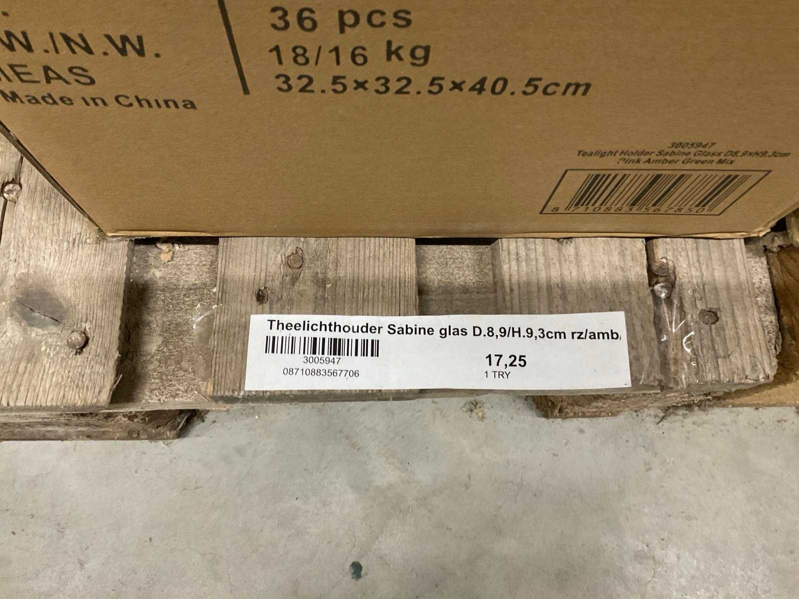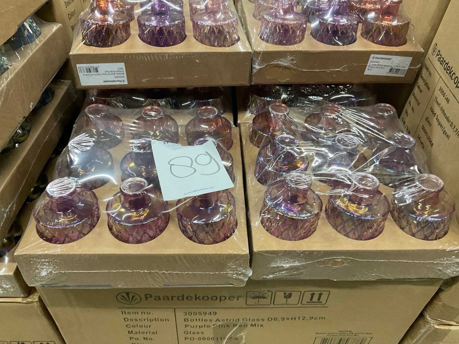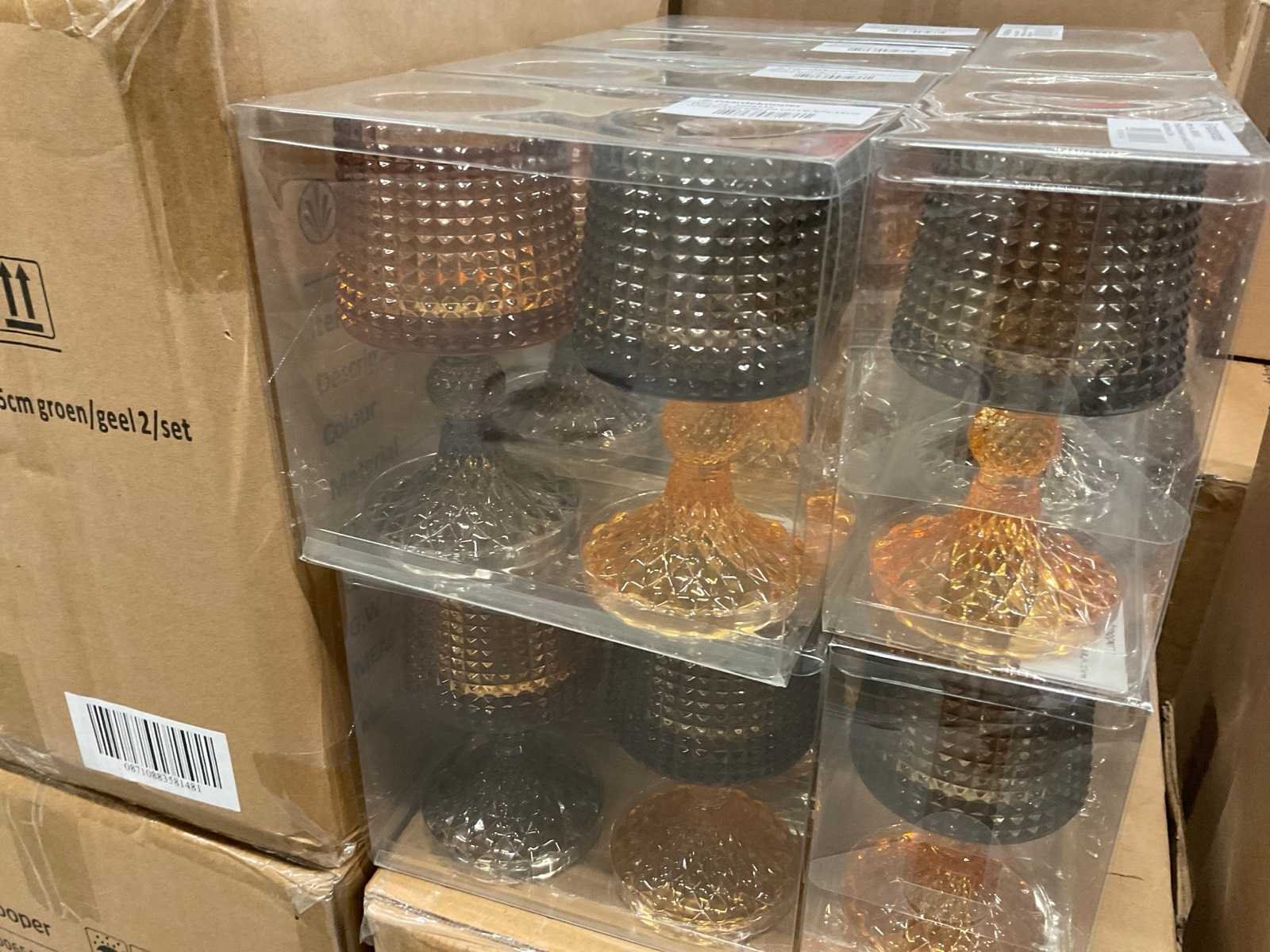 Vazen, theelichthouders en flesjes in diverse kleuren en formaten, modellen o.a. Jantien, Astrid, Nynke, , op 4 pallets, inclusief pallets.
