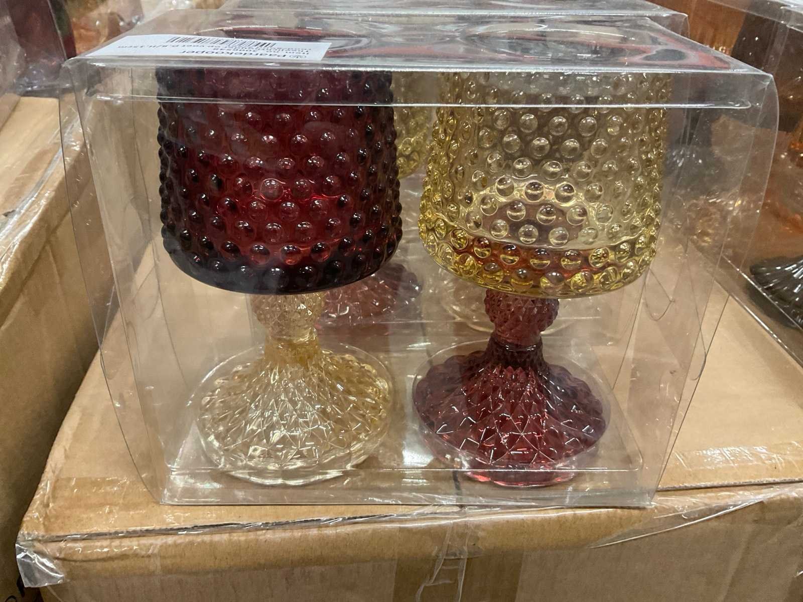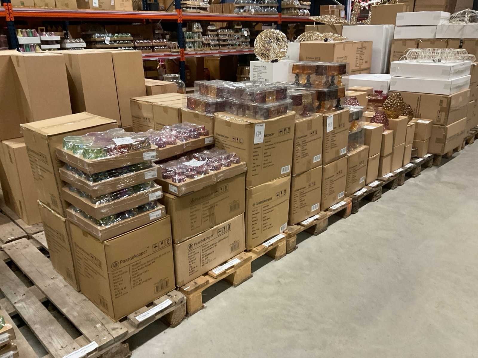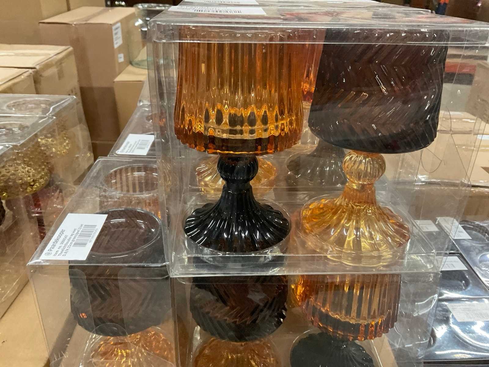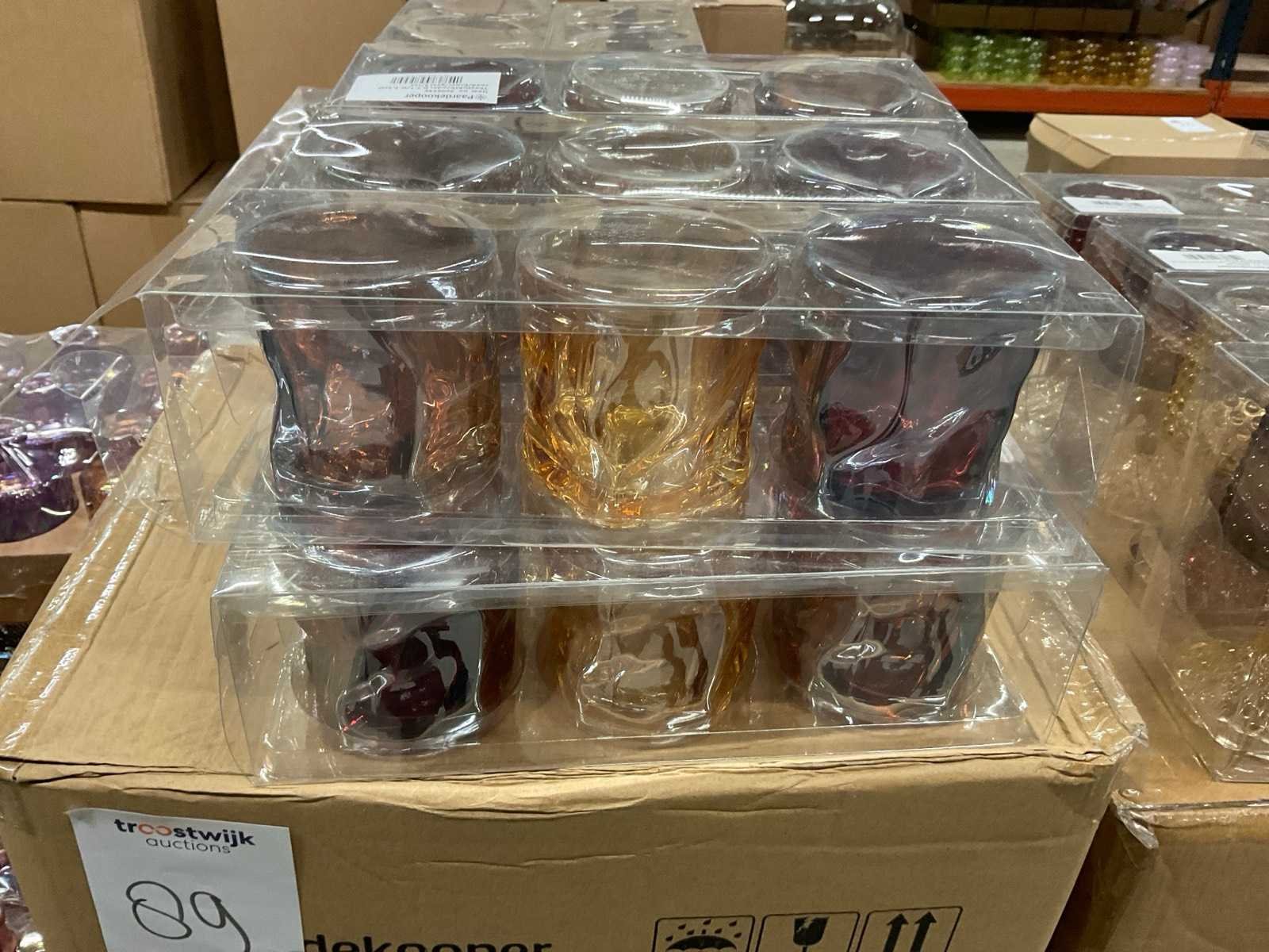 Vazen, theelichthouders en flesjes in diverse kleuren en formaten, modellen o.a. Jantien, Astrid, Nynke, , op 4 pallets, inclusief pallets.
