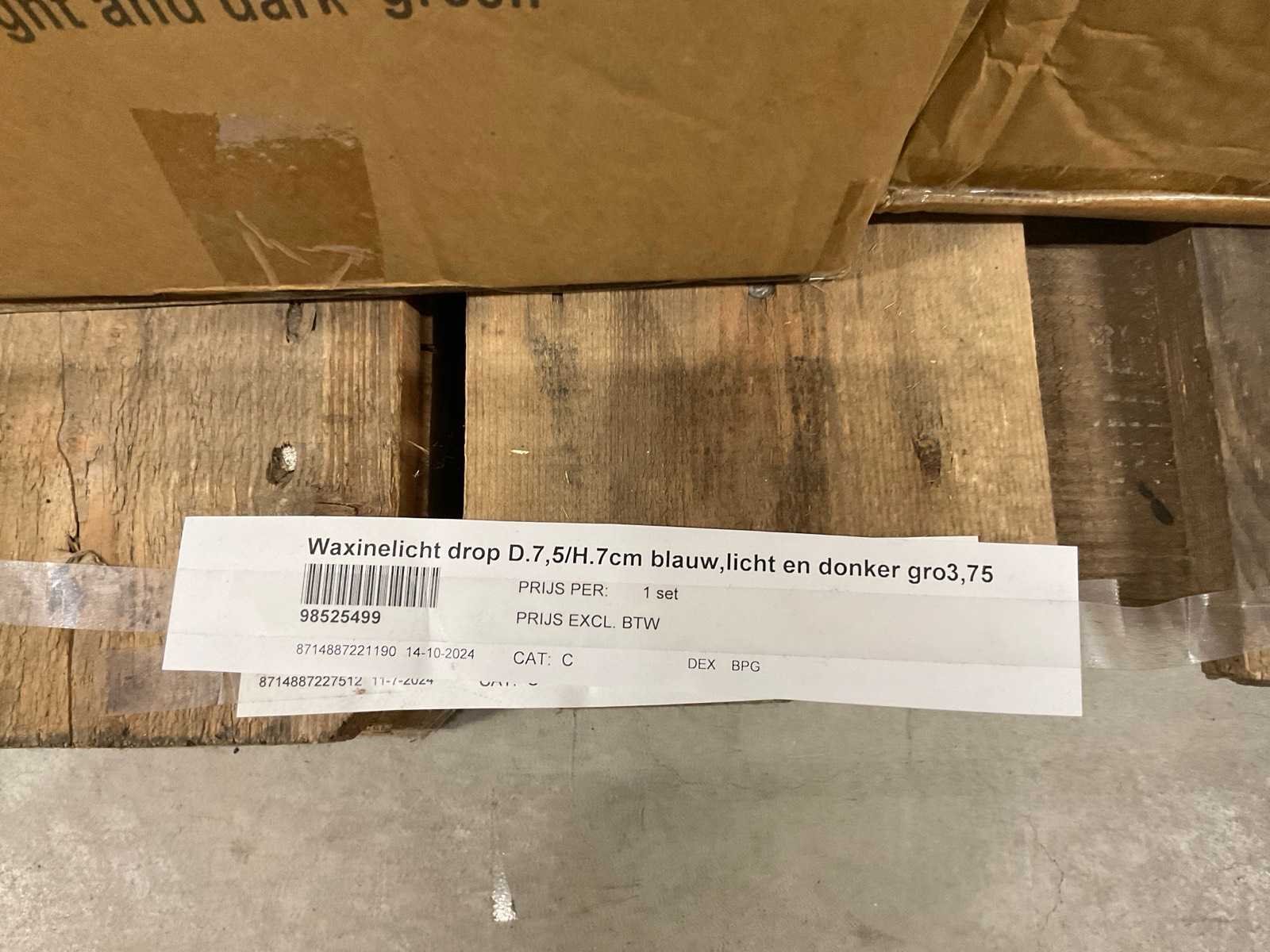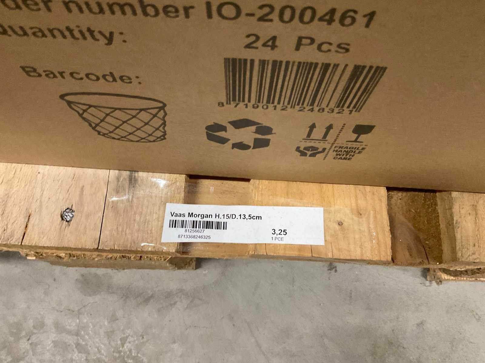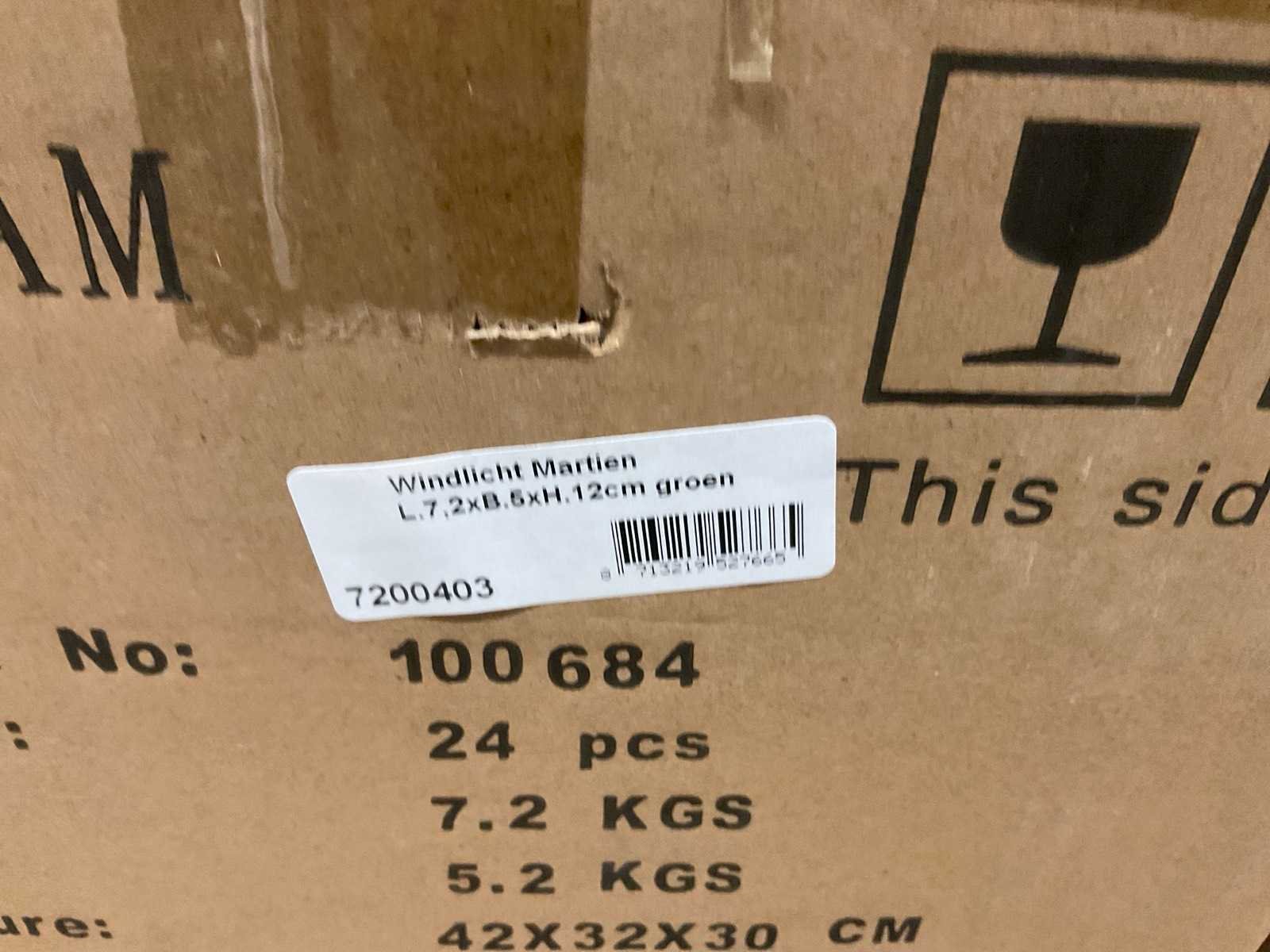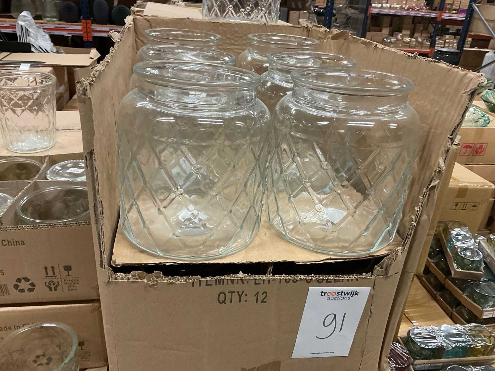 Vazen, waxinelichthouders en windlichten in diverse kleuren en formaten, modellen o.a. Martien, Drop, Paola en Morgan, op 4 pallets, inclusief pallets.