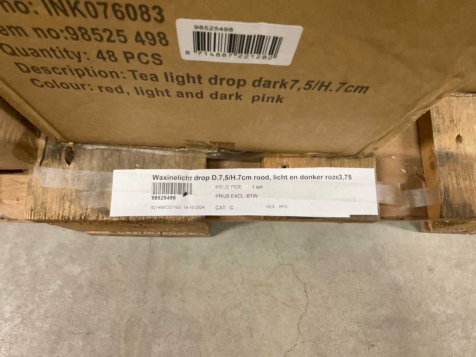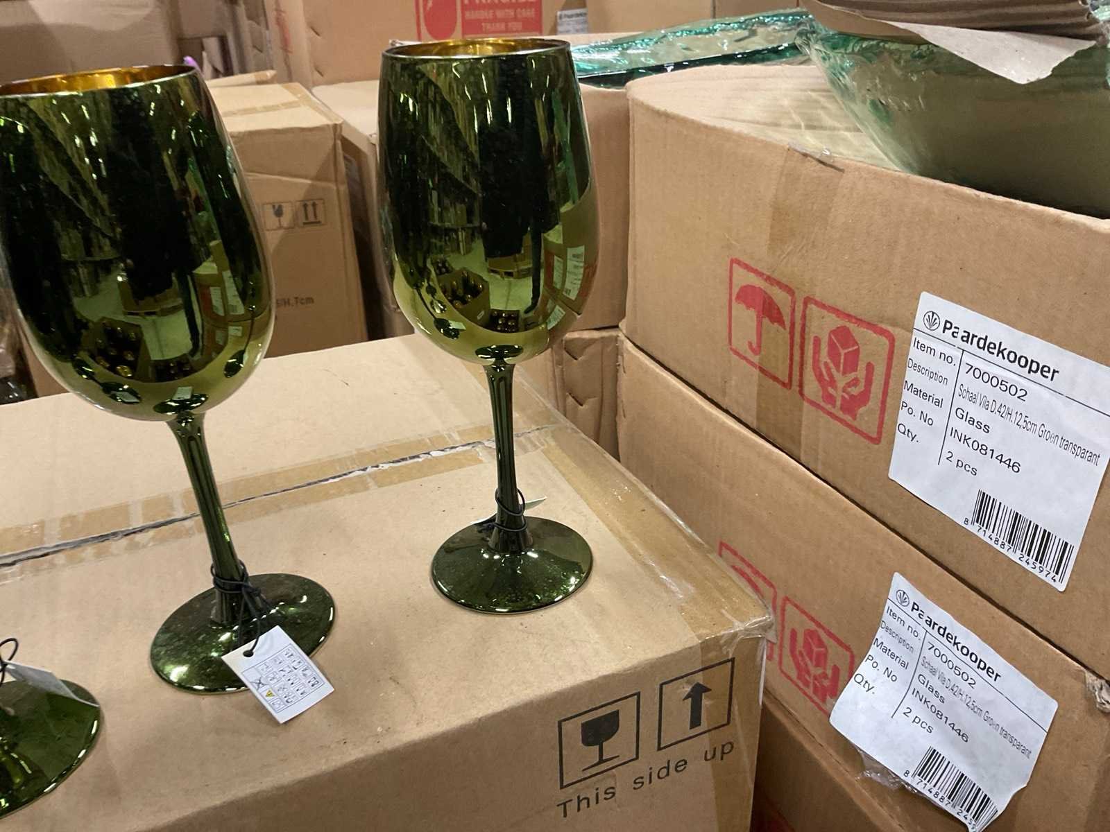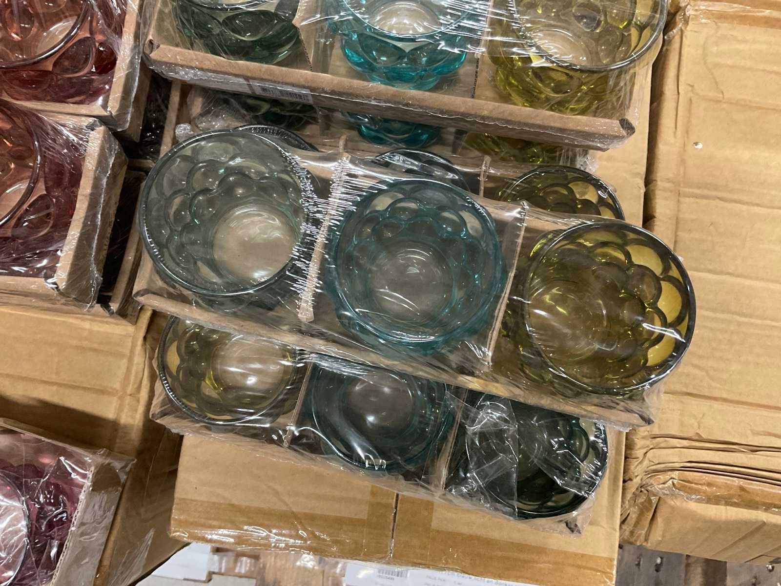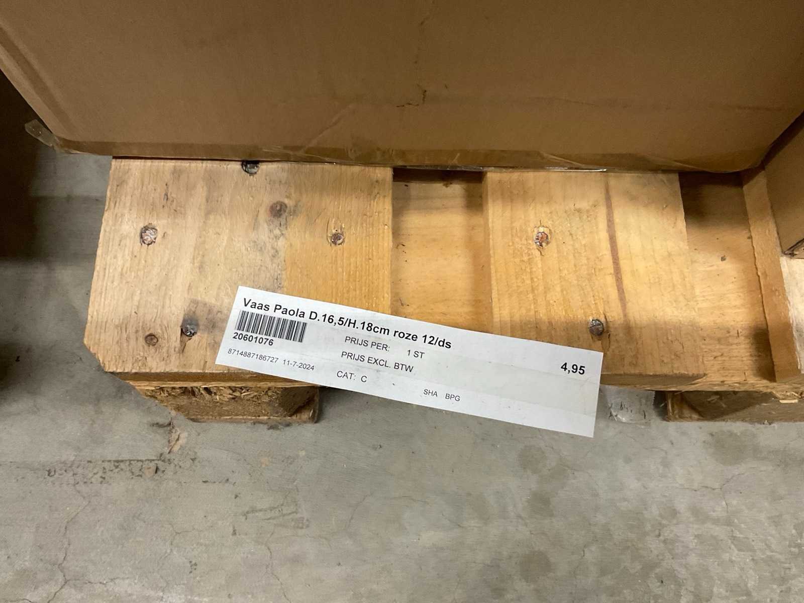 Vazen, waxinelichthouders en windlichten in diverse kleuren en formaten, modellen o.a. Martien, Drop, Paola en Morgan, op 4 pallets, inclusief pallets.