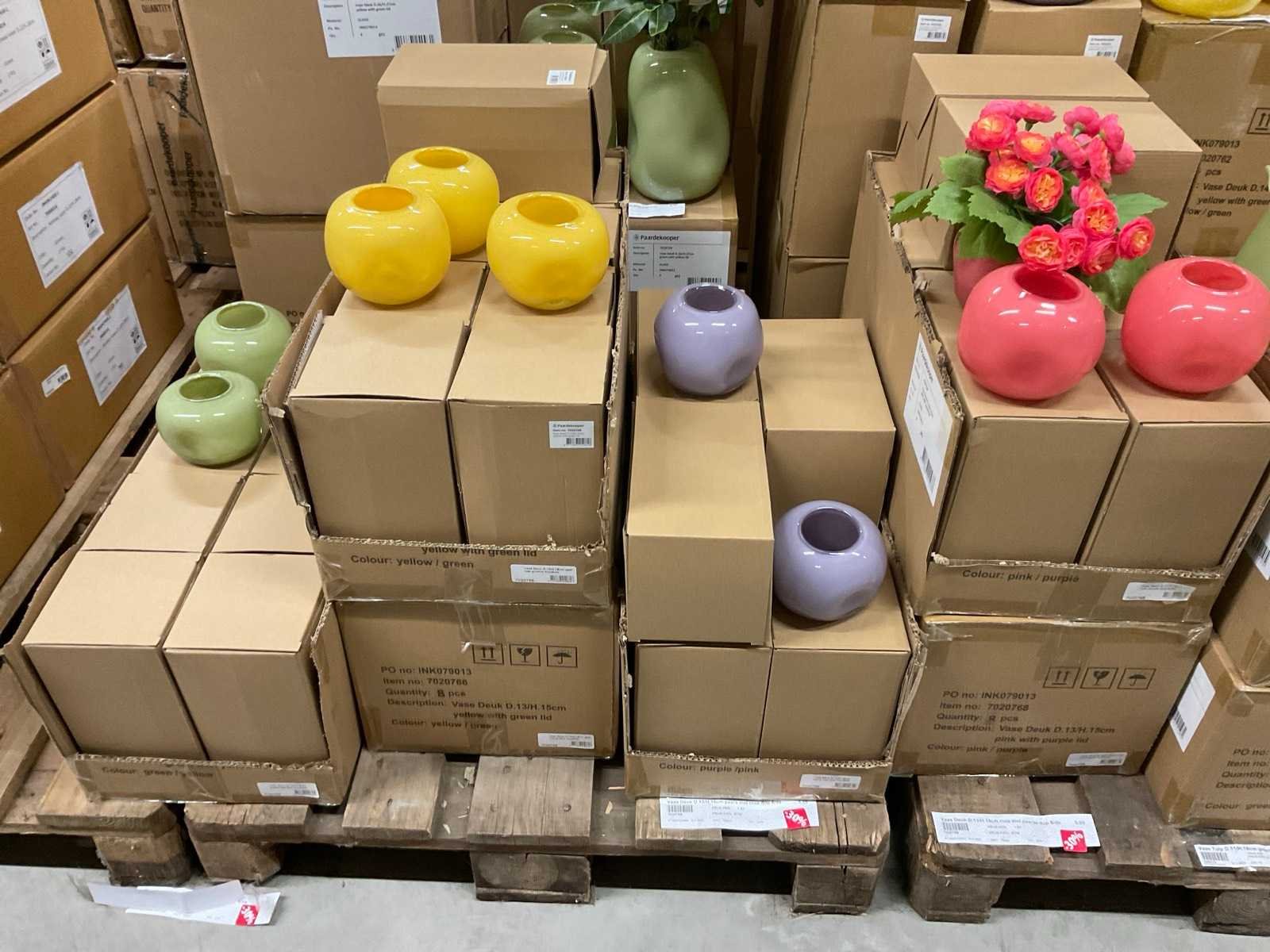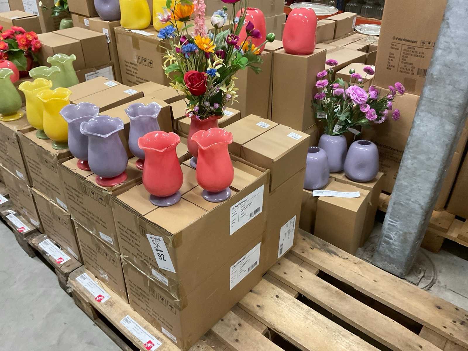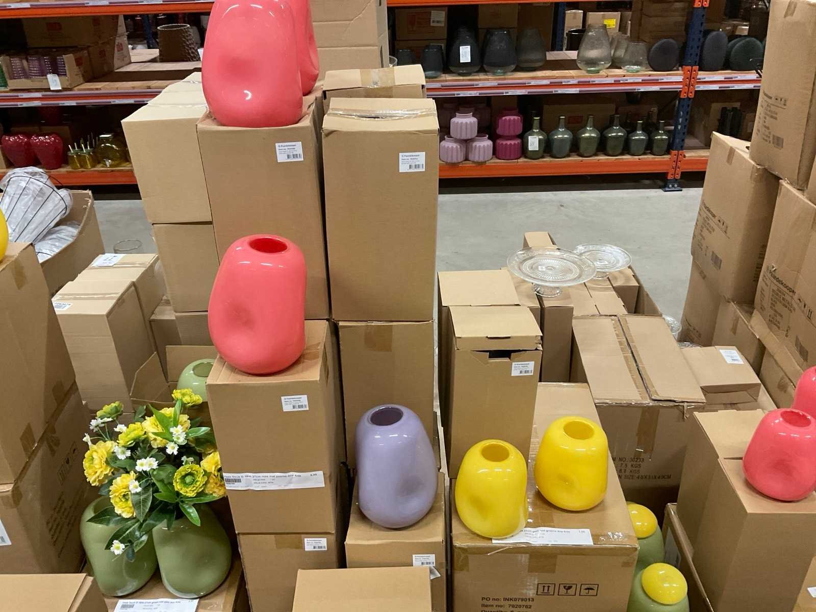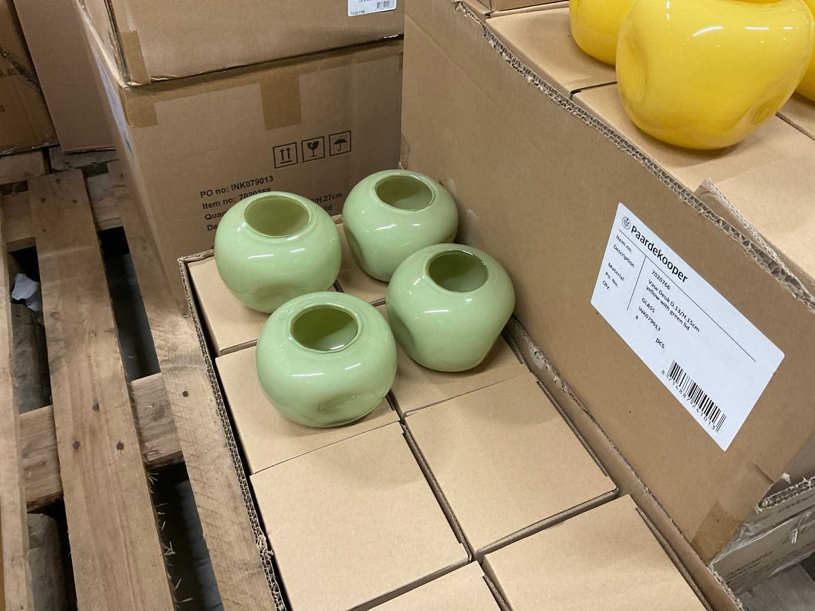 Van glas in diverse vormen en kleuren, op 3 pallets, inclusief pallets.