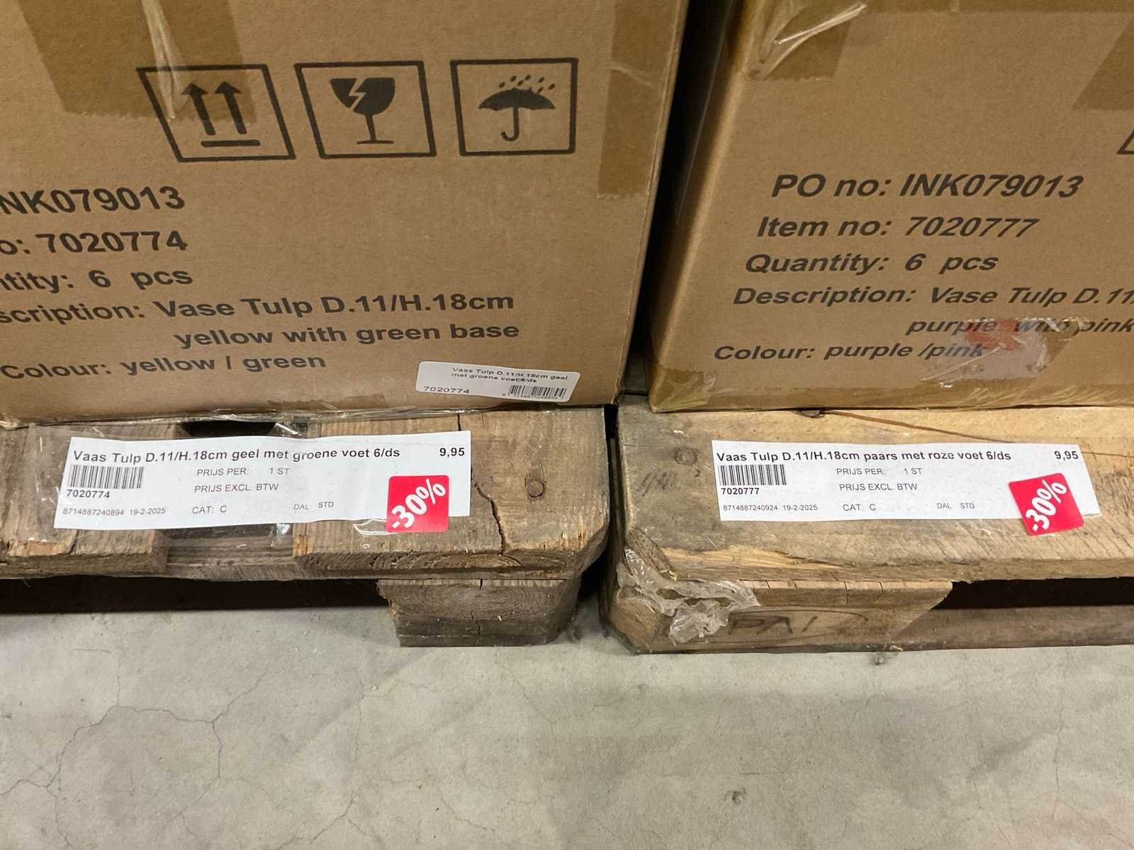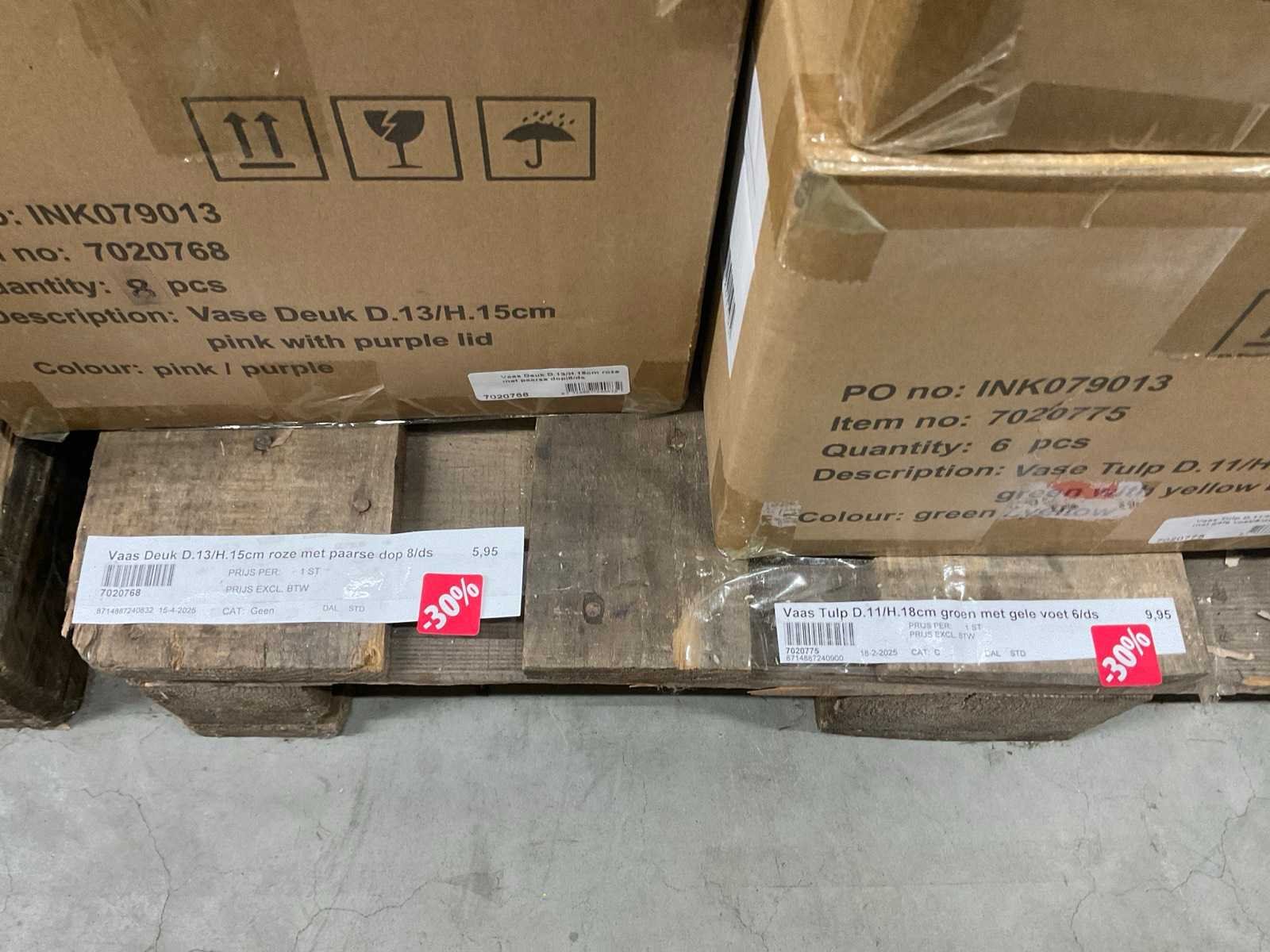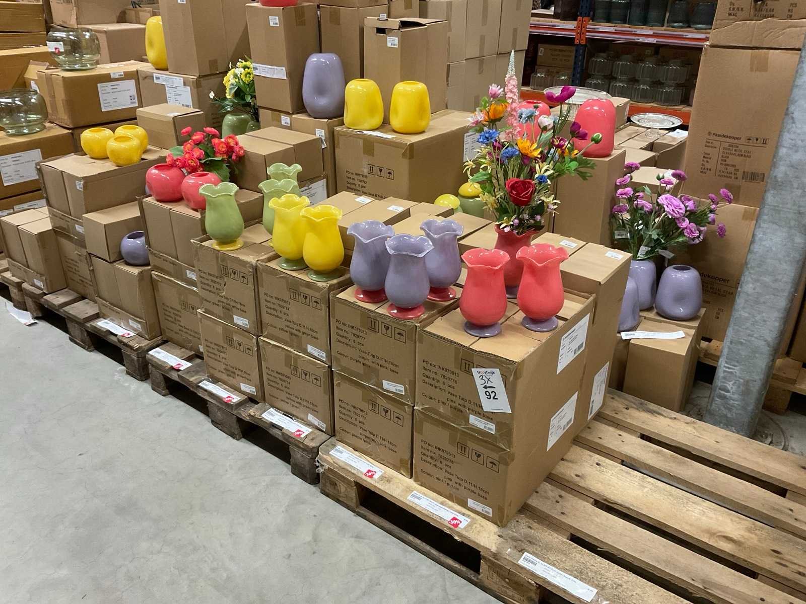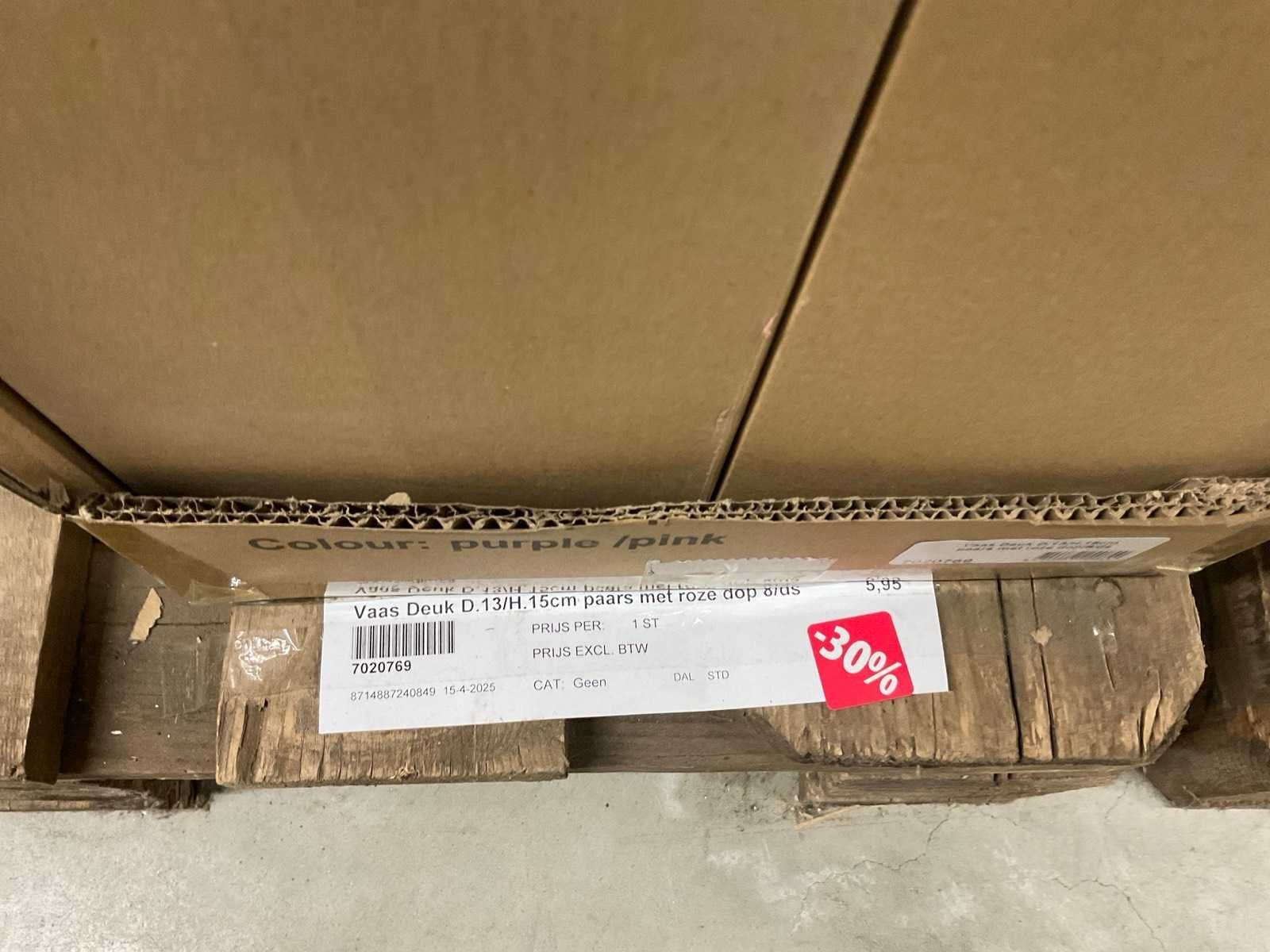 Van glas in diverse vormen en kleuren, op 3 pallets, inclusief pallets.
