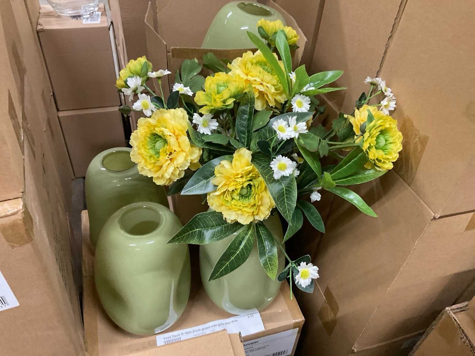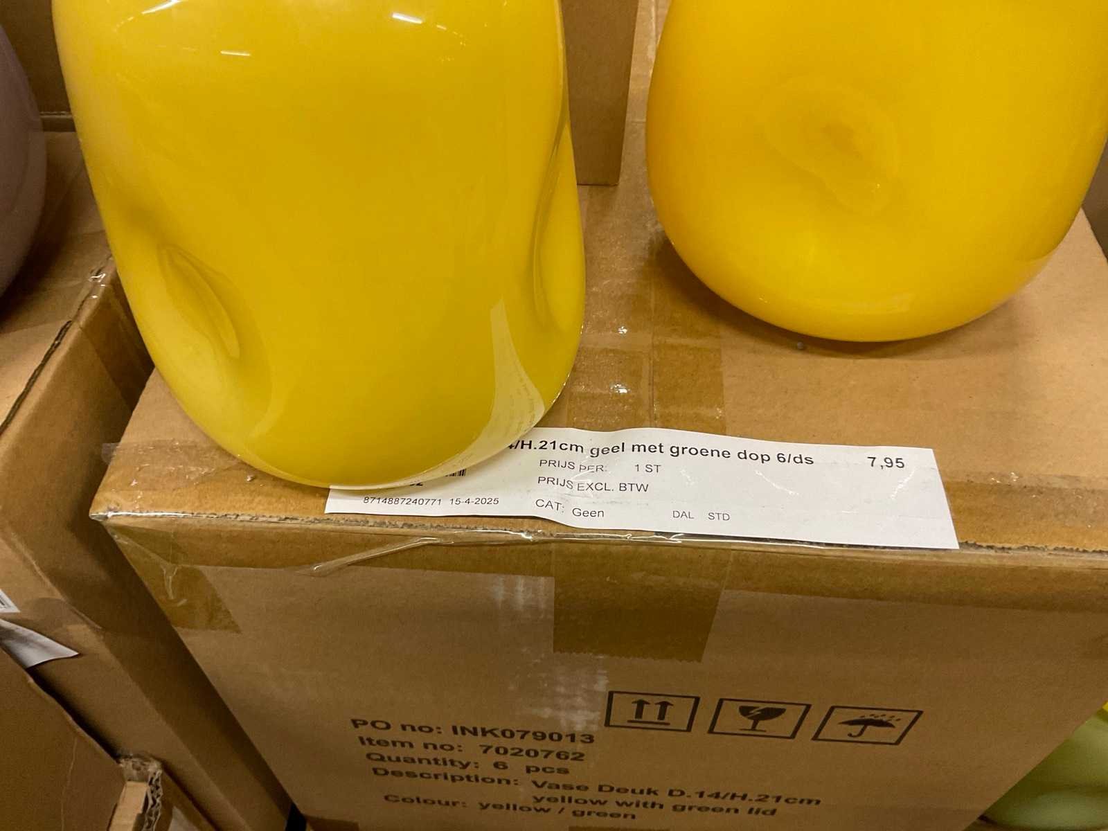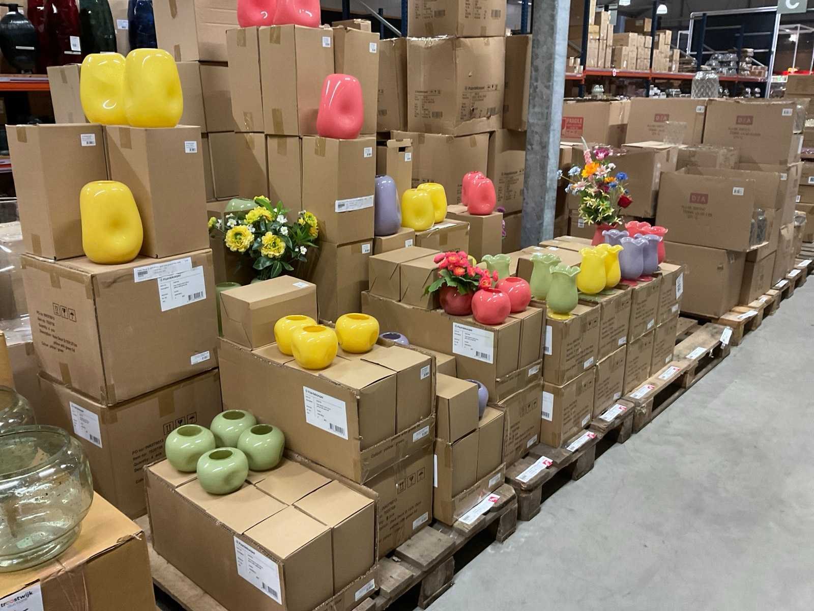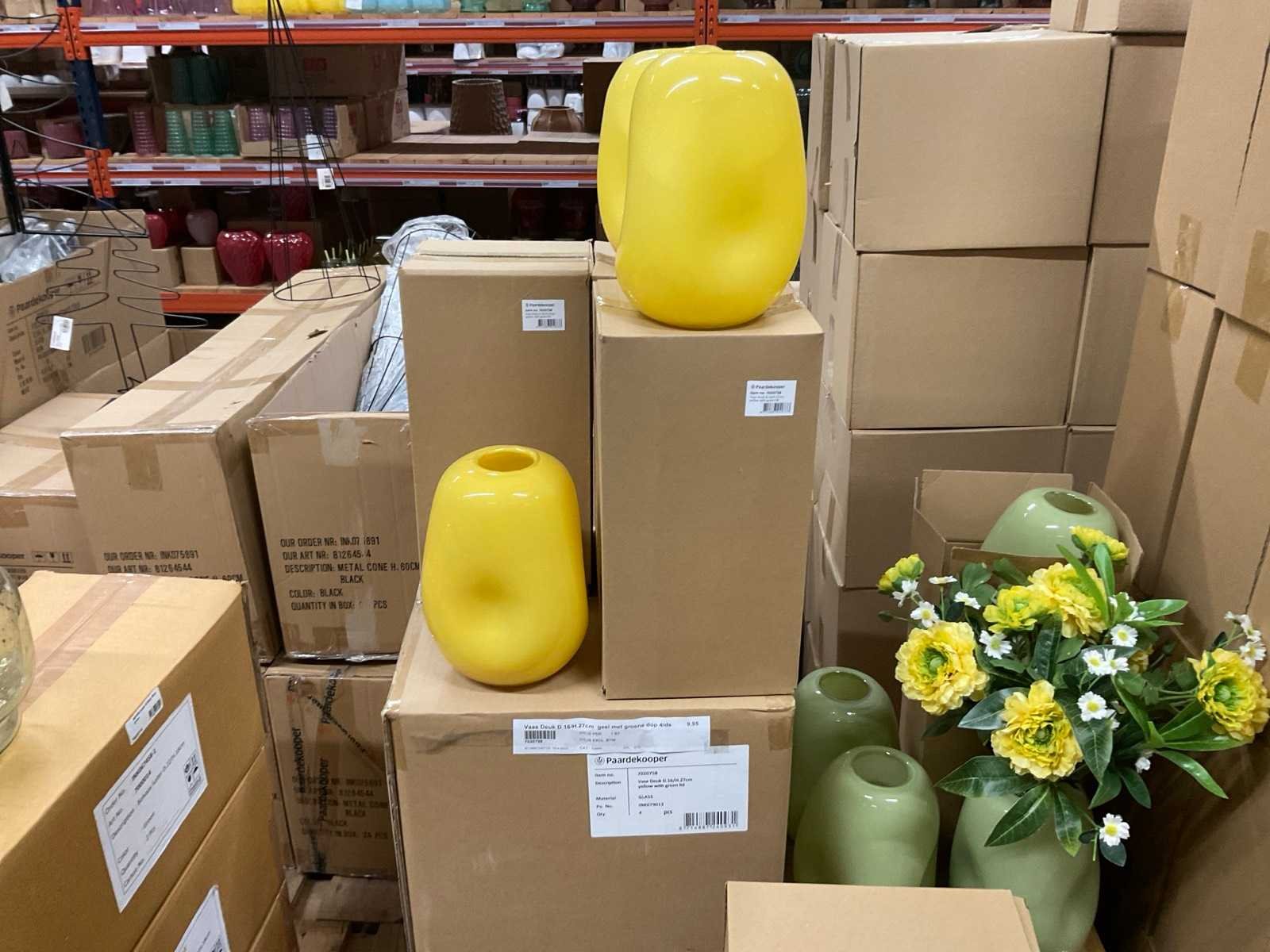 Van glas in diverse vormen en kleuren, op 3 pallets, inclusief pallets.