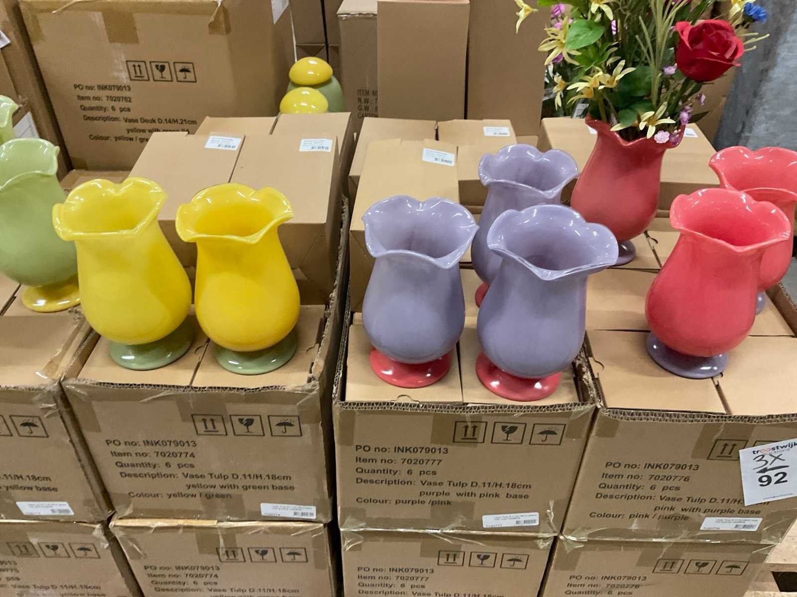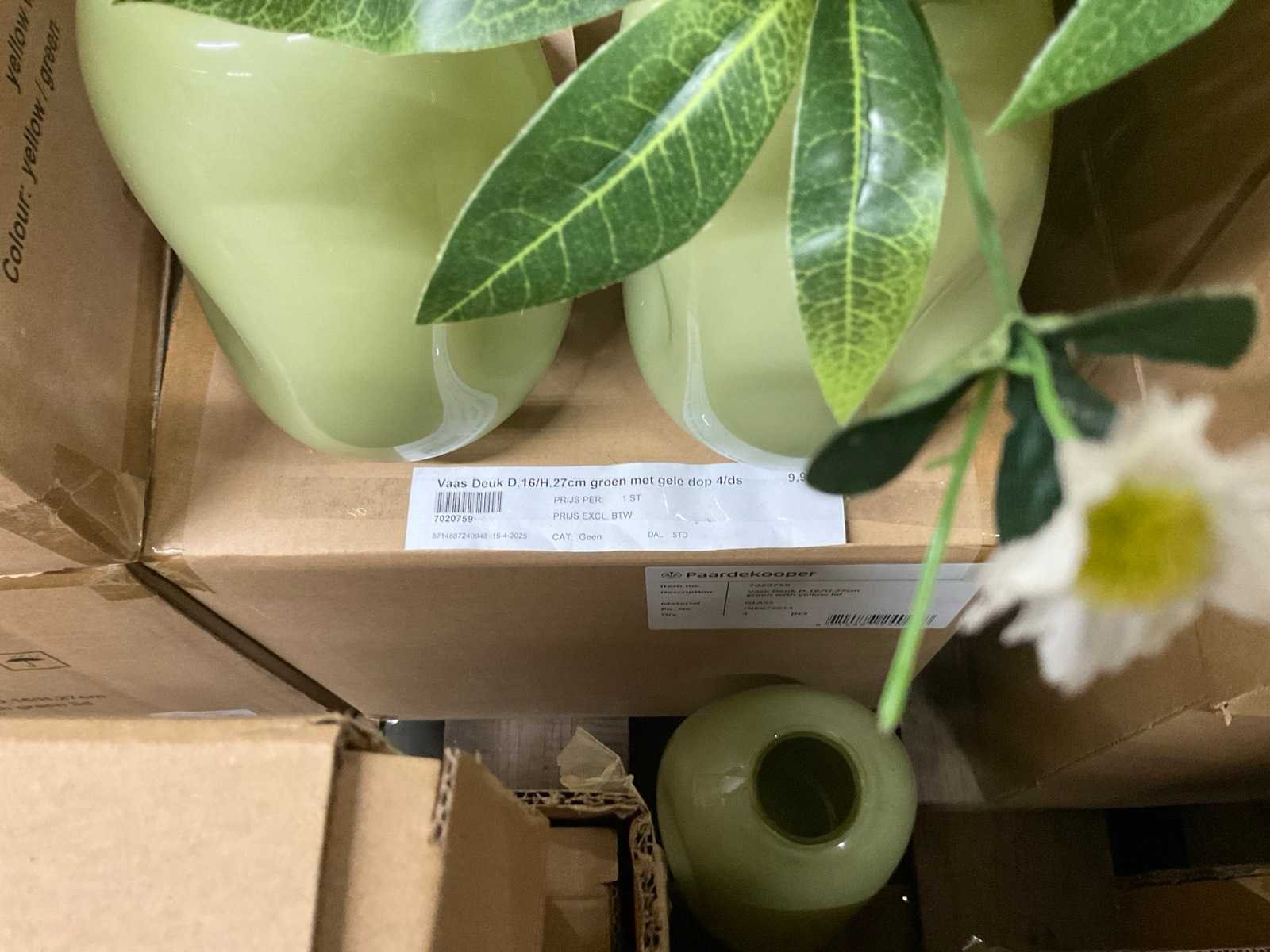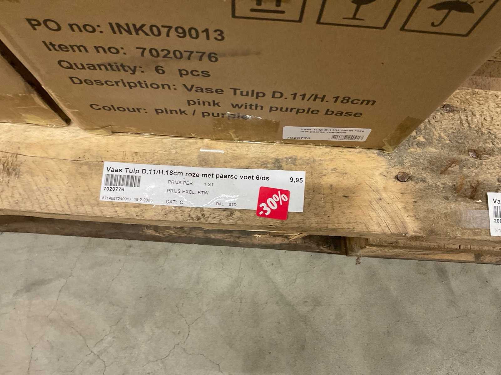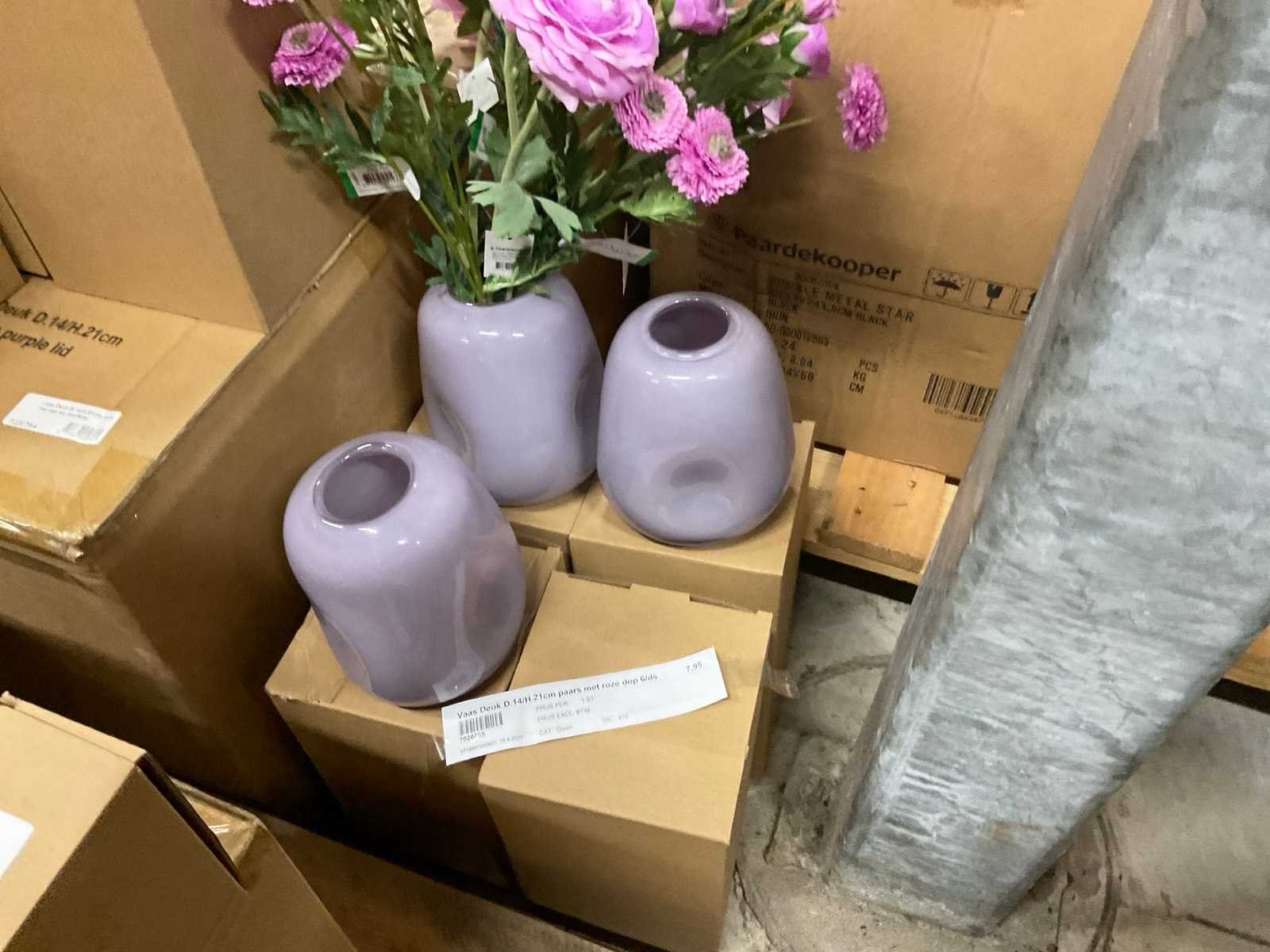 Van glas in diverse vormen en kleuren, op 3 pallets, inclusief pallets.