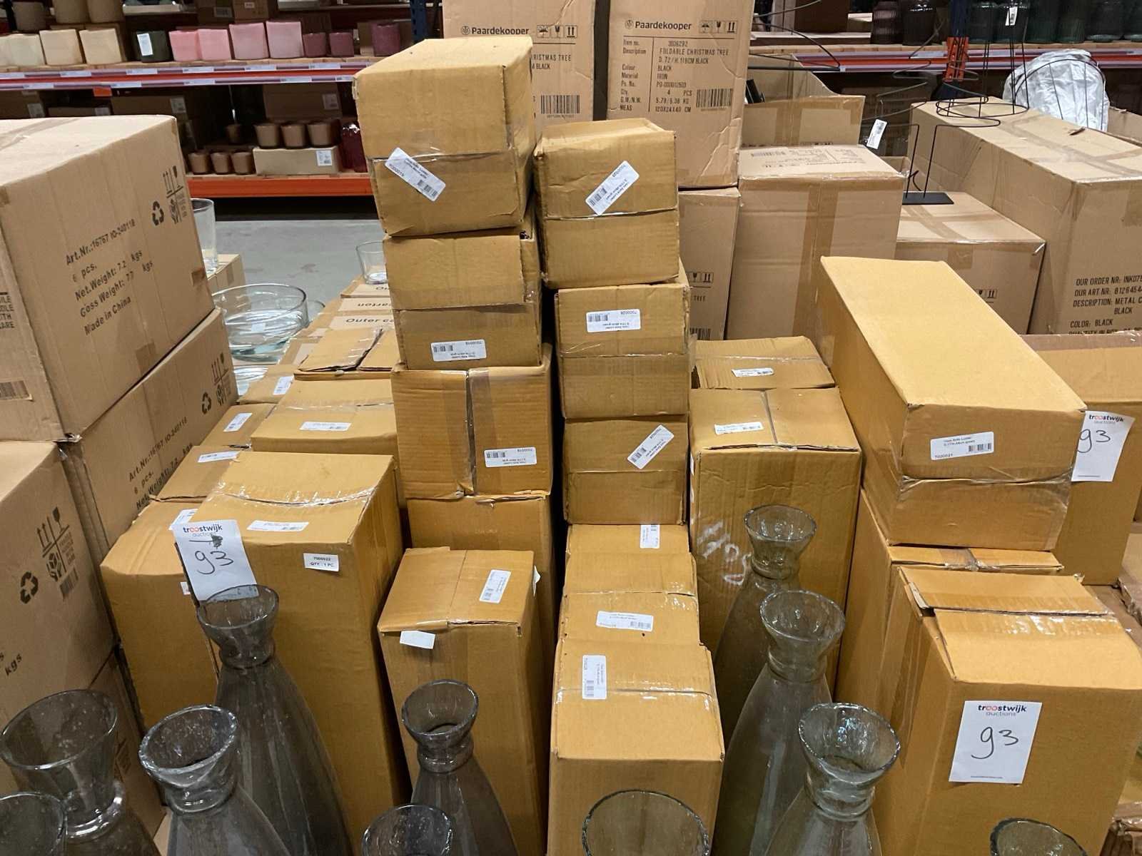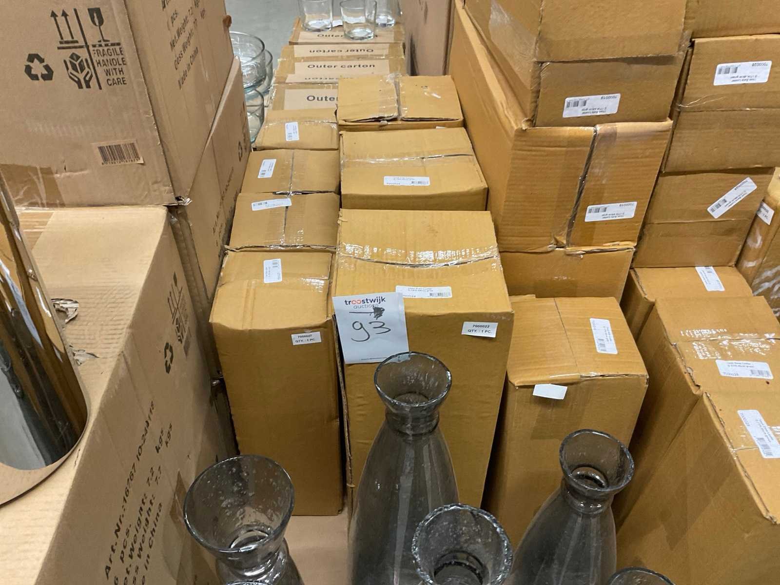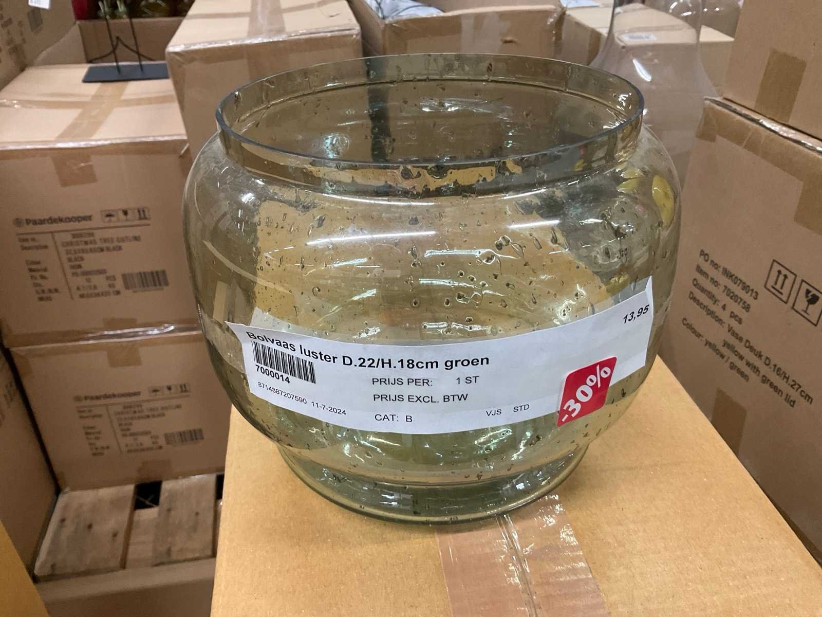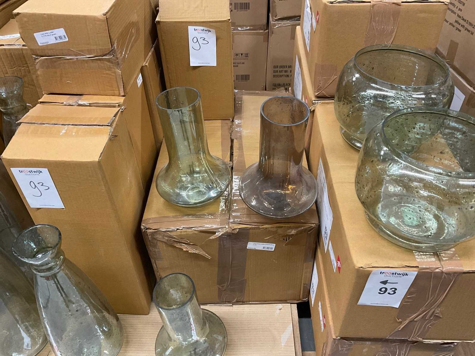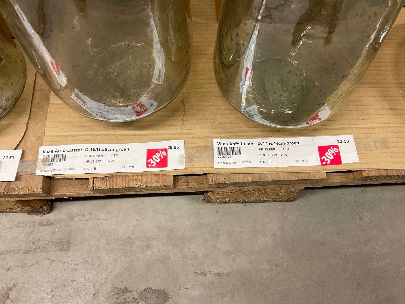 Van glas in diverse vormen en kleuren, modellen: Giro, Anfo en Zena op 2 pallets, inclusief pallets.