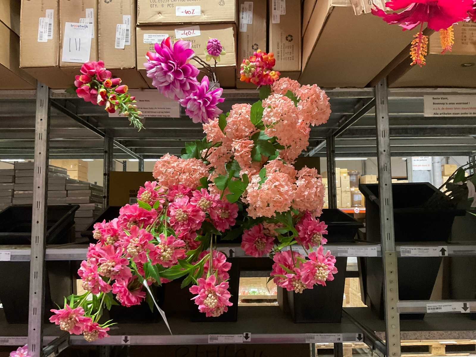 Inhoud van 1 sectie van stelling bestaande o.a. uit Alcea en Hydrangea. Exclusief stelling en emmers Merk: Emerald en Art