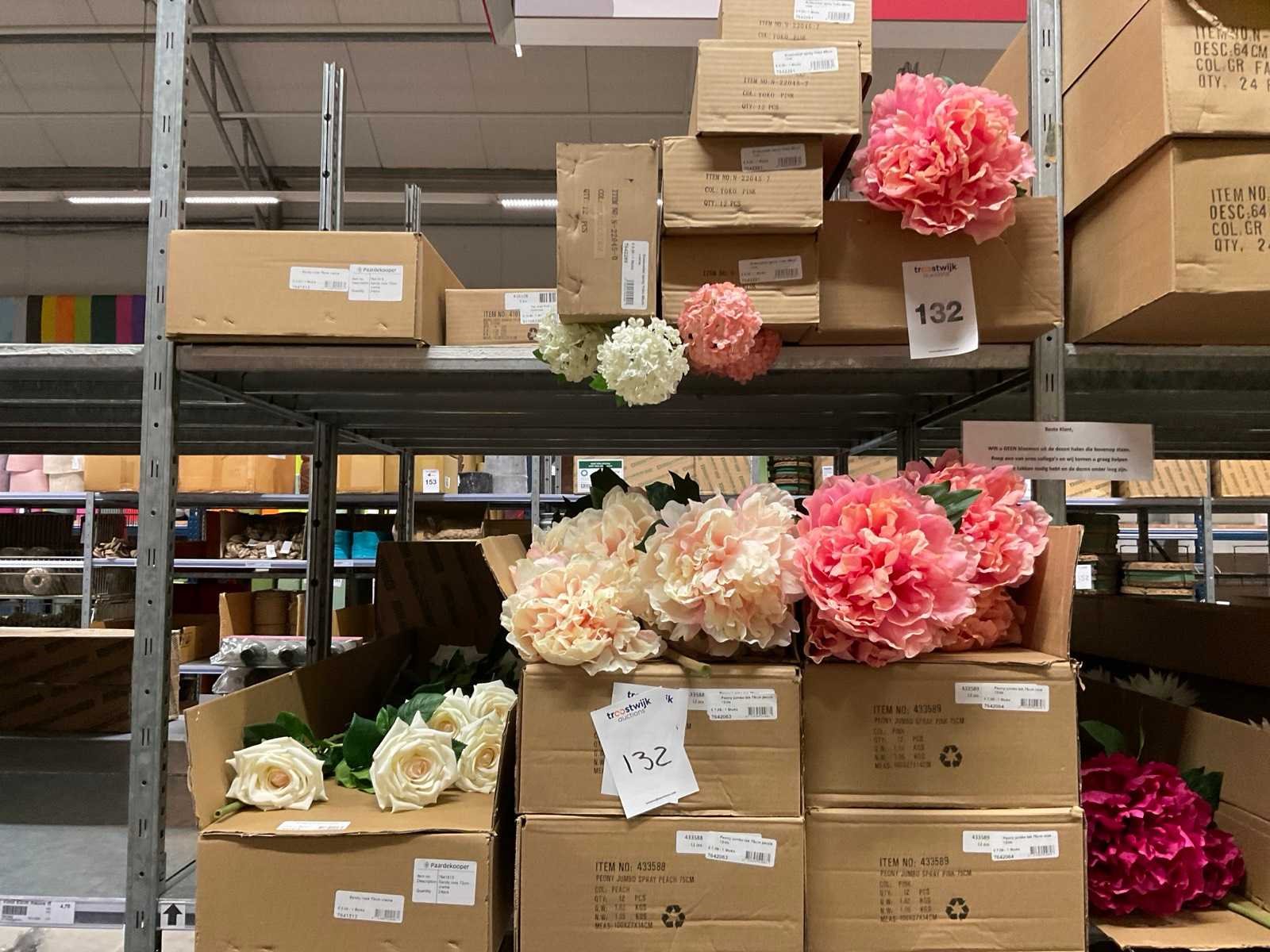 Inhoud van 1 stelling sectie, bestaande o.a. uit Ranunculs en pioenrozen. Stelling niet inbegrepen. Merk: Silka, Art en Emerald
