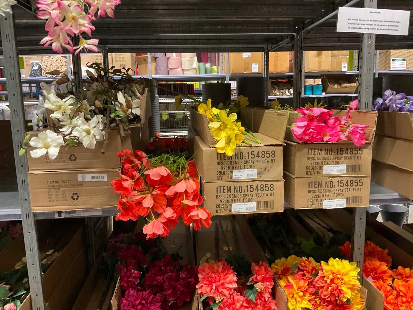 Inhoud van 3 stelling secties bestaande o.a. uit Iris en Dahlia’s. Stelling niet inbegrepen. Merk: Silka en Emerald