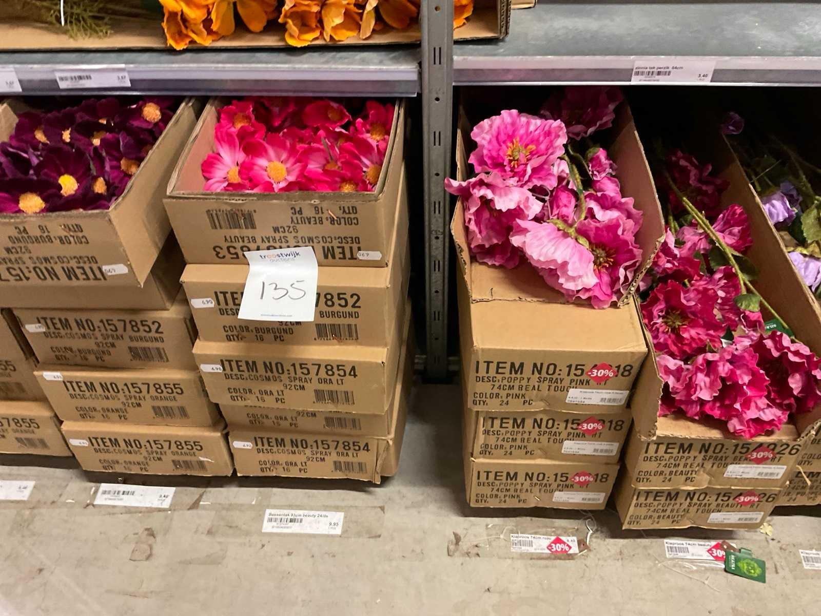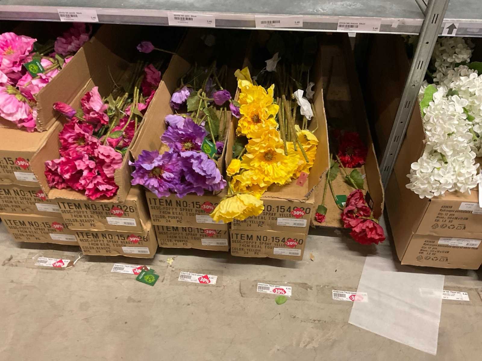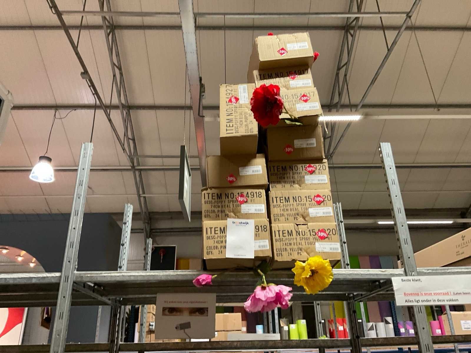 Inhoud van 3 stelling secties bestaande o.a. uit Hydrangea en klaprozen. Stelling niet inbegrepen. Merk: Silka, Art en Emerald