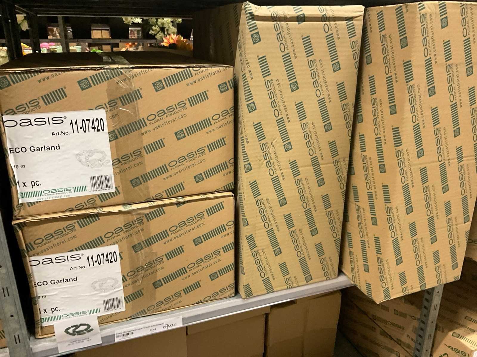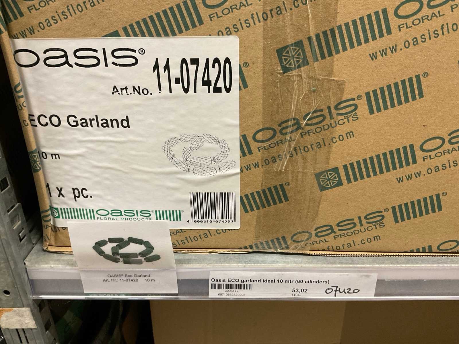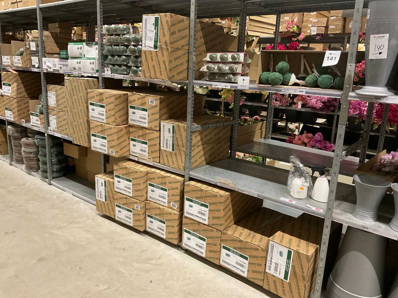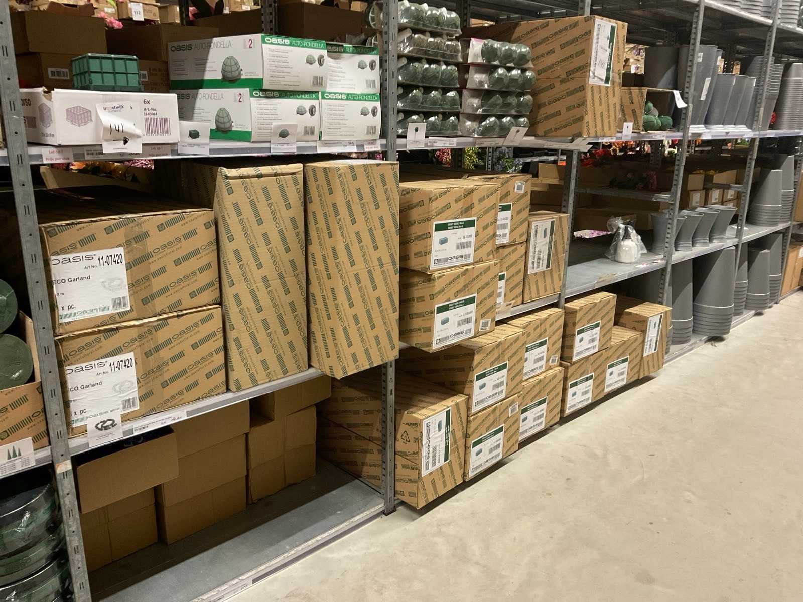 In diverse vormen en afmetingen, o.a. boekethouders, blokken, auto-rondella etc, alles in 3 stellingsecties, kunstbloemen en stelling niet inbegrepen. Merk: Oasis