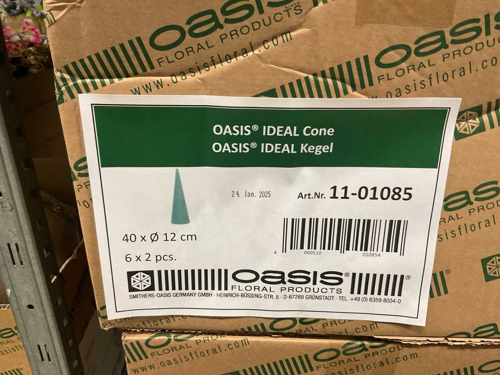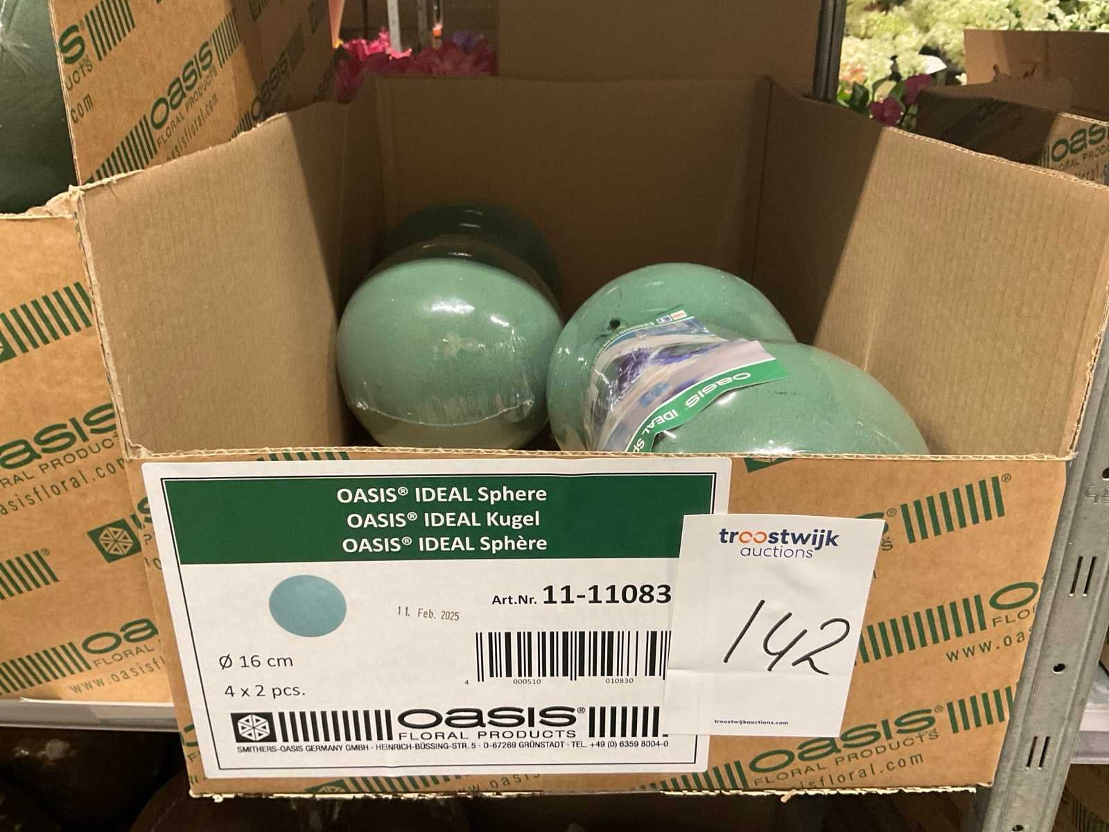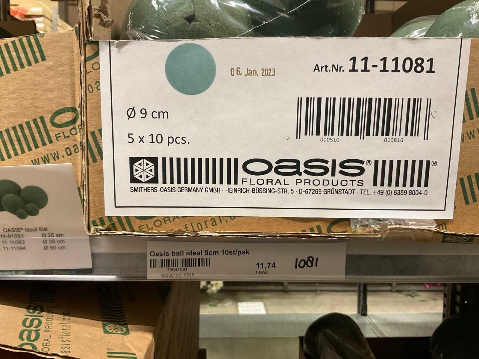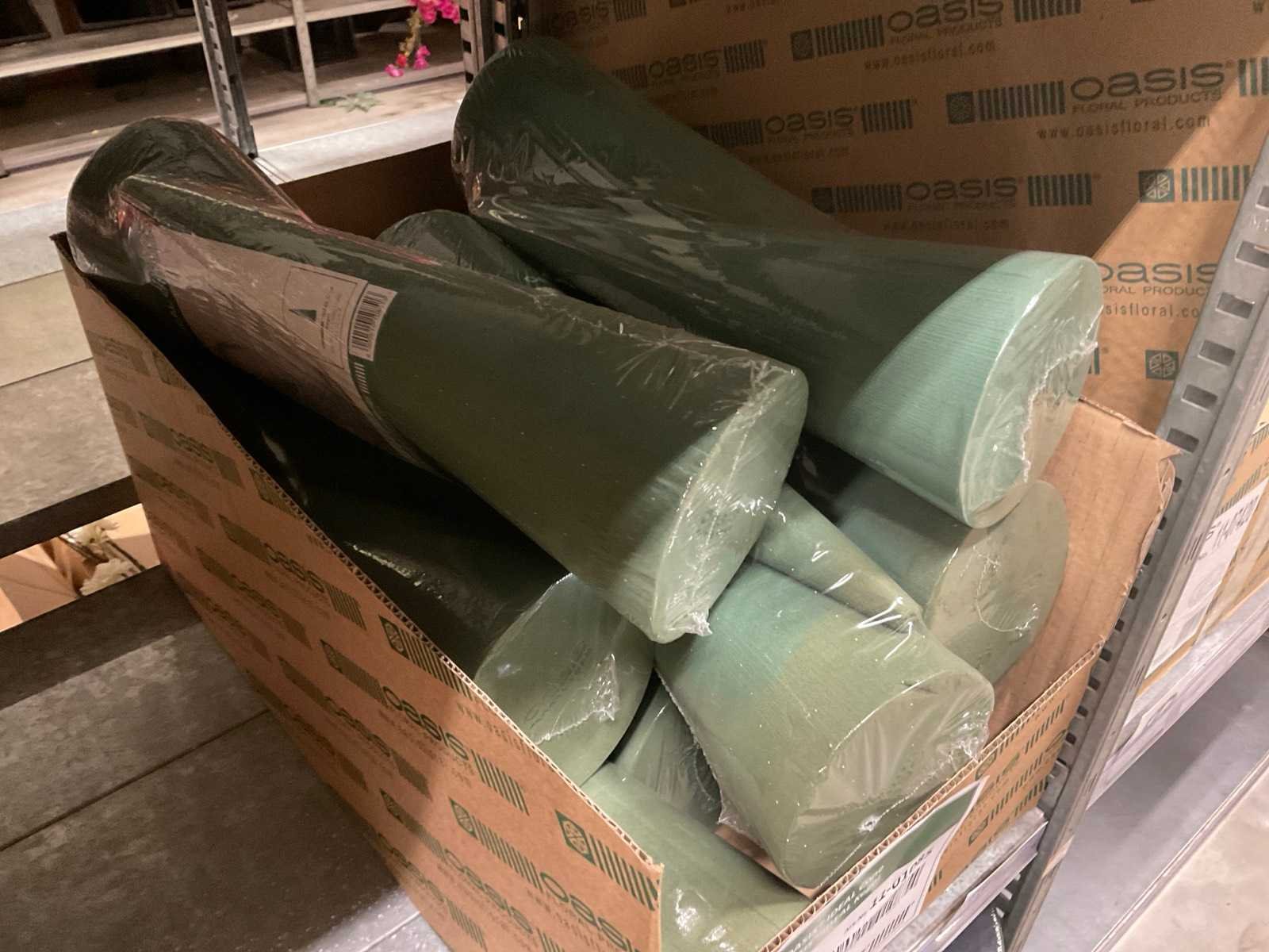 In diverse vormen en afmetingen, o.a. ballen, kegels, ringen, cake dummy, cilinder, etc, alles in 3 stellingsecties, kunstbloemen en stelling niet inbegrepen. Merk: Oasis
