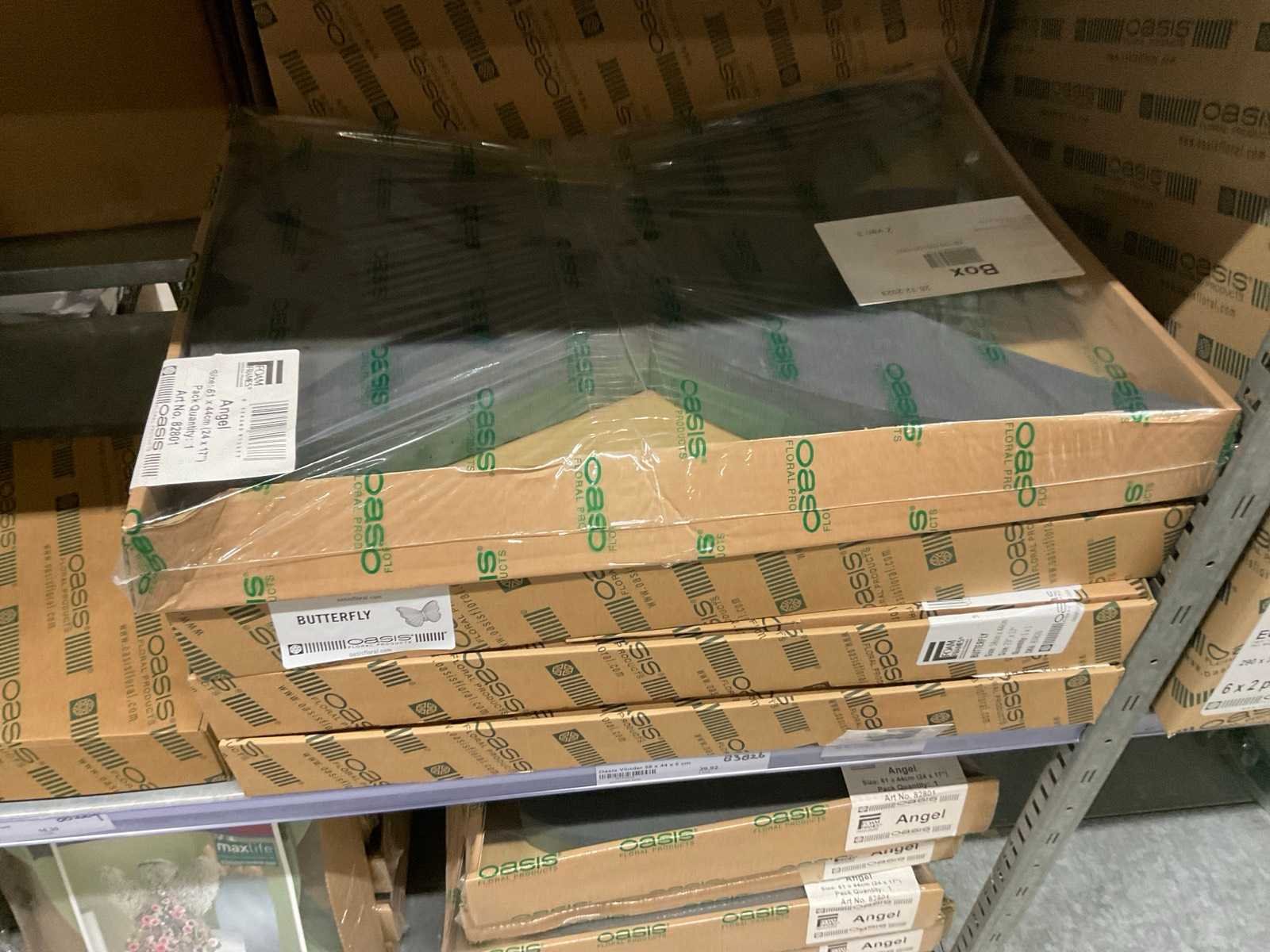 Oasis steekschuim in diverse vormen en afmetingen, o.a. hart, engel, vlinder, teddybeer, ster, ring, in 3 stellingsecties, stelling niet inbegrepen. Merk: Oasis Model: Foam frames