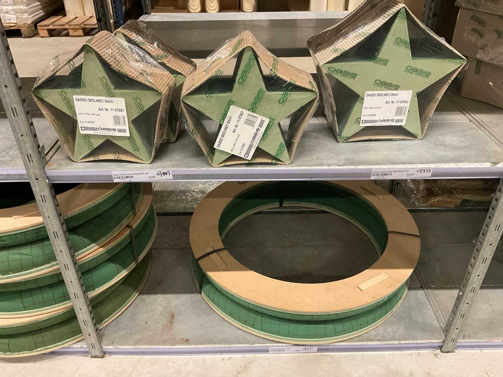 Oasis steekschuim in diverse vormen en afmetingen, o.a. ster, ring, open boek, Master Board, Raquette, in 3 stellingsecties, stelling niet inbegrepen. Merk: Oasis Model: Foam frames