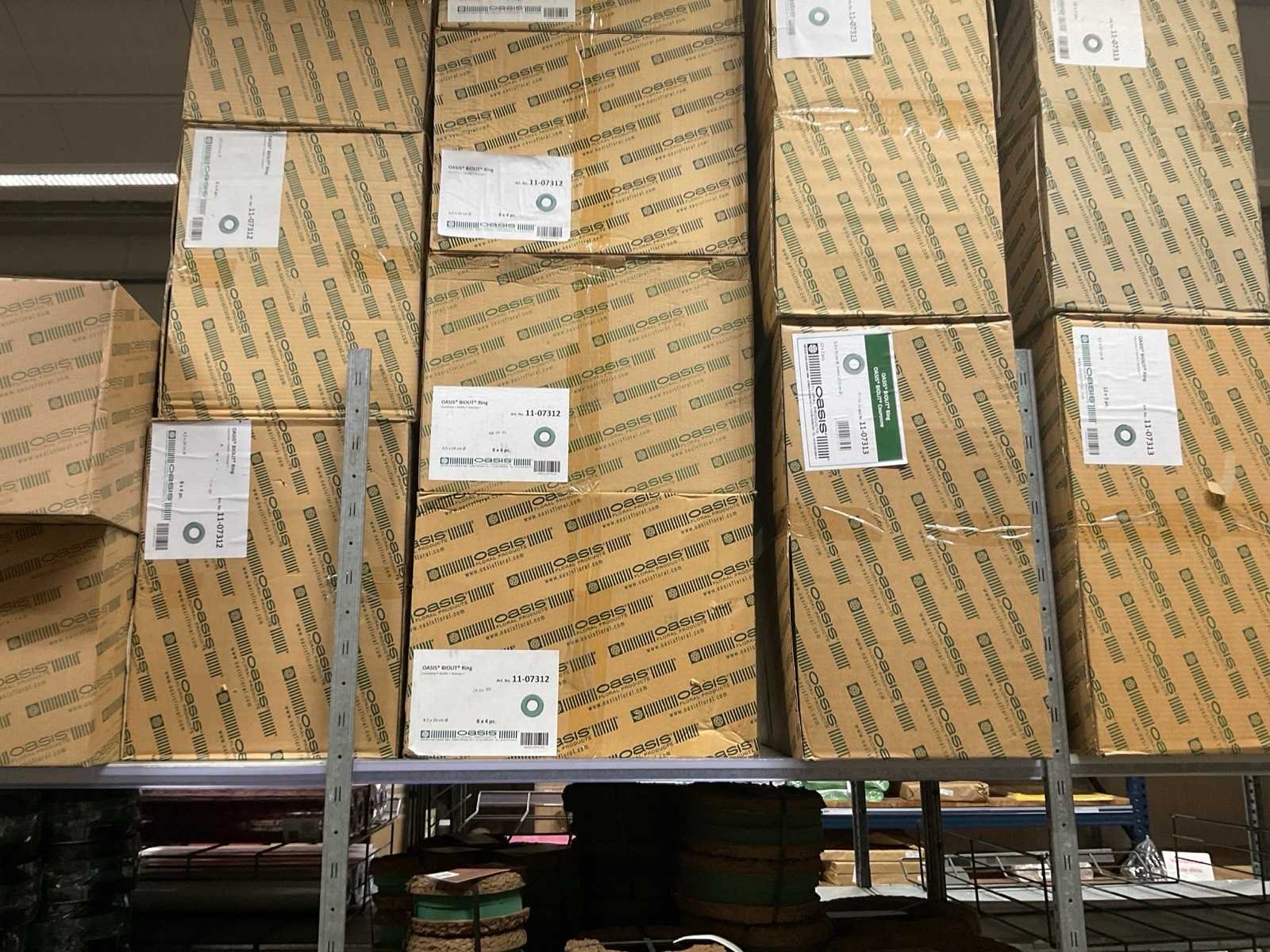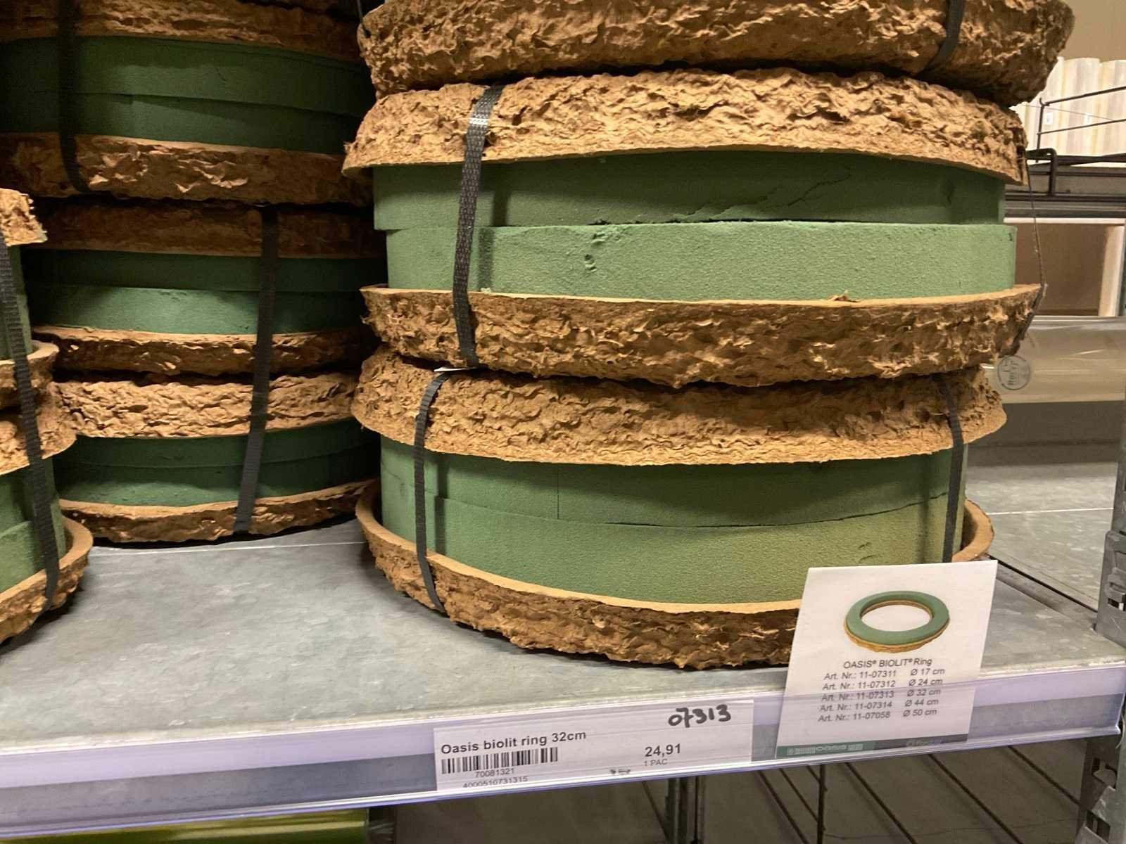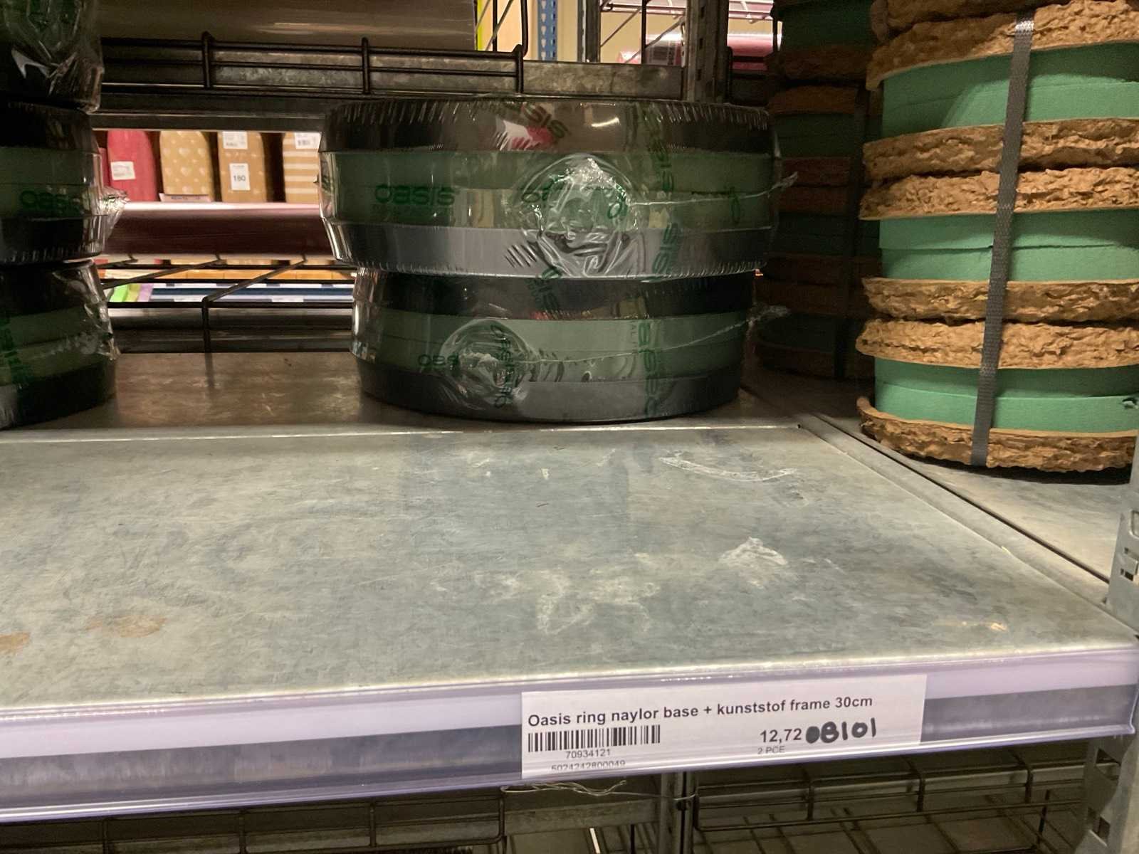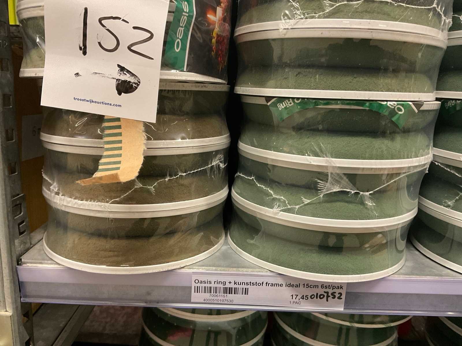 Oasis steekschuim in diverse vormen en afmetingen, o.a. Raquette, ring, schaal en blok, in 4 stellingsecties, stelling niet inbegrepen. Merk: Oasis Model: Foam frames