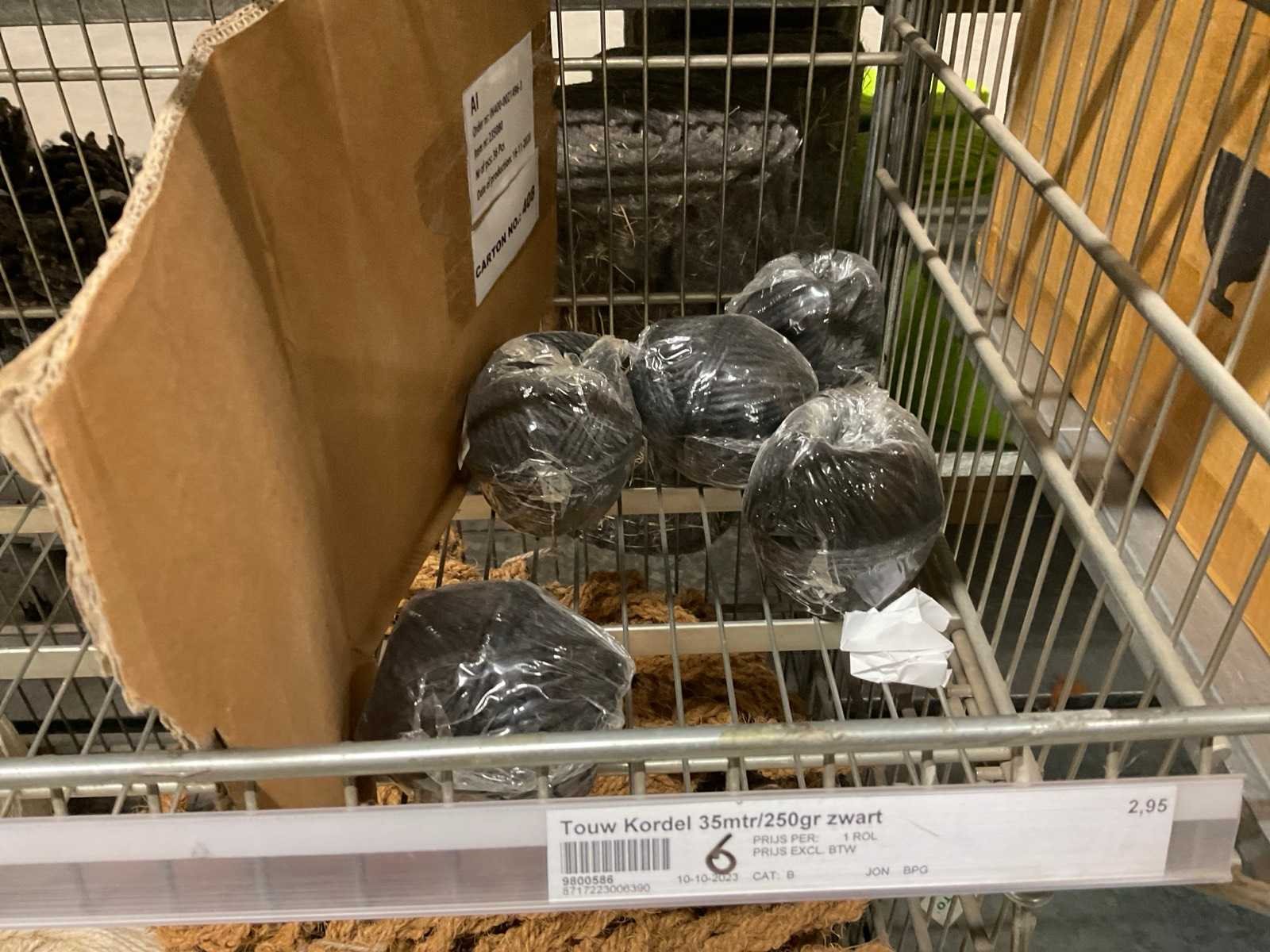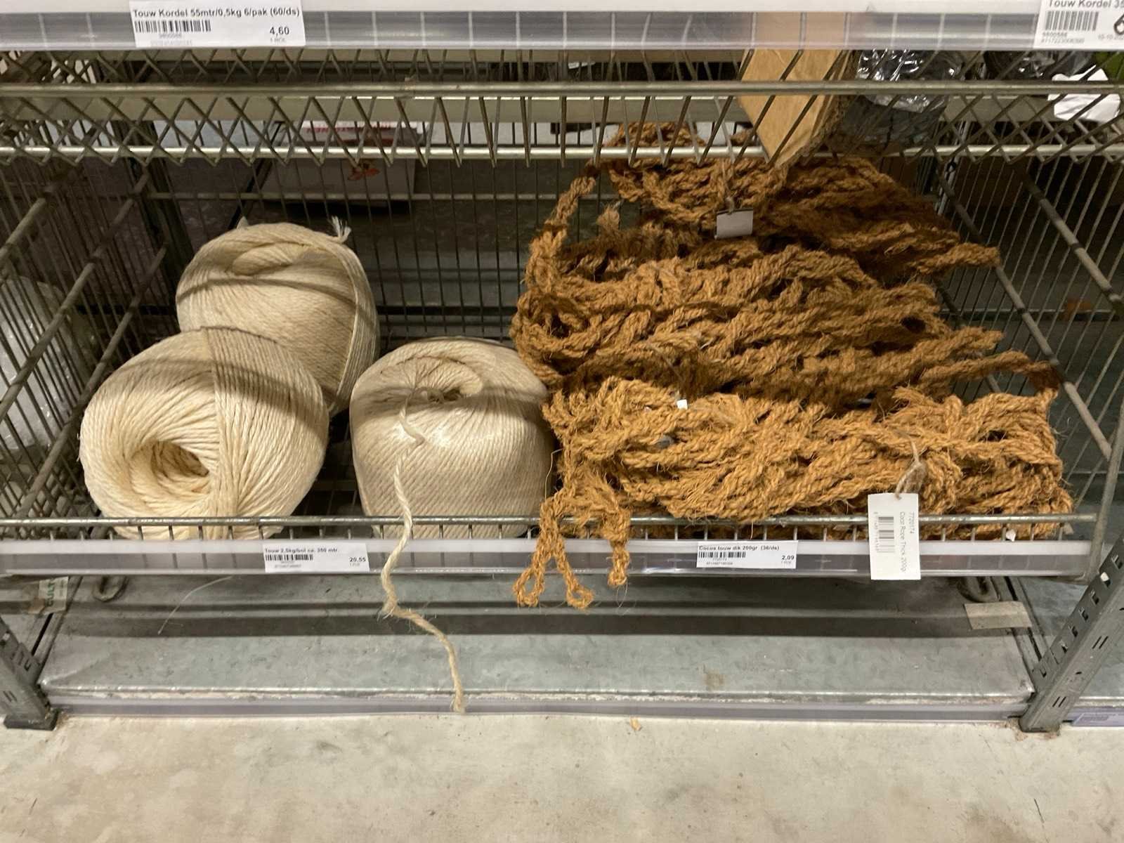 Van diverse soorten, diktes, lengtes en kleuren in 3 stelling secties, stelling niet inbegrepen.