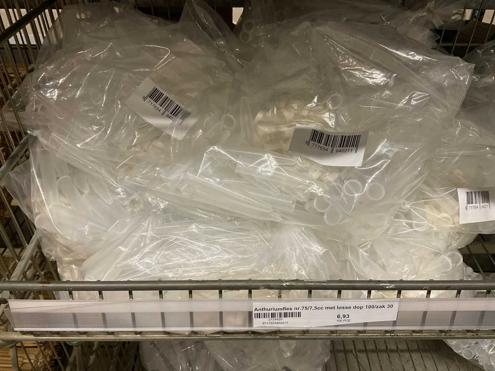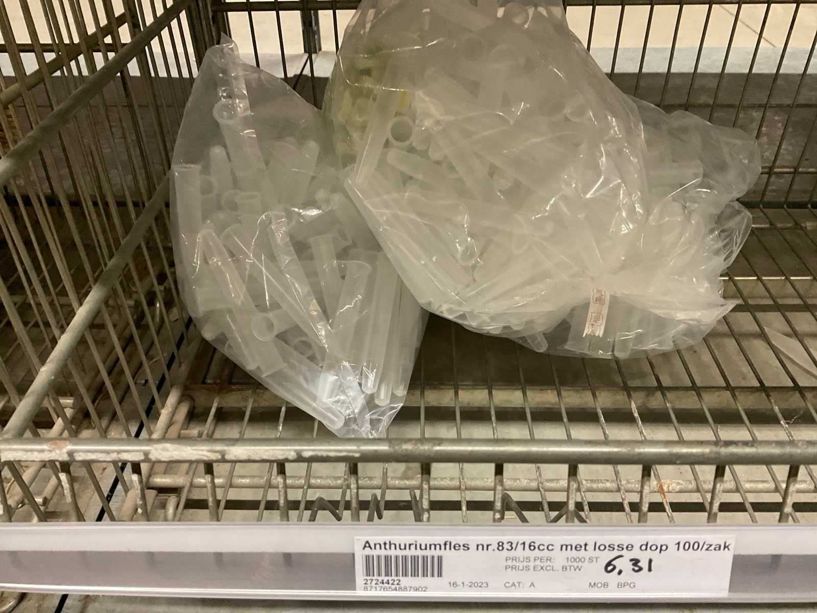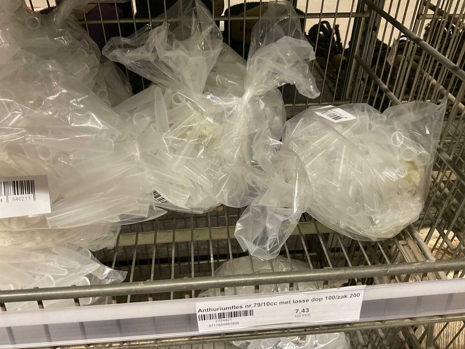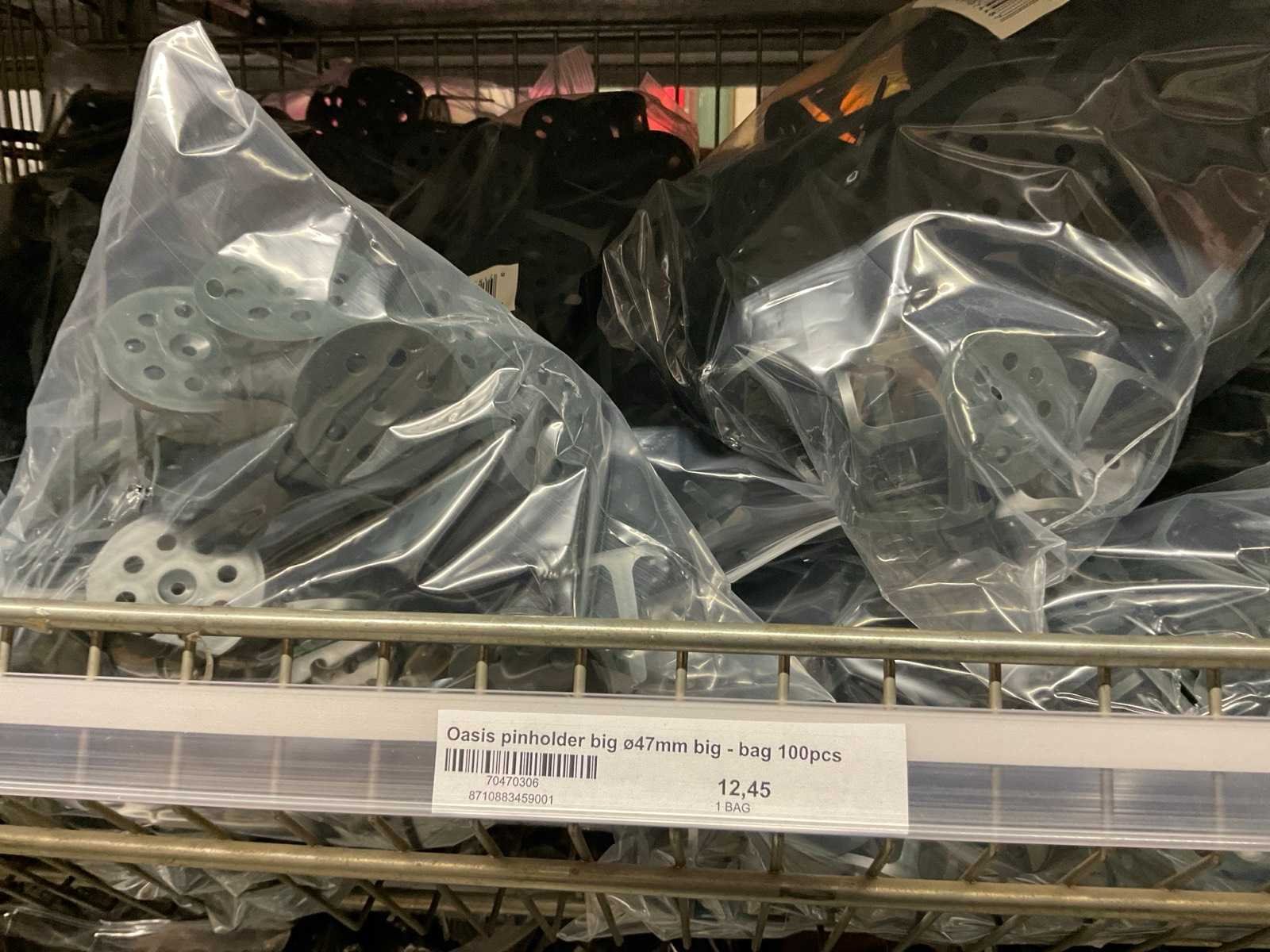 Bestaande uit Oasis pinhouders en Anthuriumflesjes in 1 stellingsectie, inclusief manden, stelling niet inbegrepen.