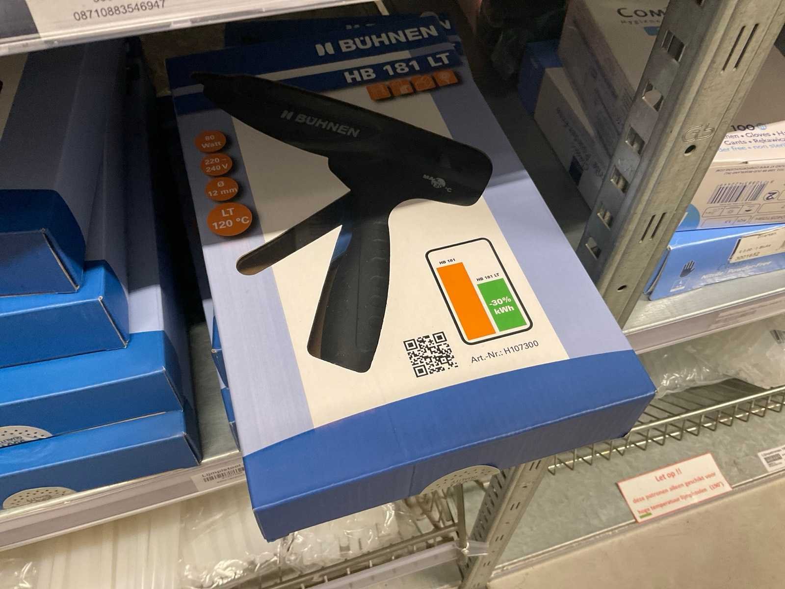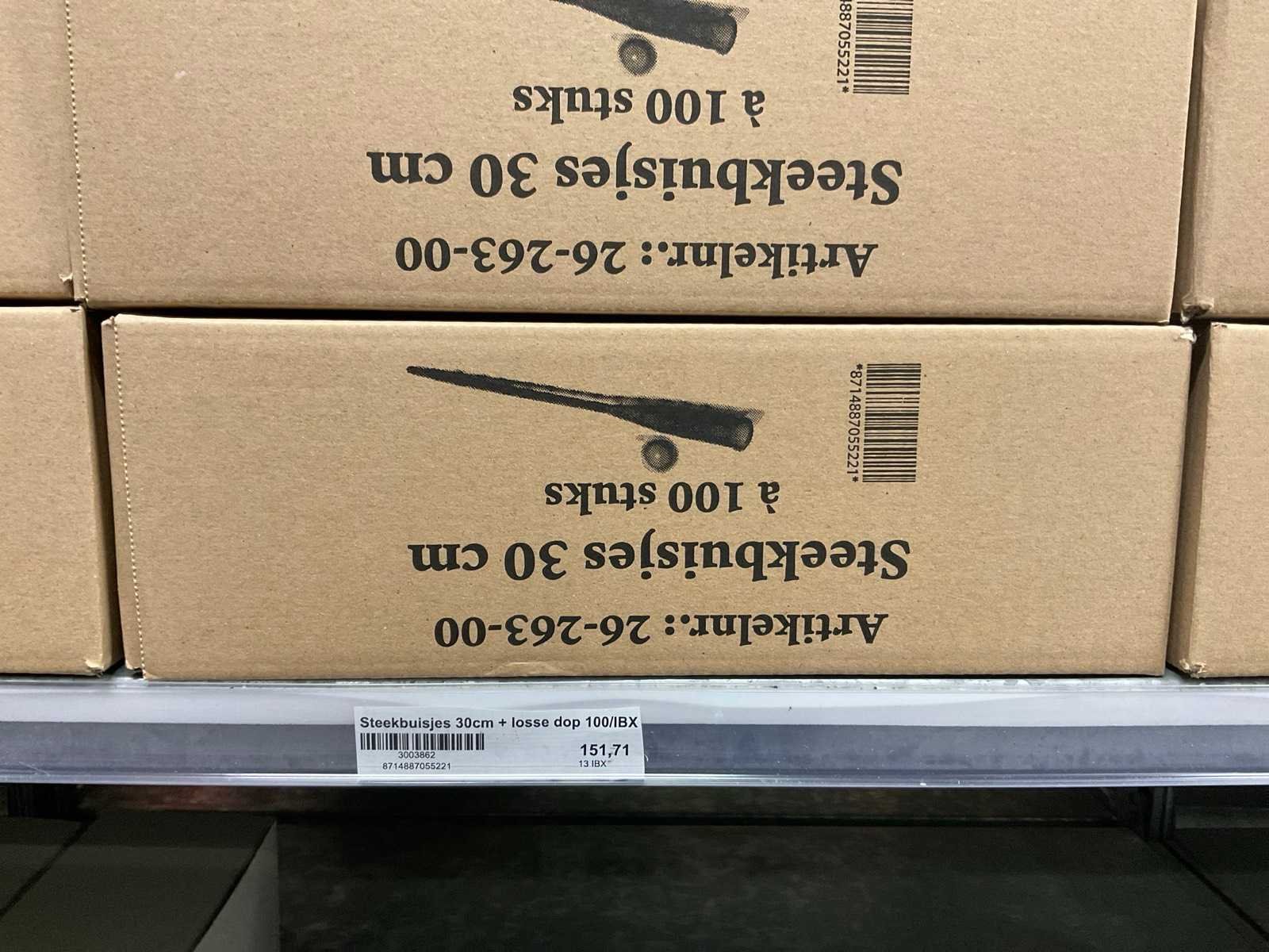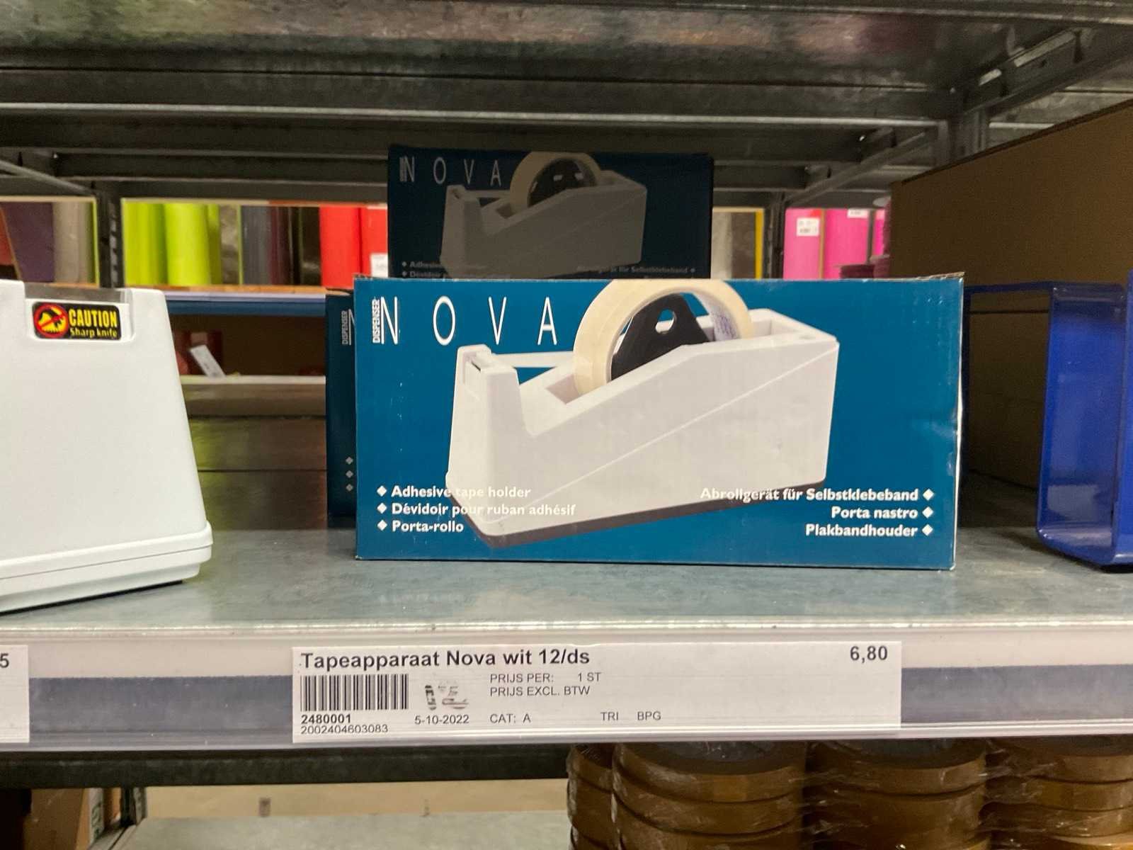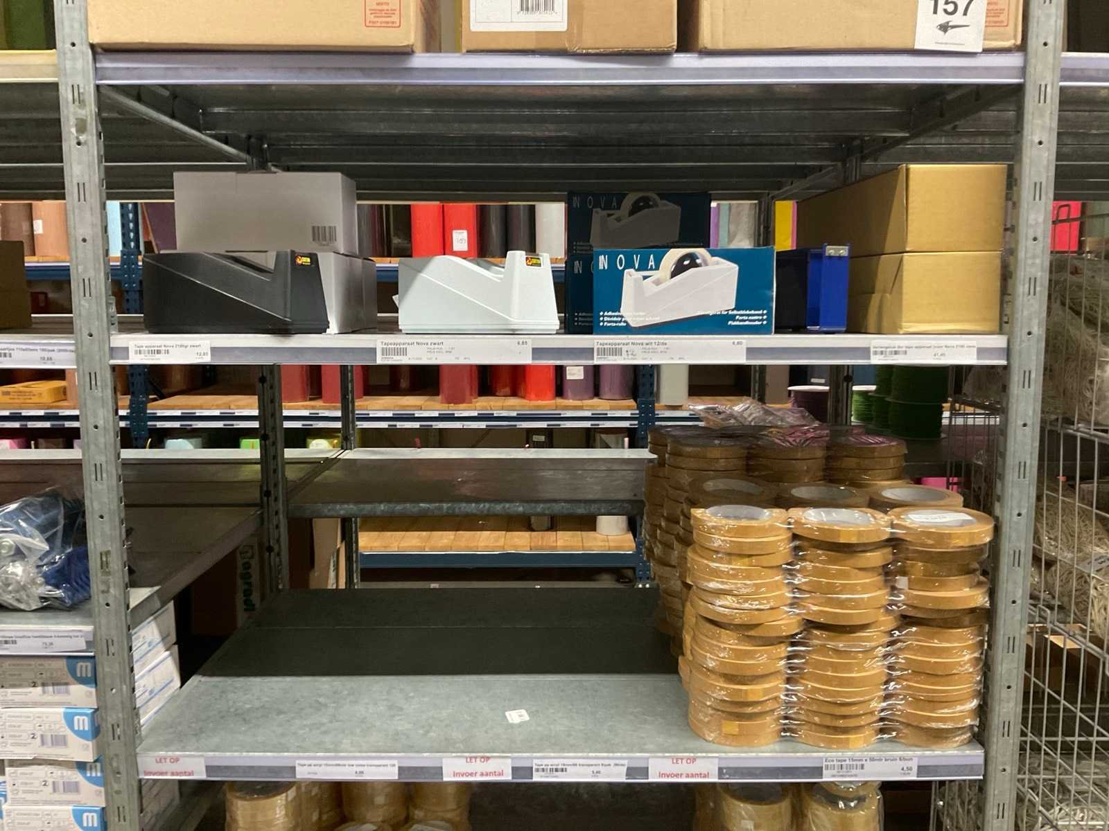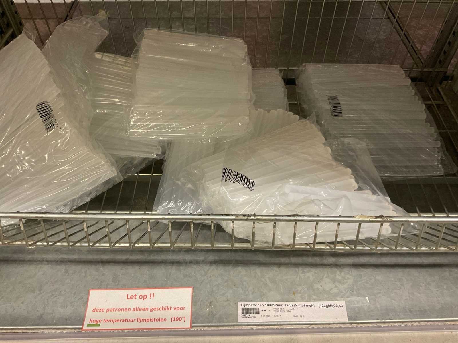 Bloemist, kantoor benodigdheden bestaande uit Plakband in diverse lengtes, kleuren en breedtes, plakbandhouders, Olies borstels, handschoenen voornamelijk maat 8, steekbuisjes 15 en 30 cm, steekkarren, aluminium folie, Buhnen lijmpistolen en patronen in 3 stellingsecties, stelling niet inbegrepen.