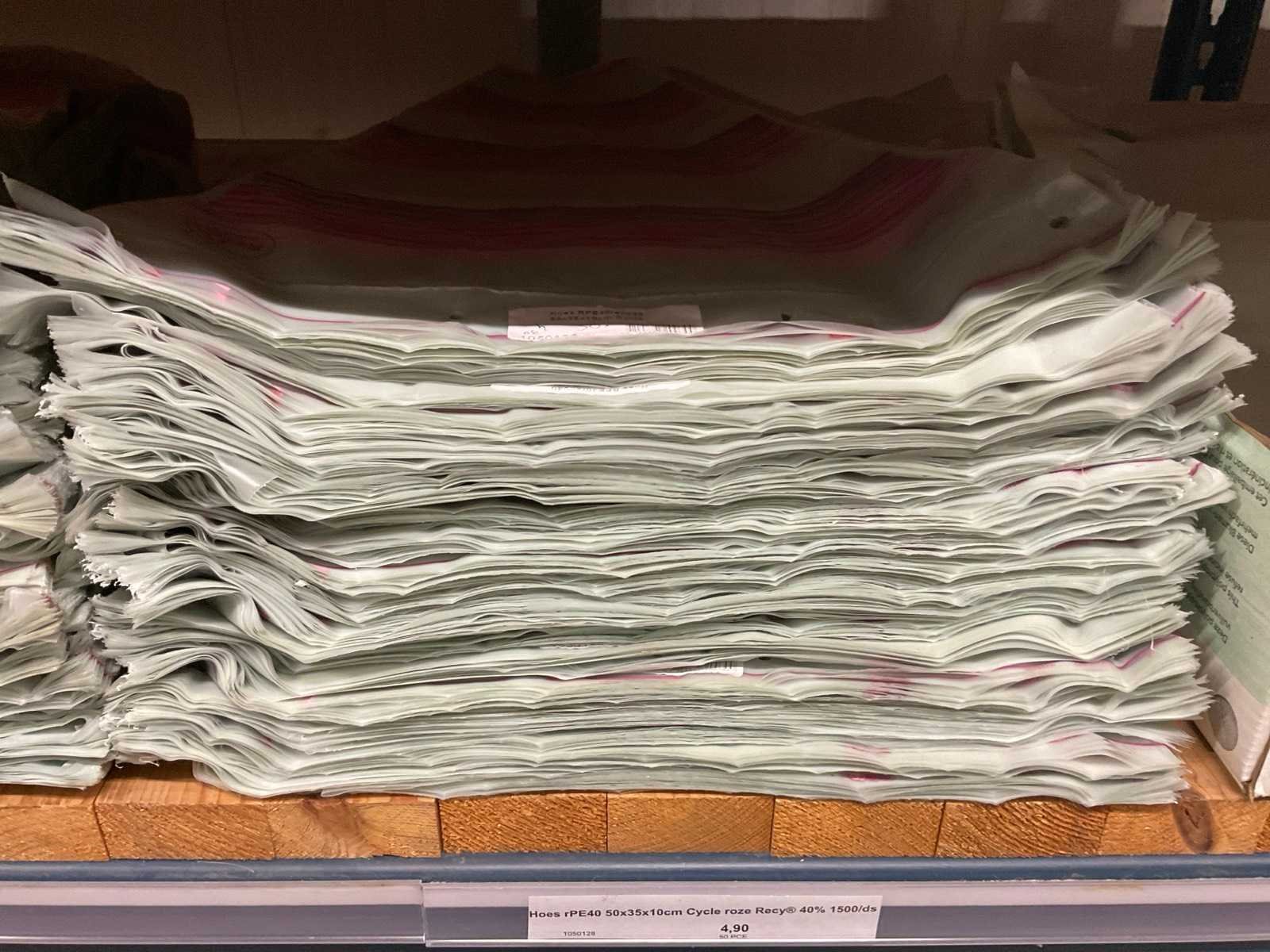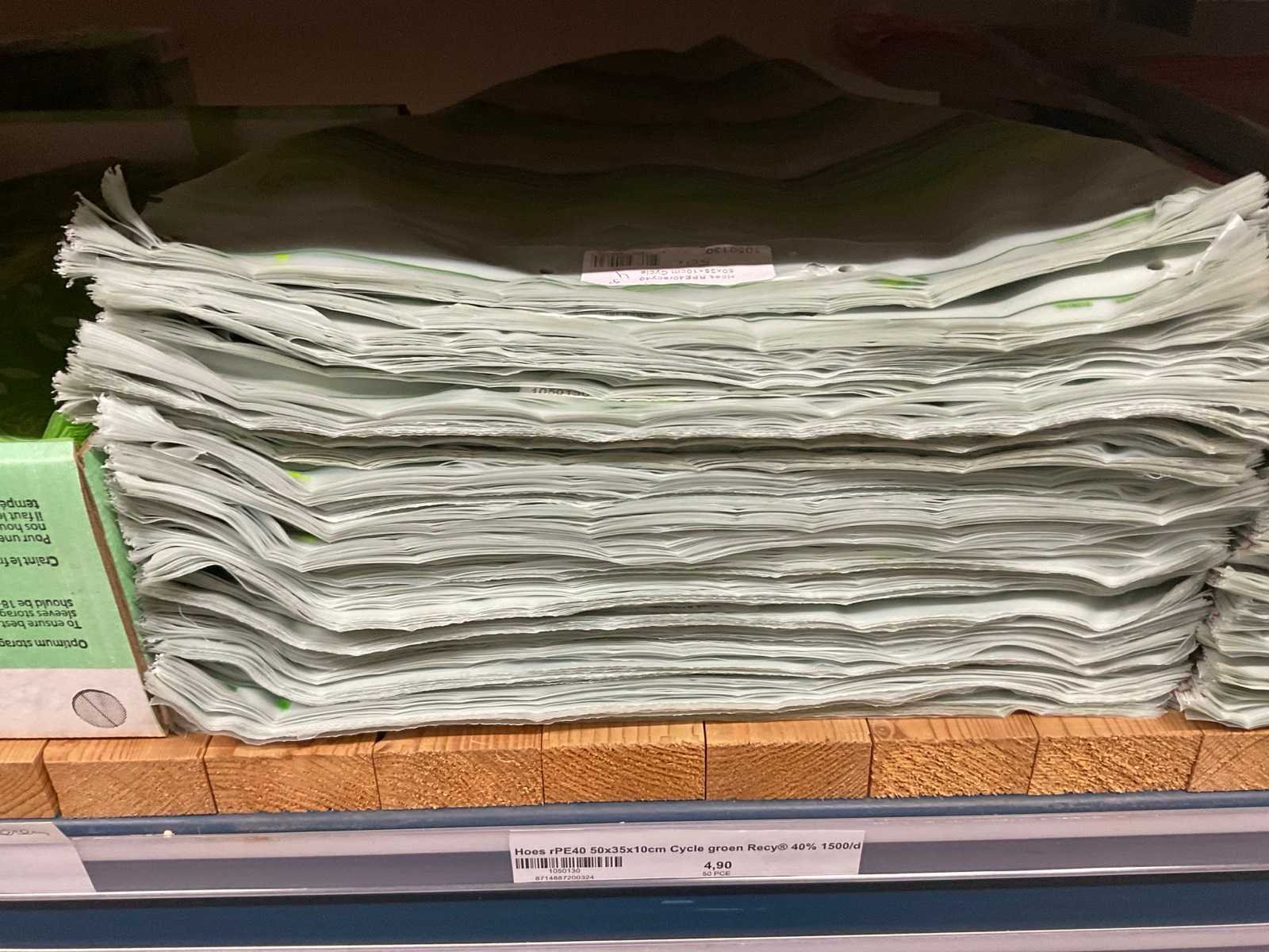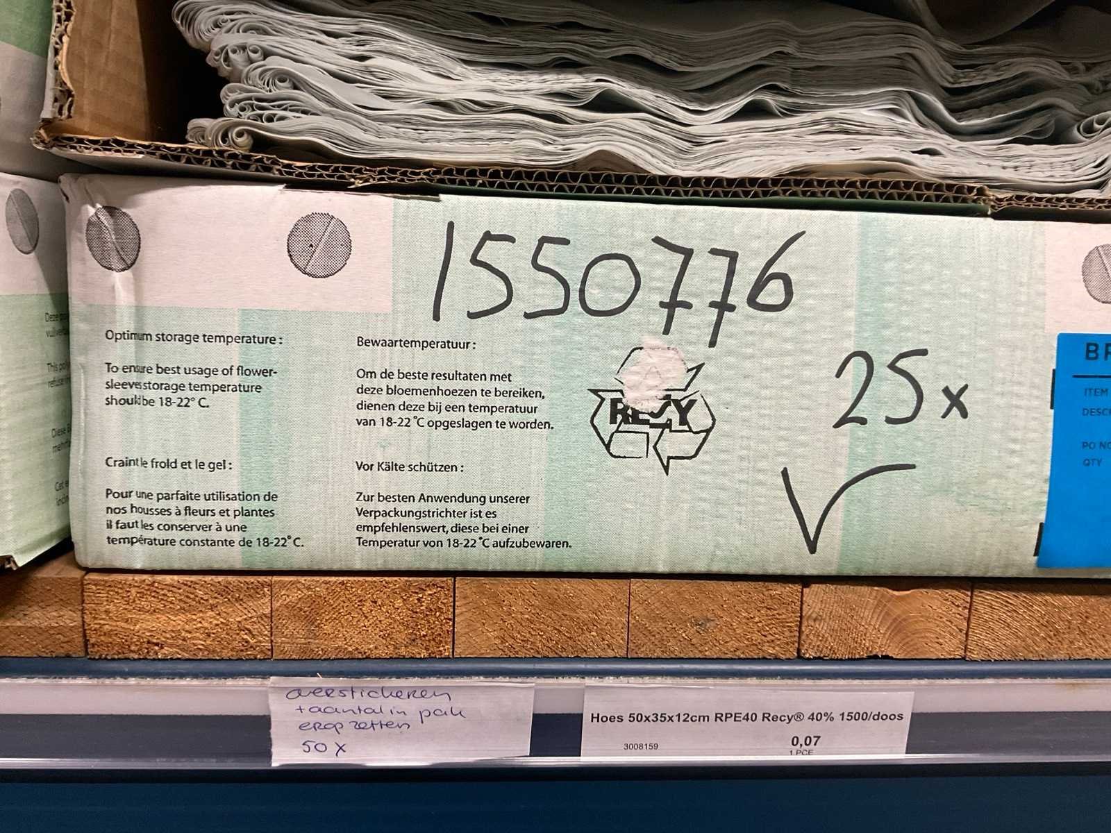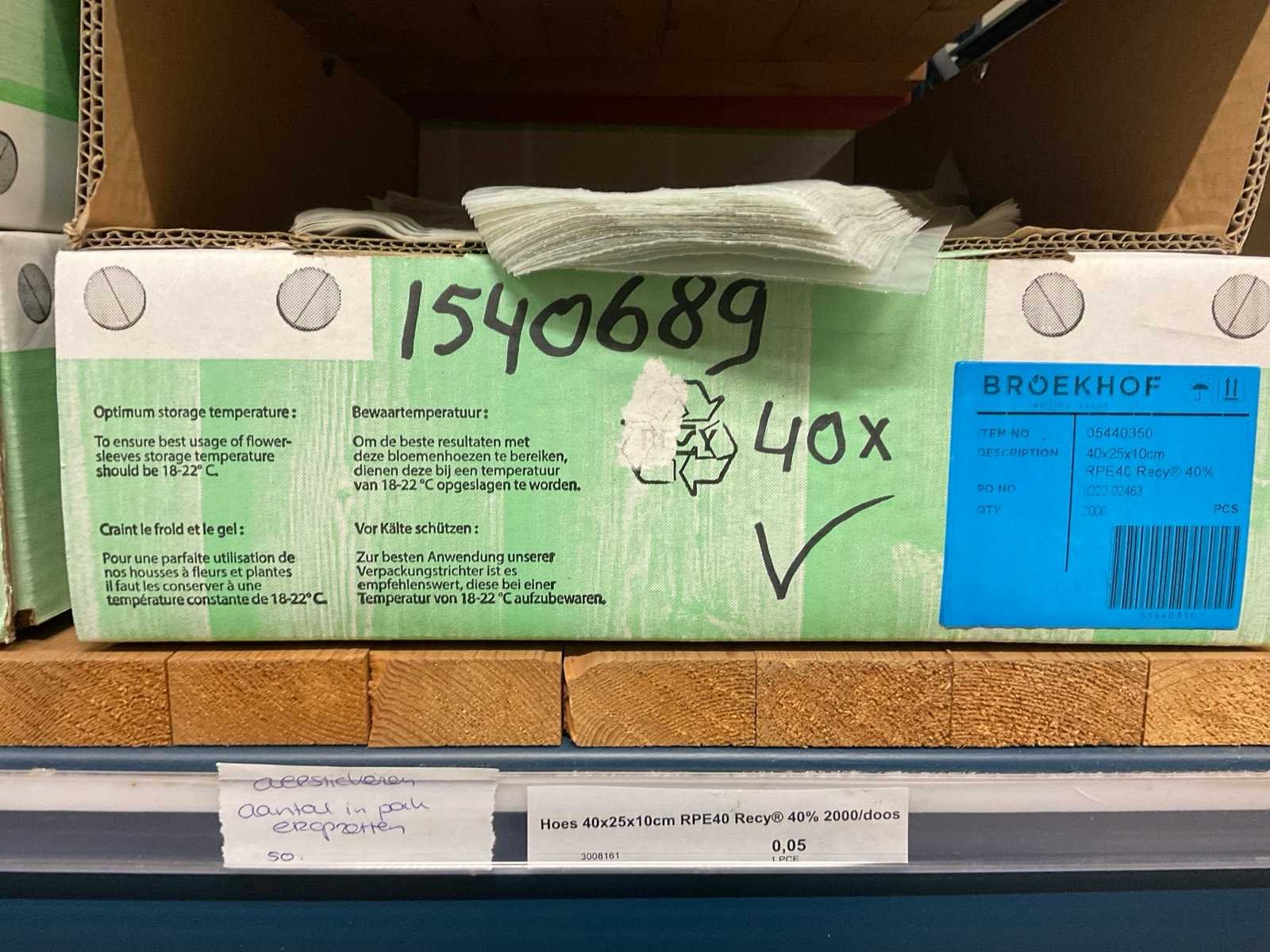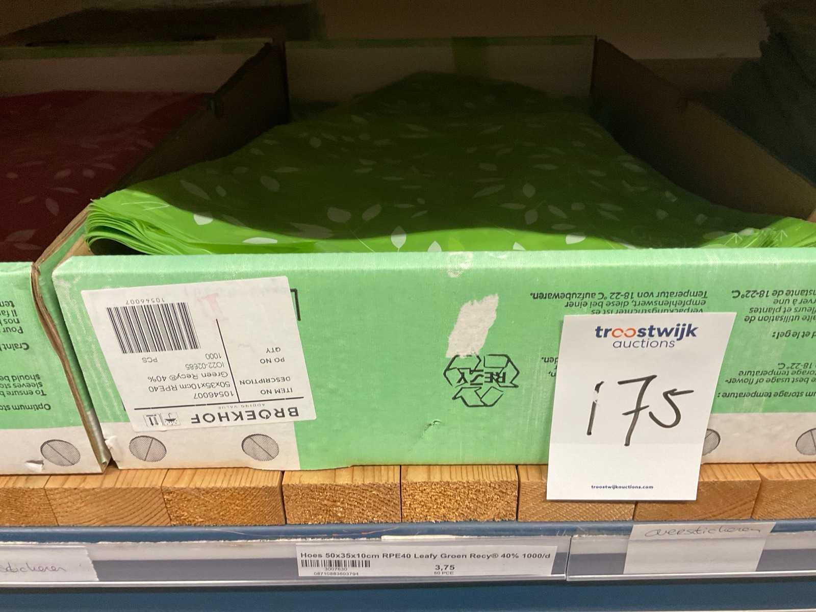 Bloemhoezen in diverse afmetingen met bedrukking, kwaliteit REP40 en RPE, inclusief metalen kerstbomen in goudkleur en zwart t.b.v. kerstballen, alles in 1 stellingsectie, stelling niet inbegrepen. Model: RPE40, RPP