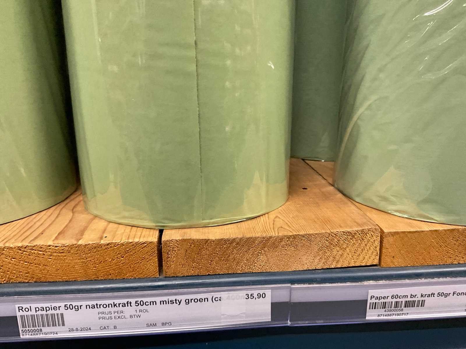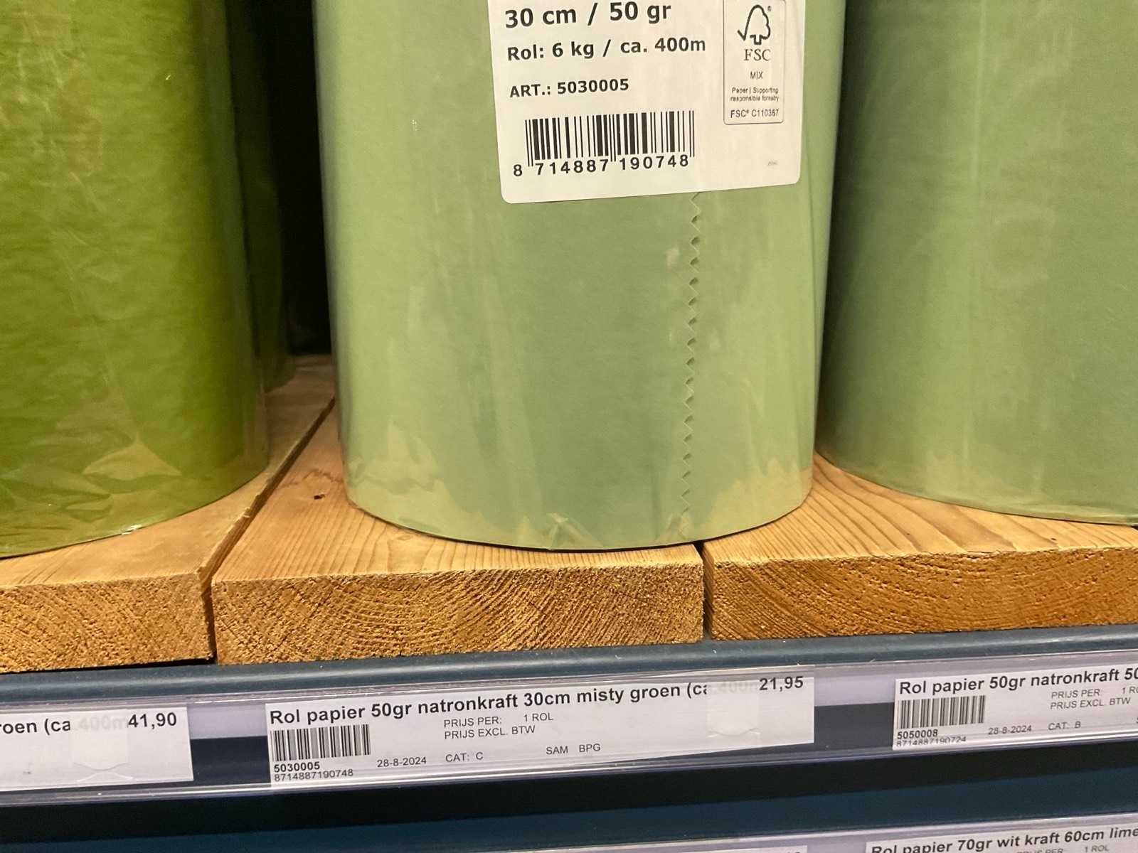 In diverse afmetingen en kleuren, o.a. FSC mix, 32, 50 en 70 grams, alles in 1 stellingsectie, stelling niet inbegrepen.