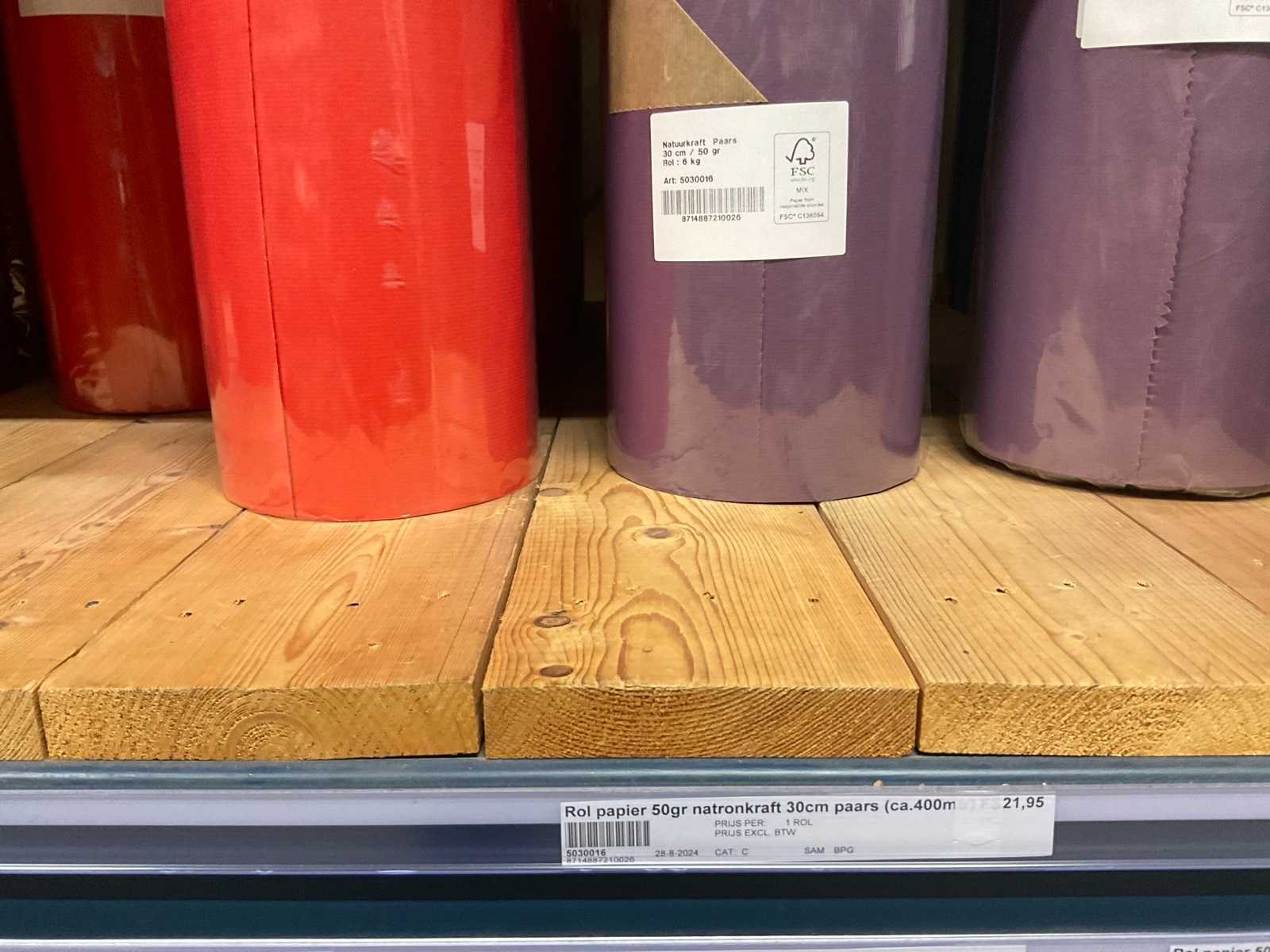 In diverse afmetingen en kleuren, o.a. FSC mix, 50 en 70 grams, alles in 1 stellingsectie, stelling niet inbegrepen.