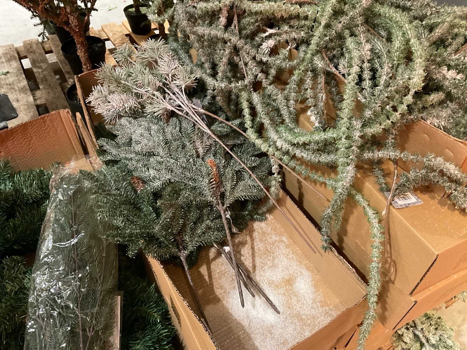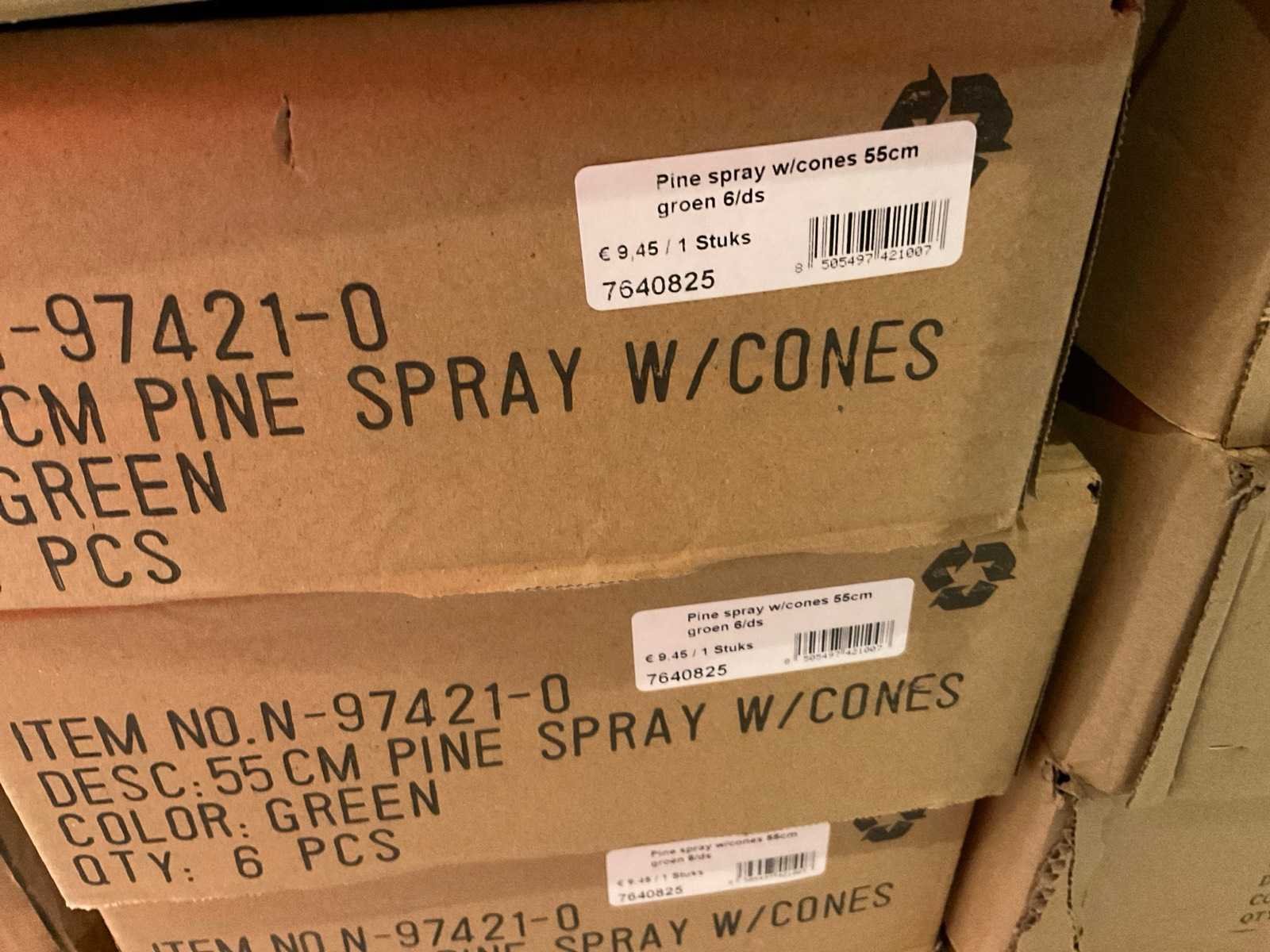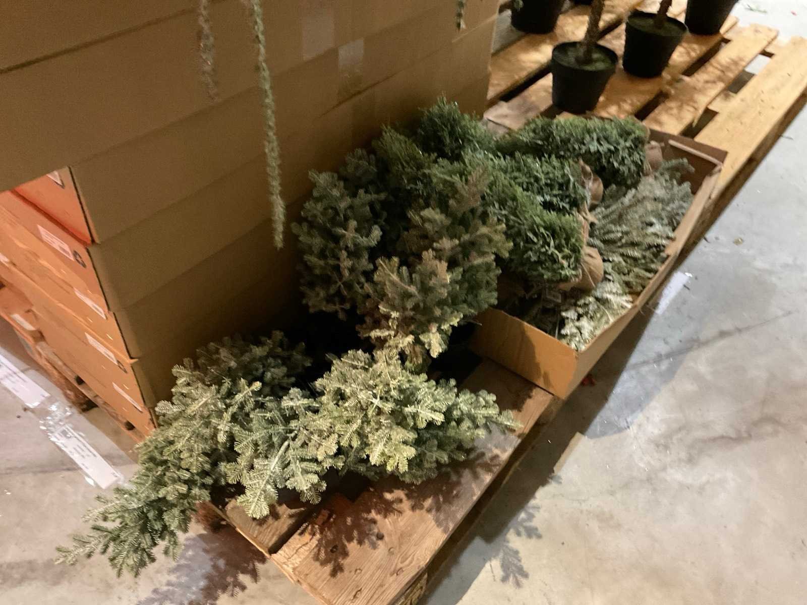 Inhoud op 2 pallets bestaande o.a. uit kerst takken en guirlandes. Inclusief pallets.