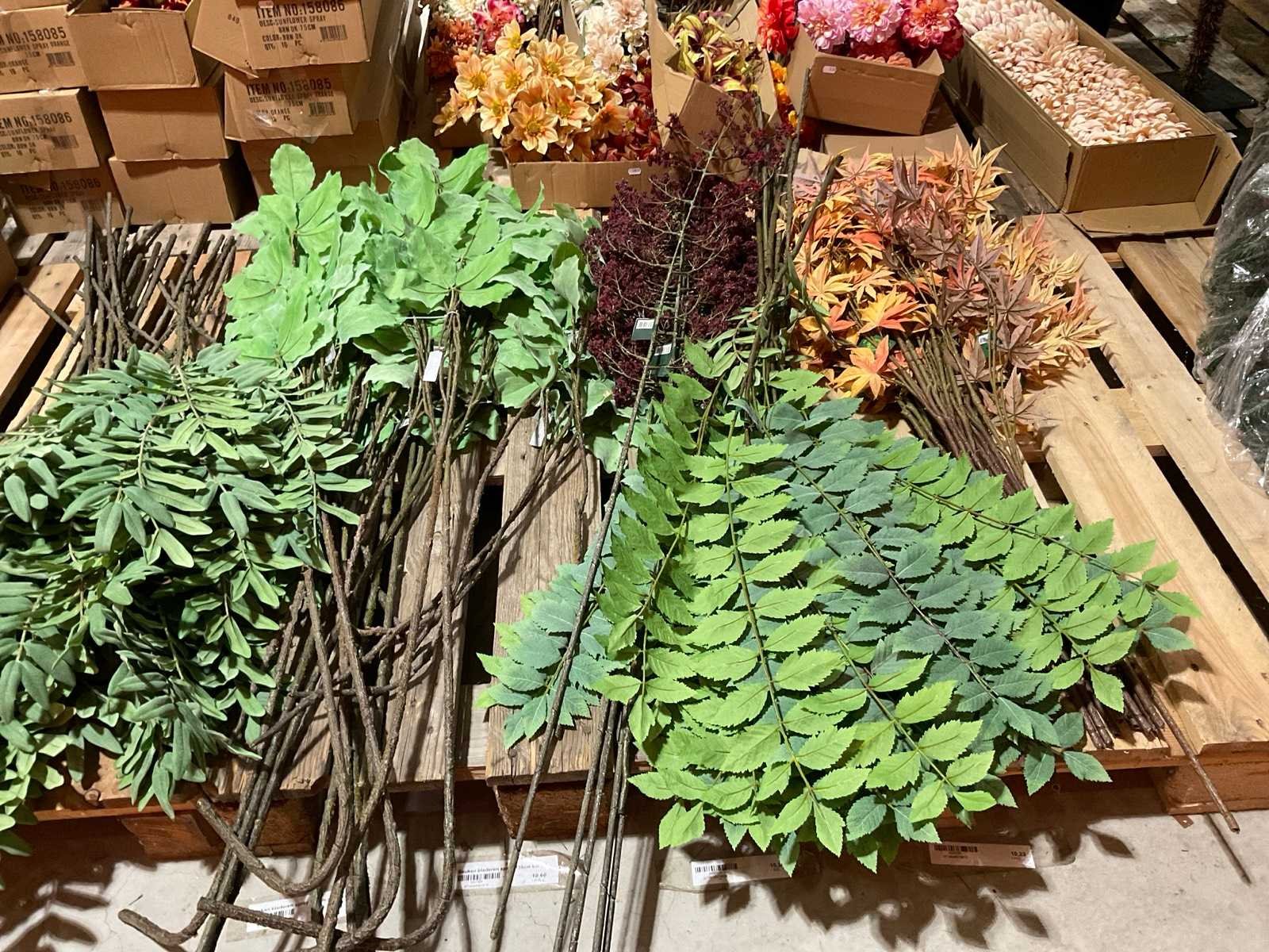 Inhoud op 4 pallets, bestaande o.a. uit diverse bladtakken. Inclusief pallets. Merk: Silka en Emerald