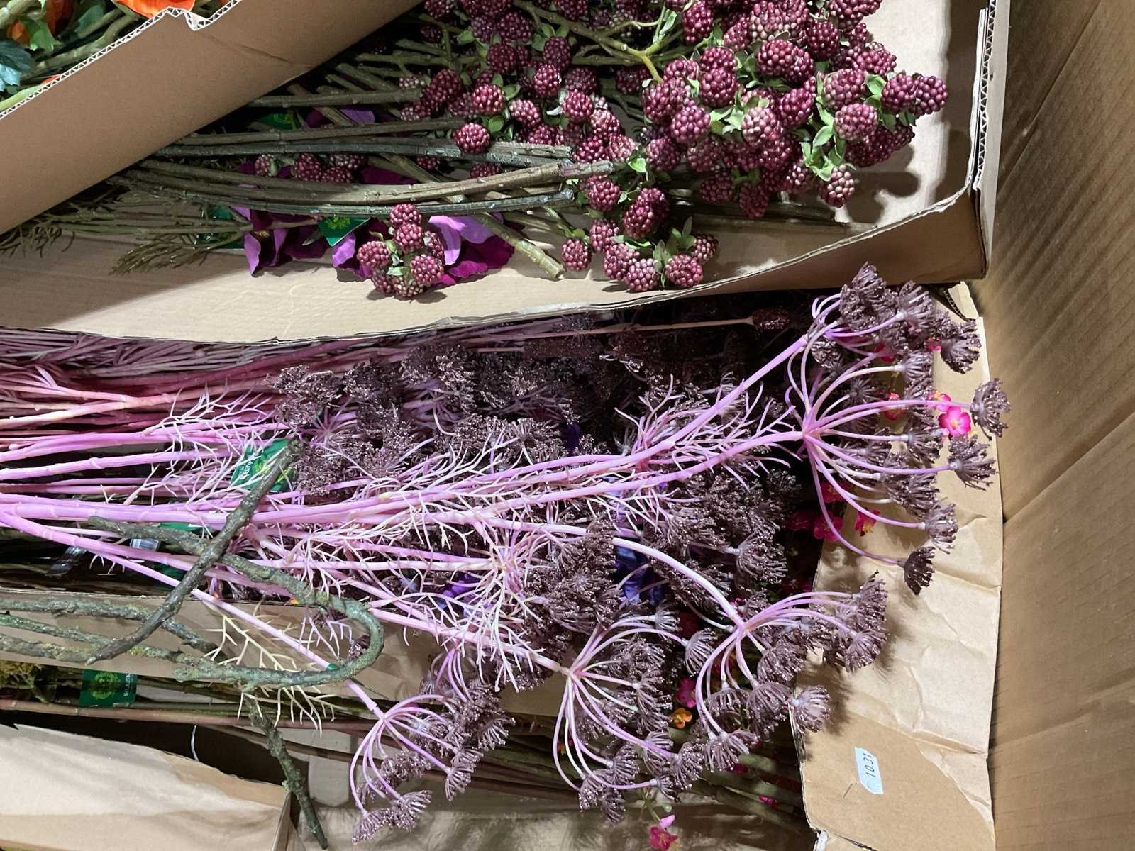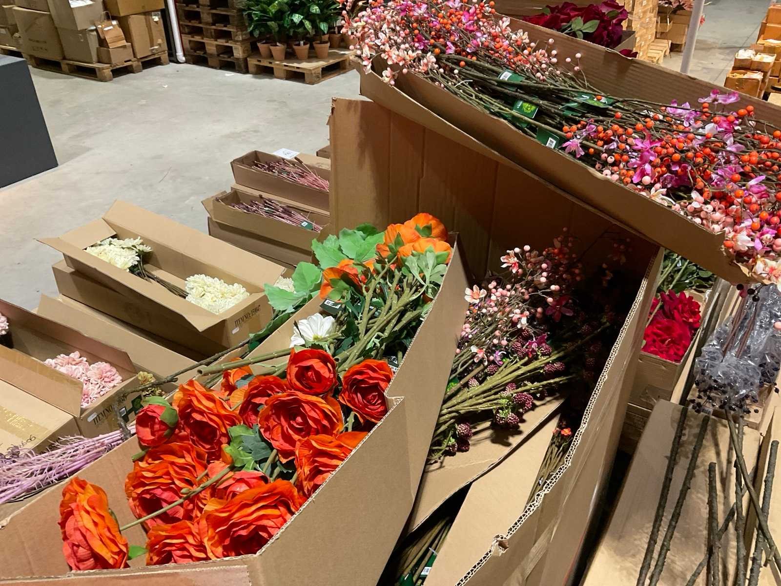 Inhoud in 1 doos op pallet, bestaande uit diverse bladtakken en bloemen, inhoud niet gecontroleerd, Inclusief pallet en doos. Merk: Silka en Emerald