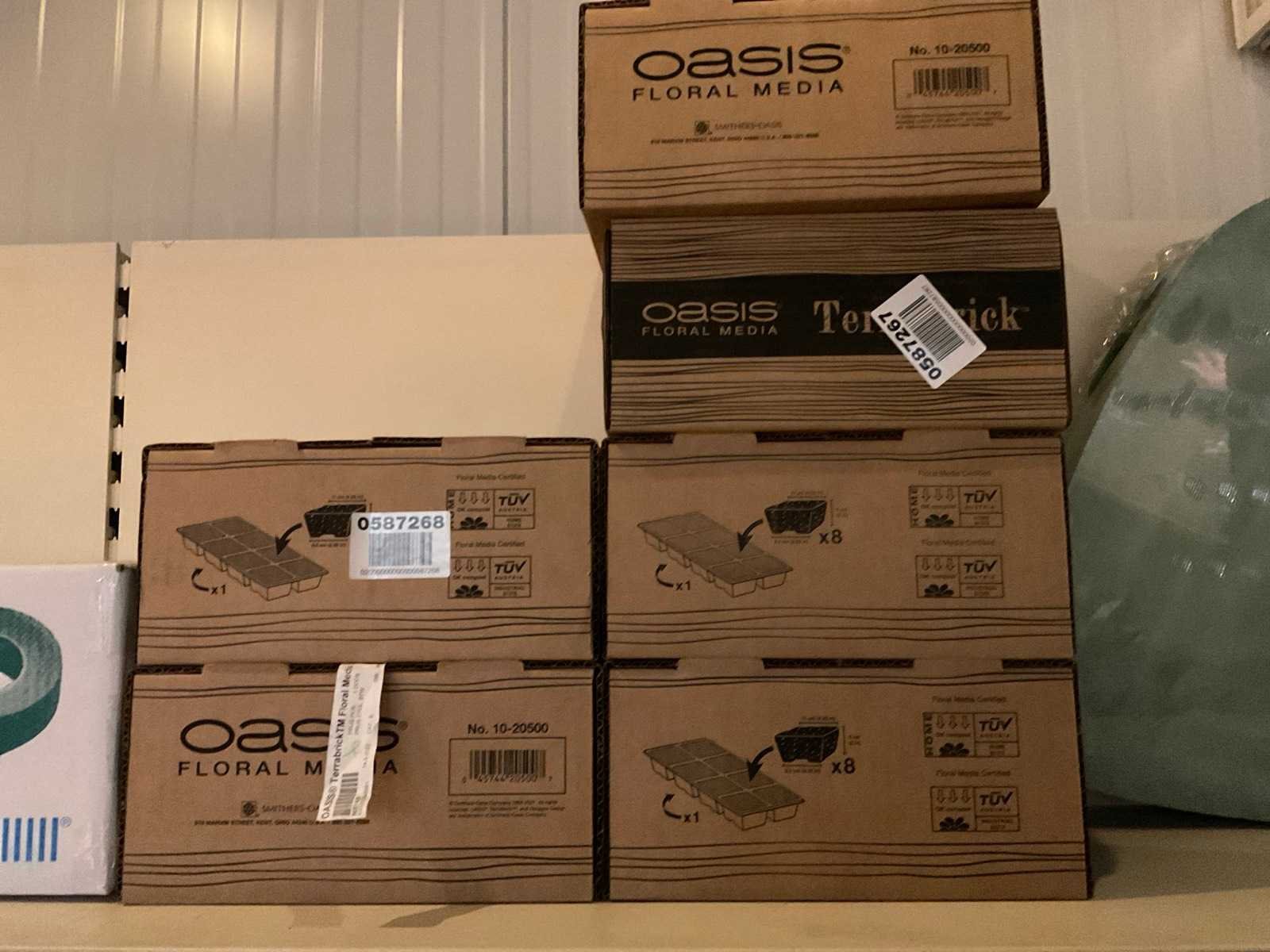Inhoud van stelling bestaande o.a. uit kerstballen vaas en oase, exclusief stelling.