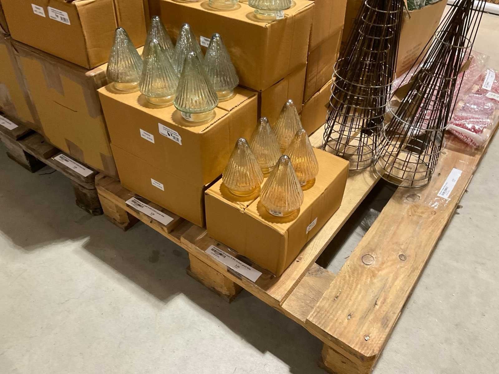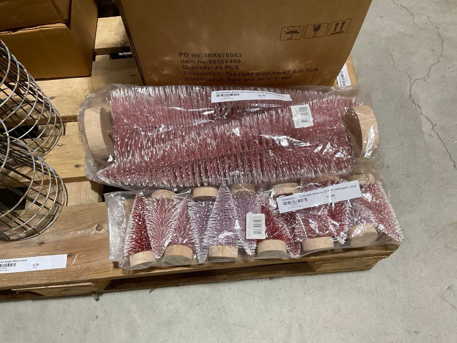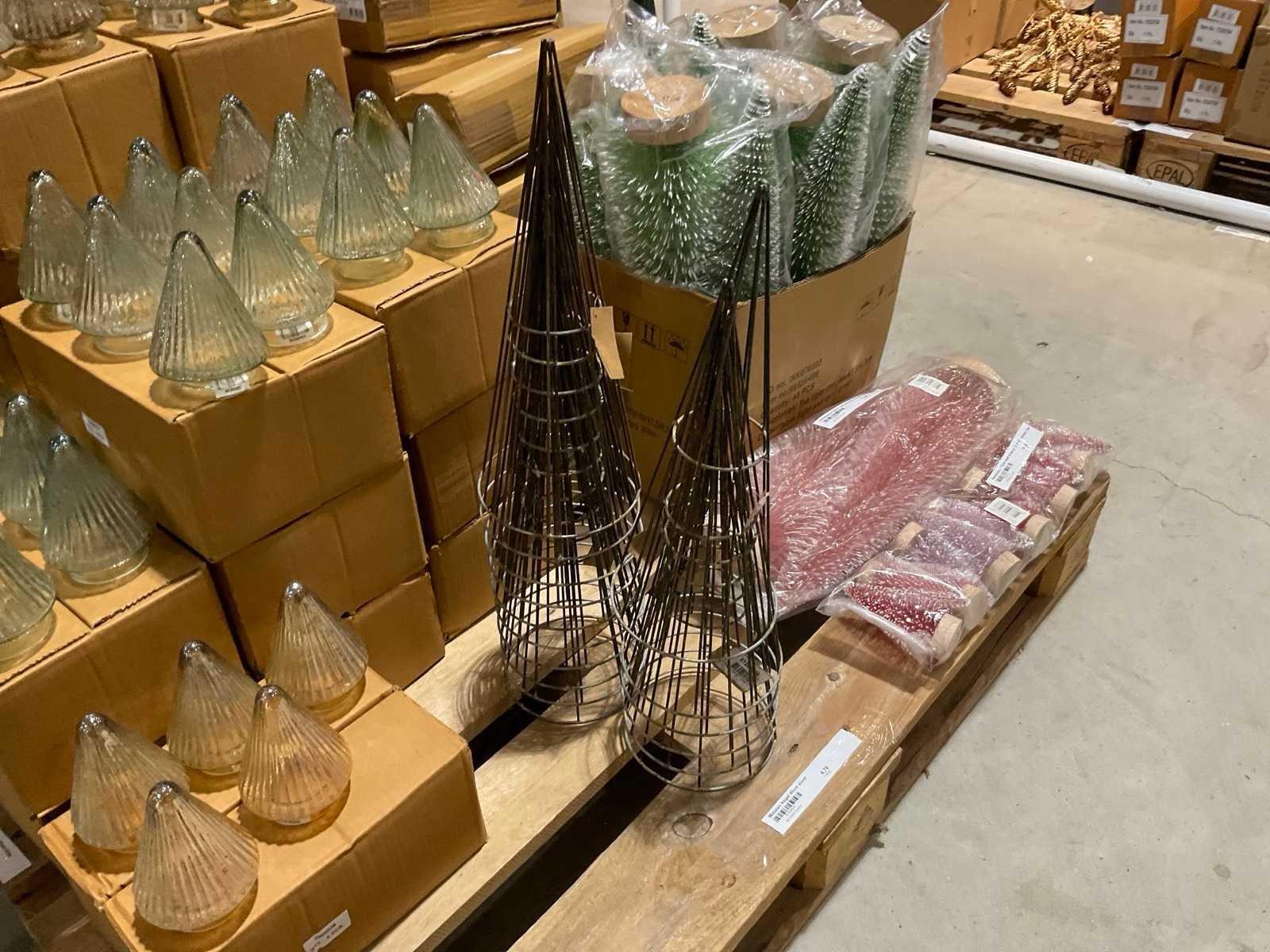 Inhoud op 2 pallets bestaande o.a. uit kerstdecoraties, inclusief pallets.