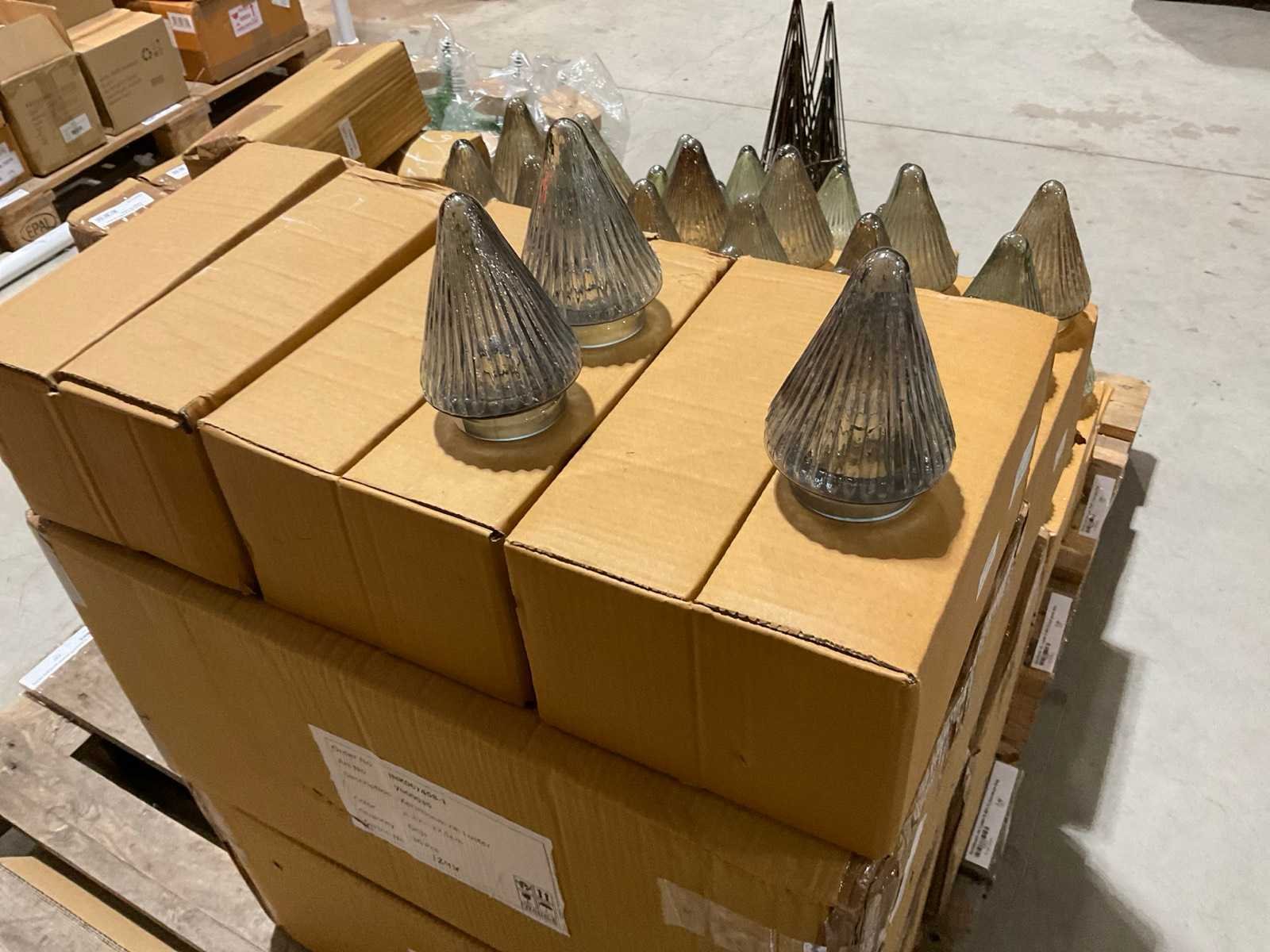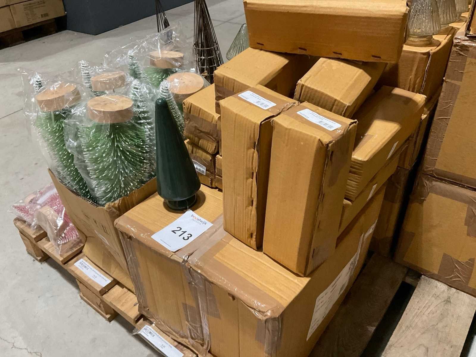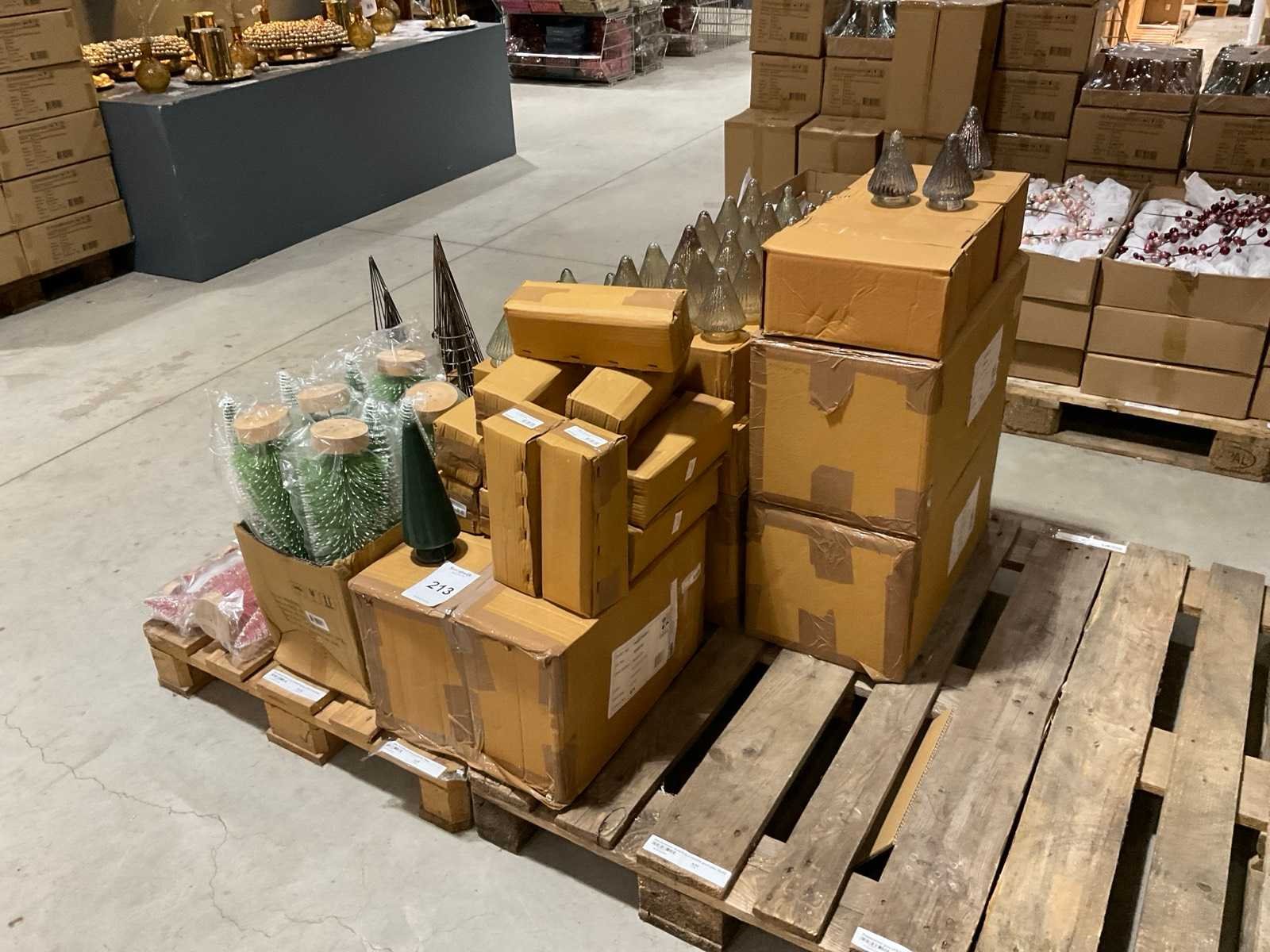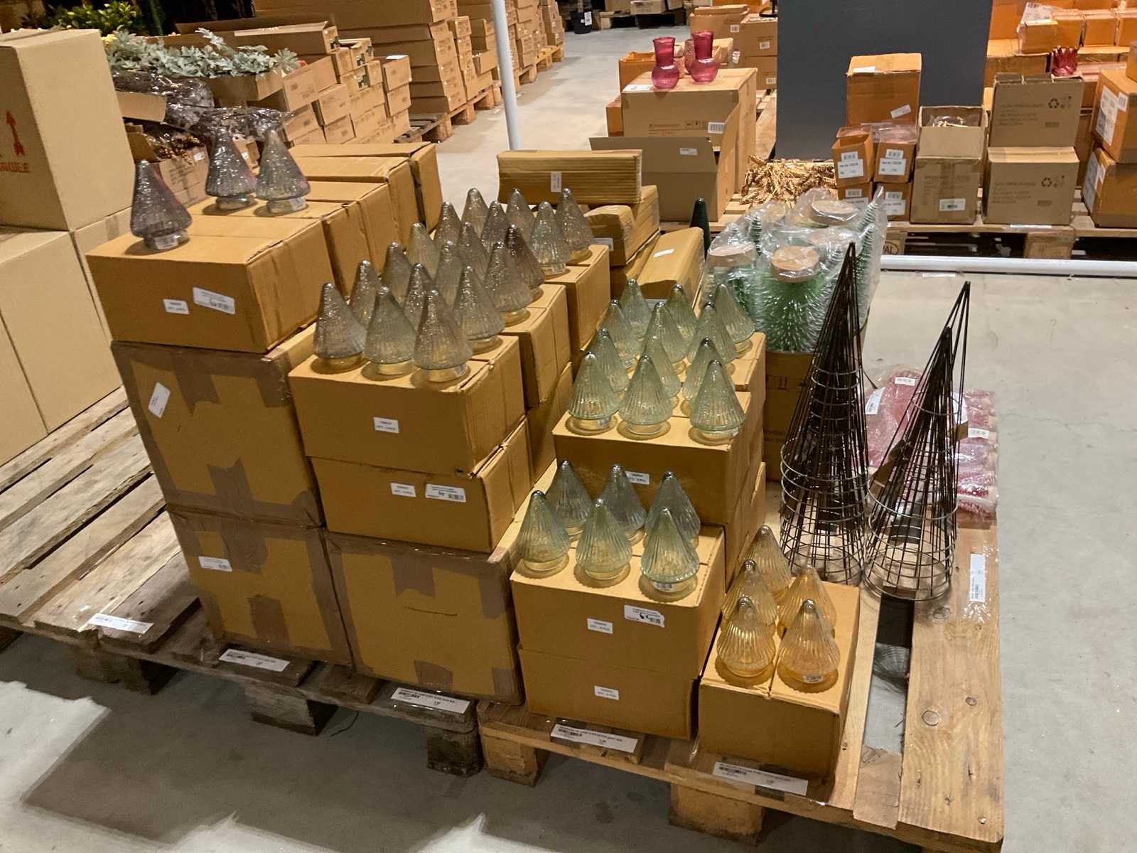 Inhoud op 2 pallets bestaande o.a. uit kerstdecoraties, inclusief pallets.