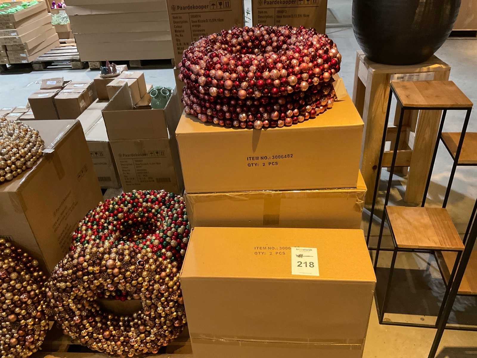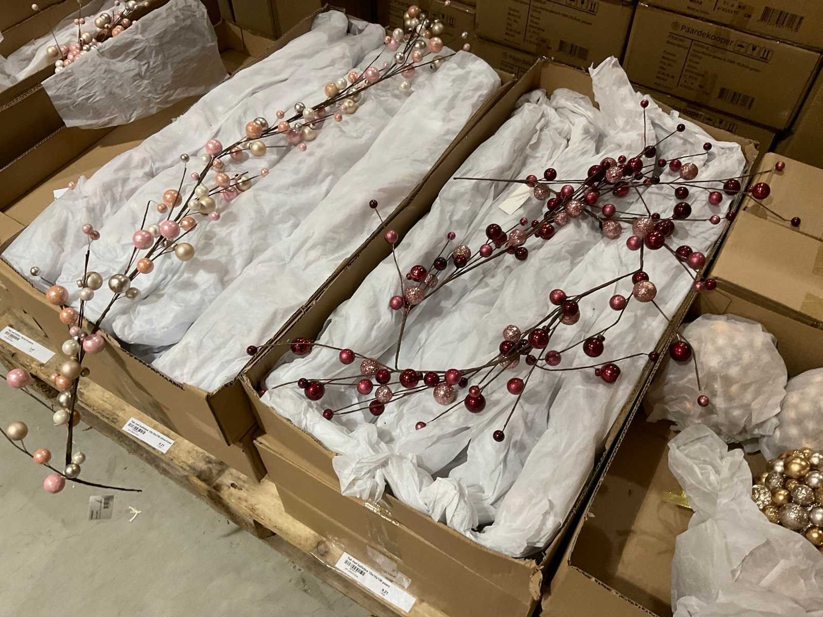 Inhoud op 4 pallets bestaande o.a. uit kerstbal takken en kransen, inclusief pallets.