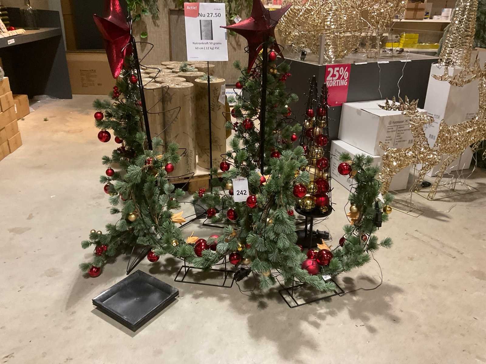 Inhoud bestaande uit metalen kerstornamenten met decoratie.
