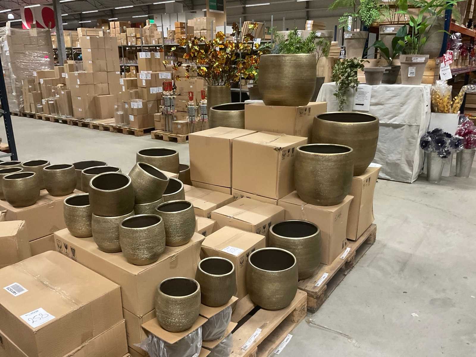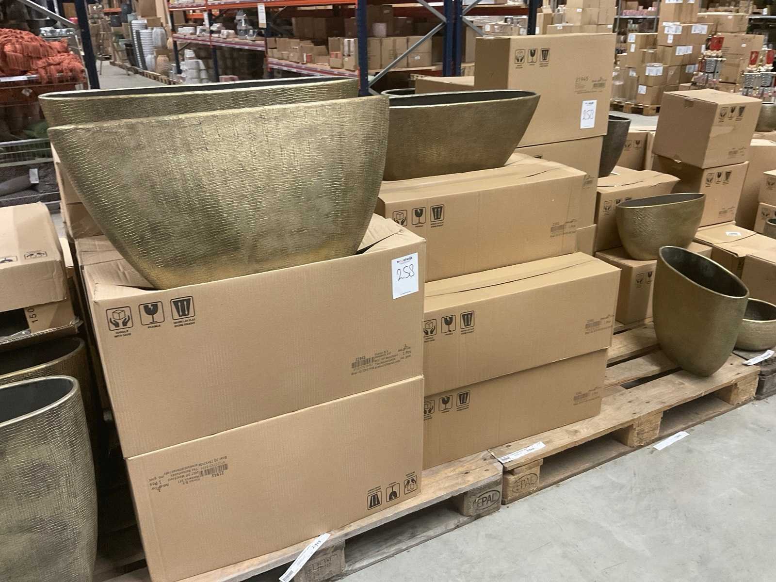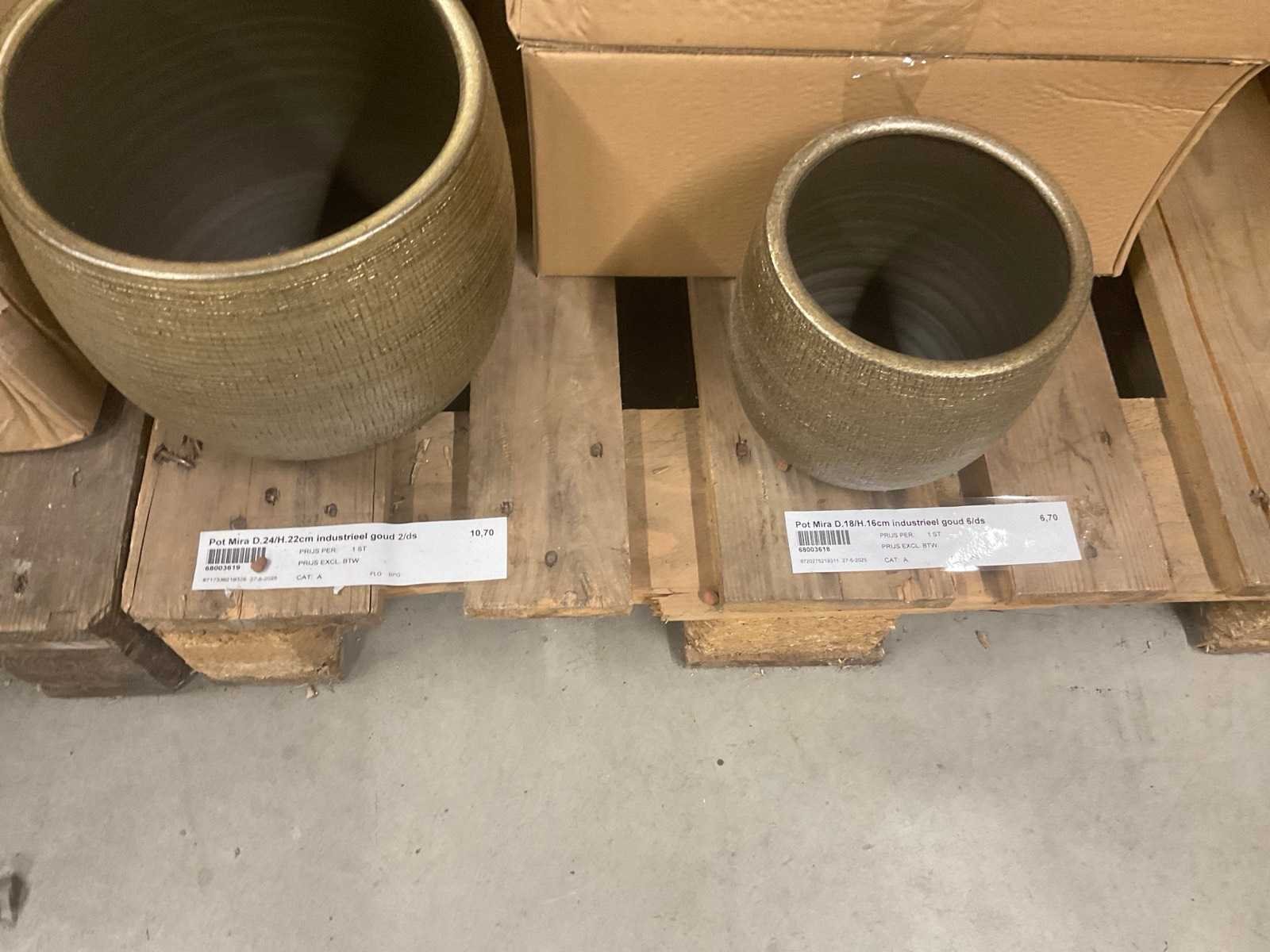 Inhoud op 10 pallets, bestaande uit bloempotten van 16 tot 57 cm hoog, inclusief pallets.