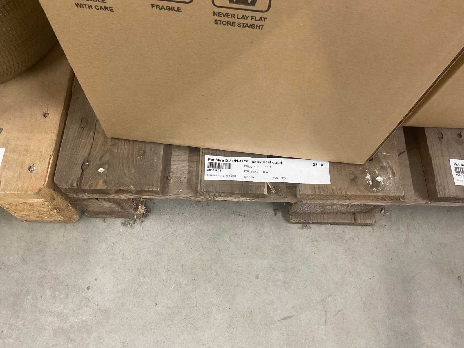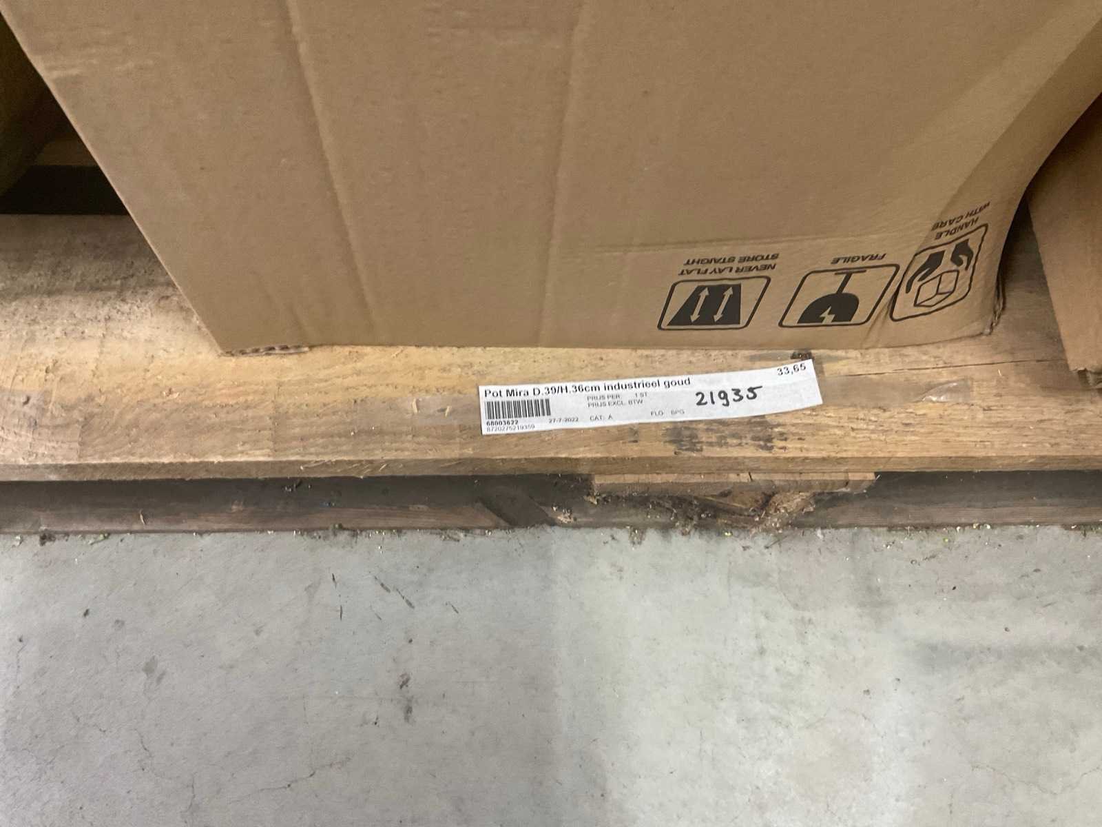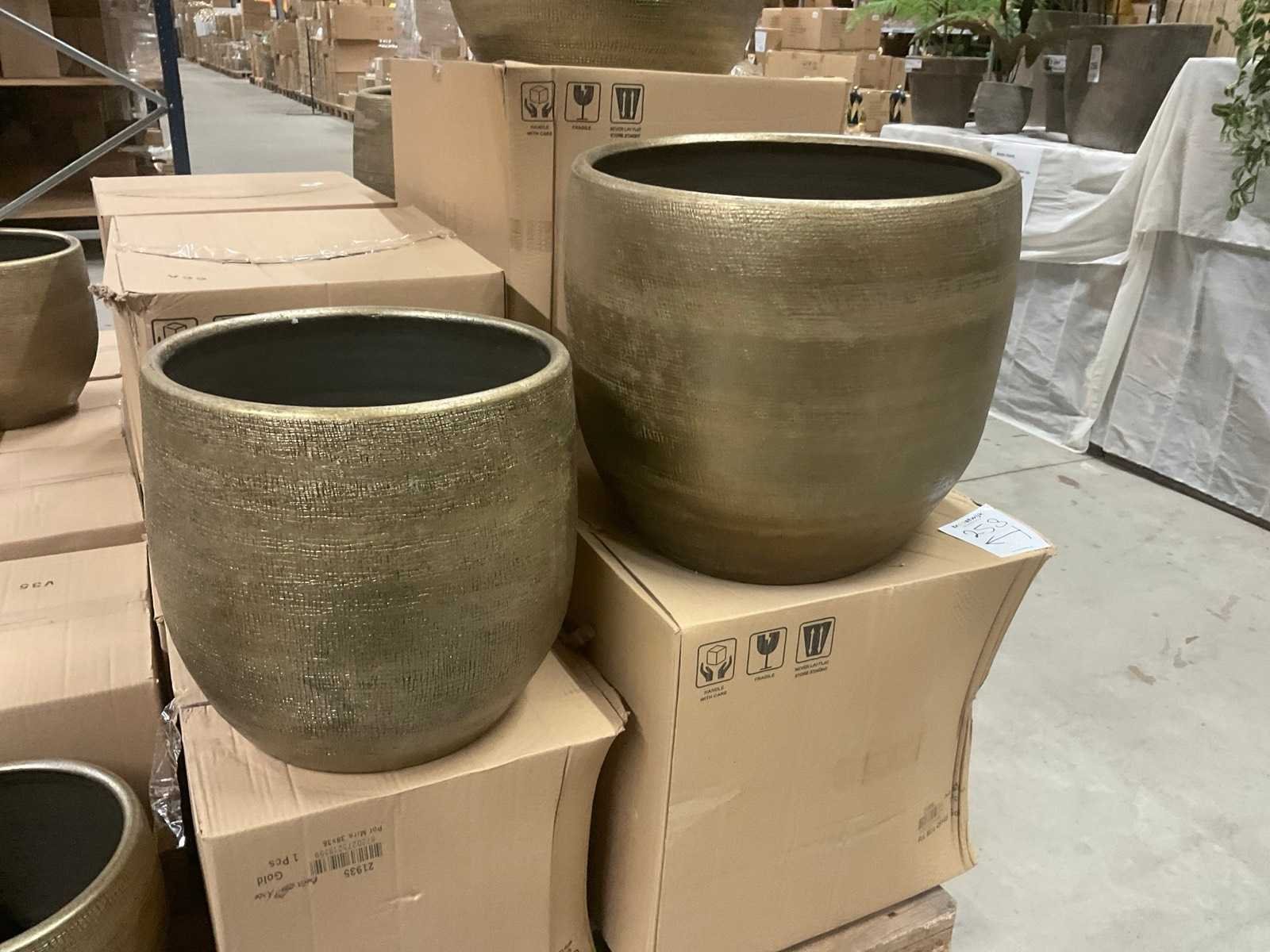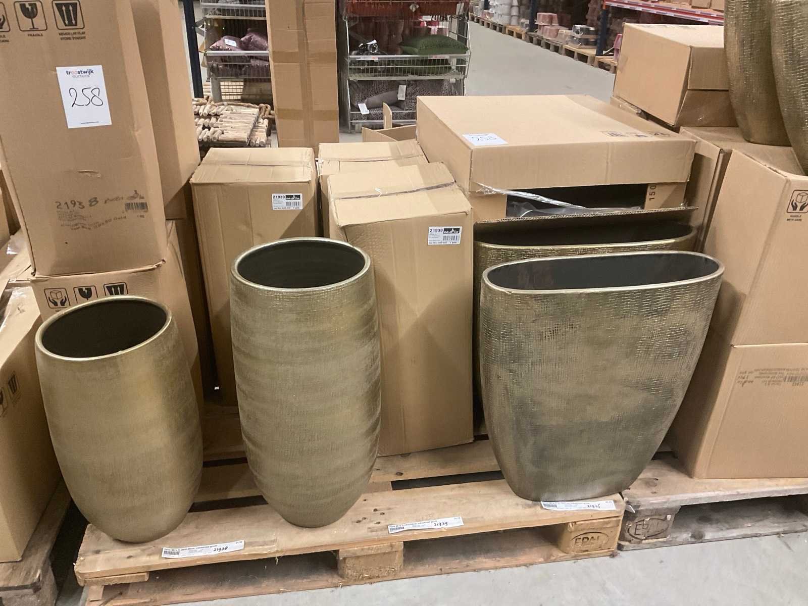 Inhoud op 10 pallets, bestaande uit bloempotten van 16 tot 57 cm hoog, inclusief pallets.