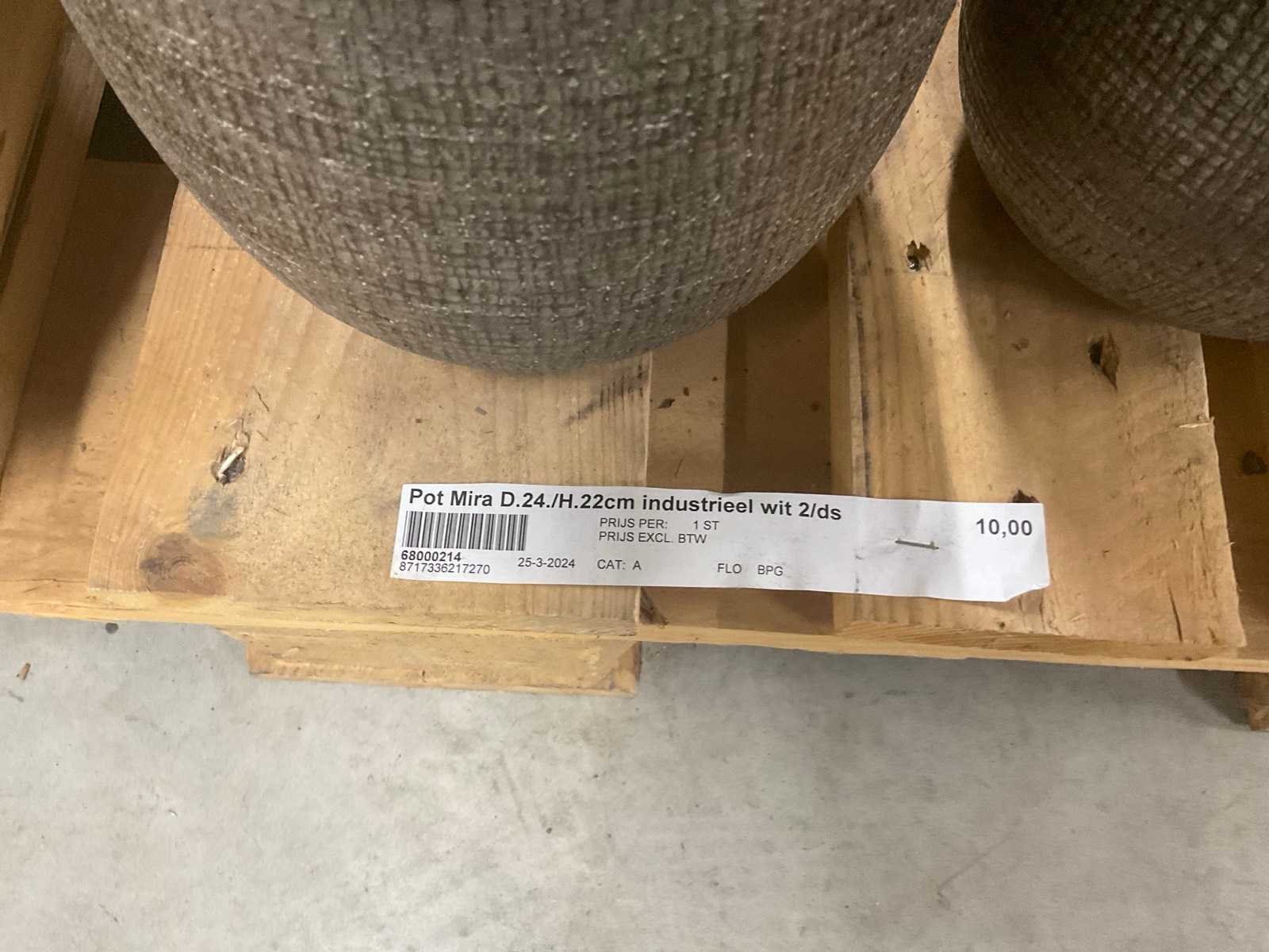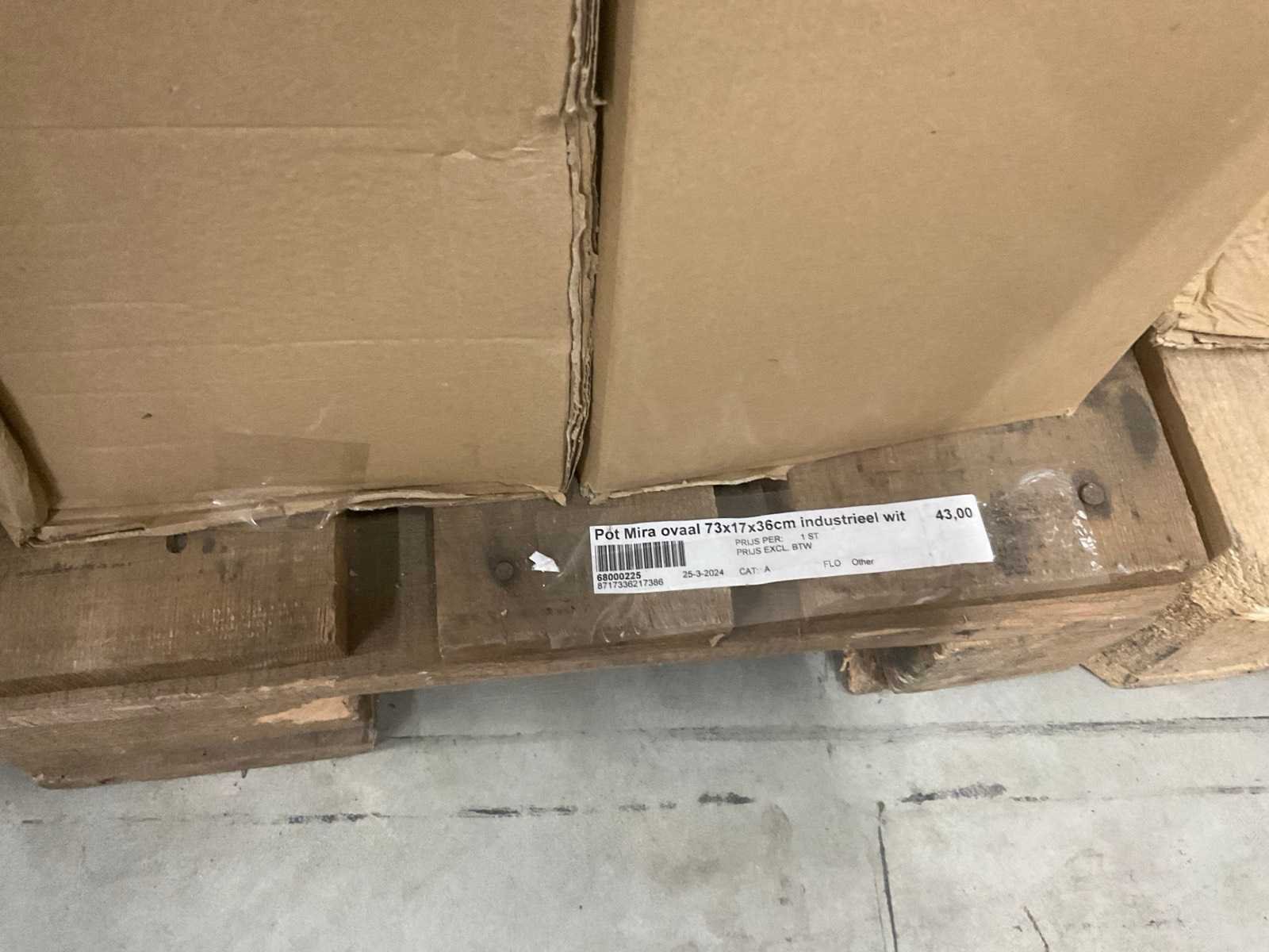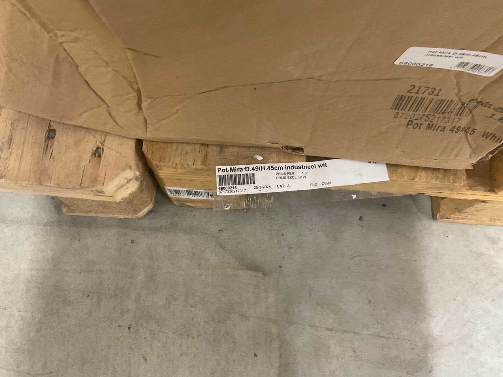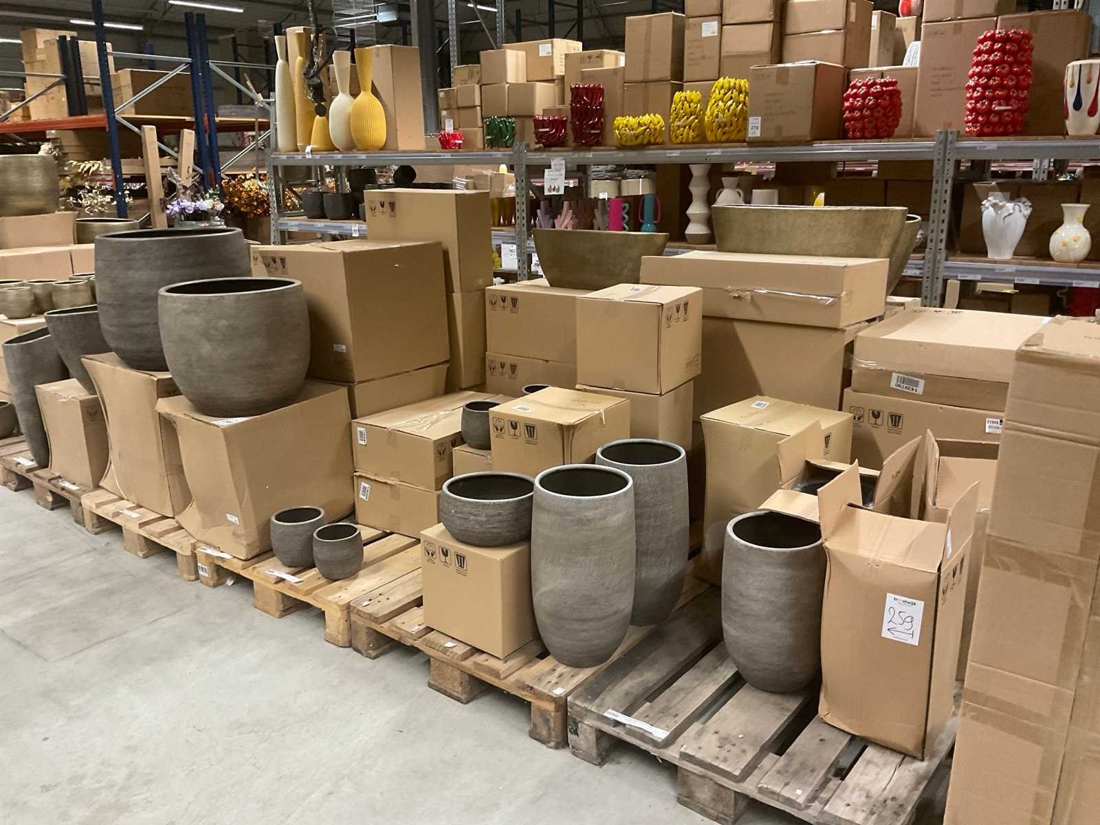 Inhoud op 5 pallets, bestaande uit bloempotten van 16 tot 57 cm hoog, inclusief pallets.