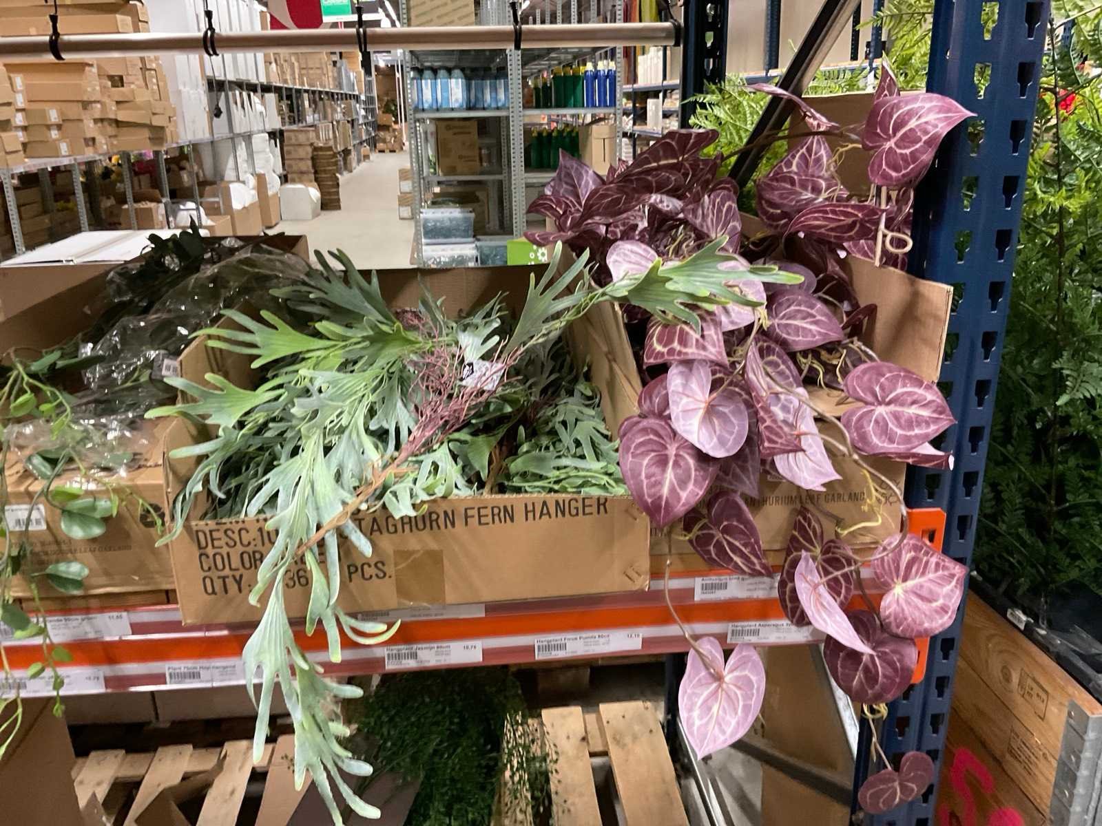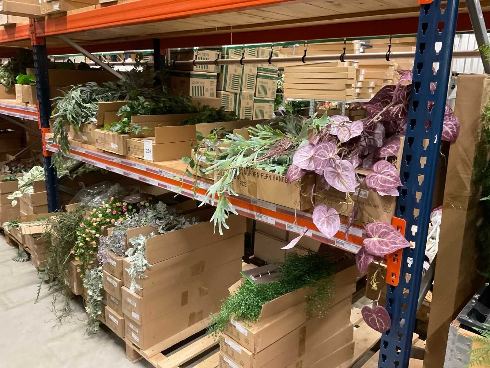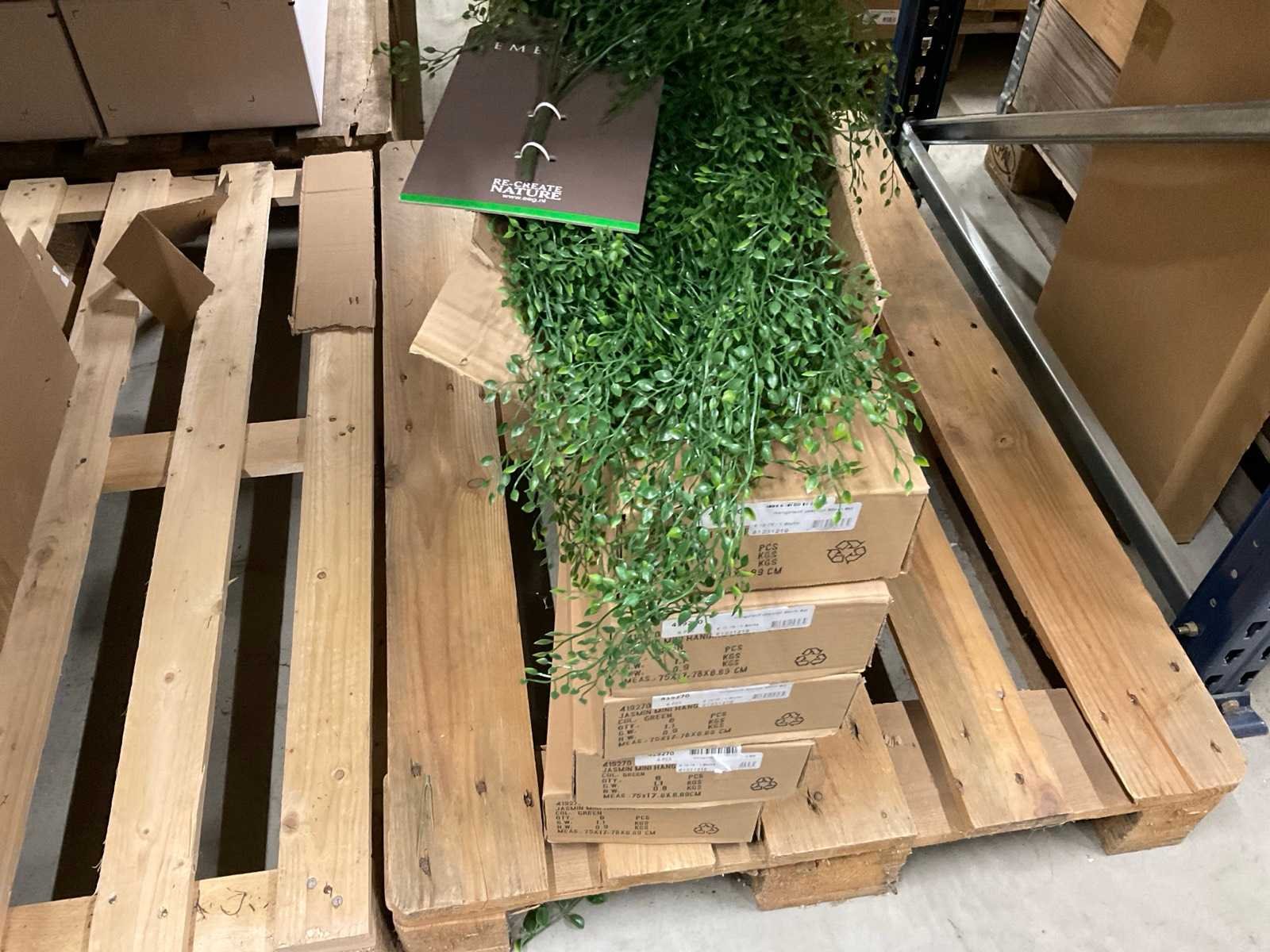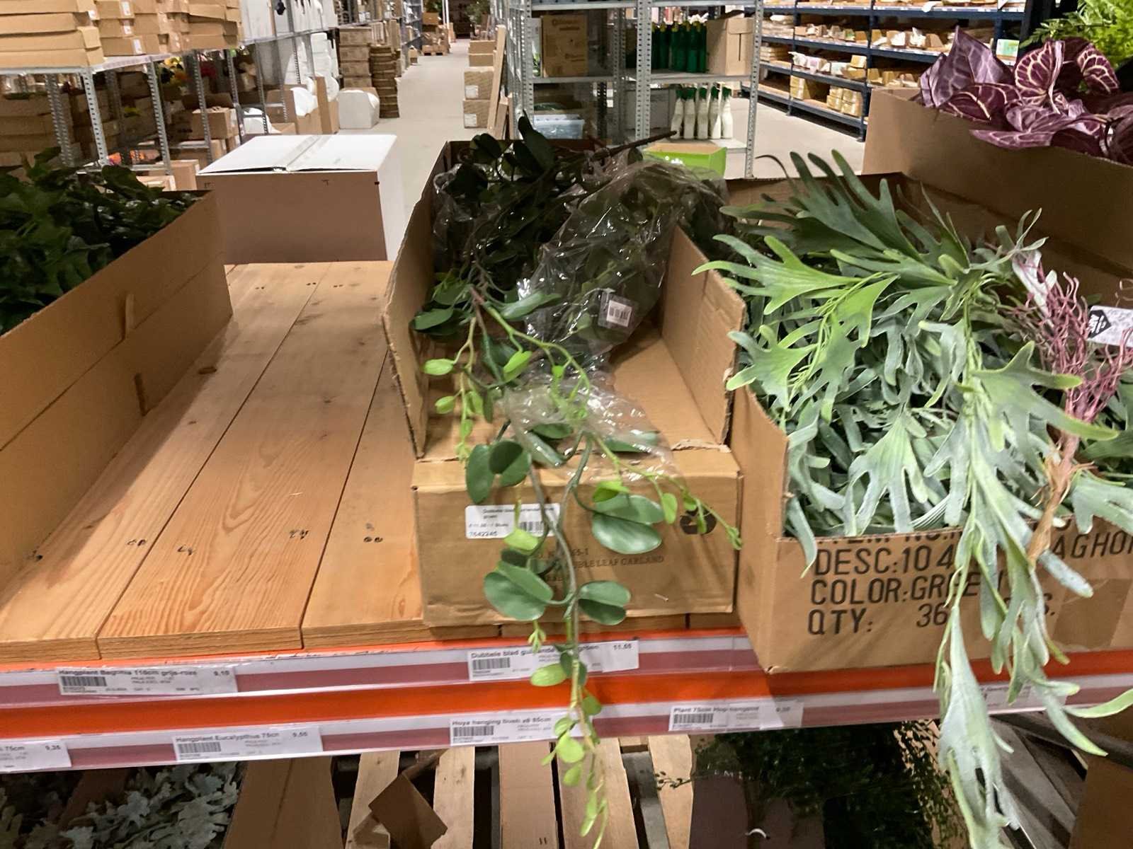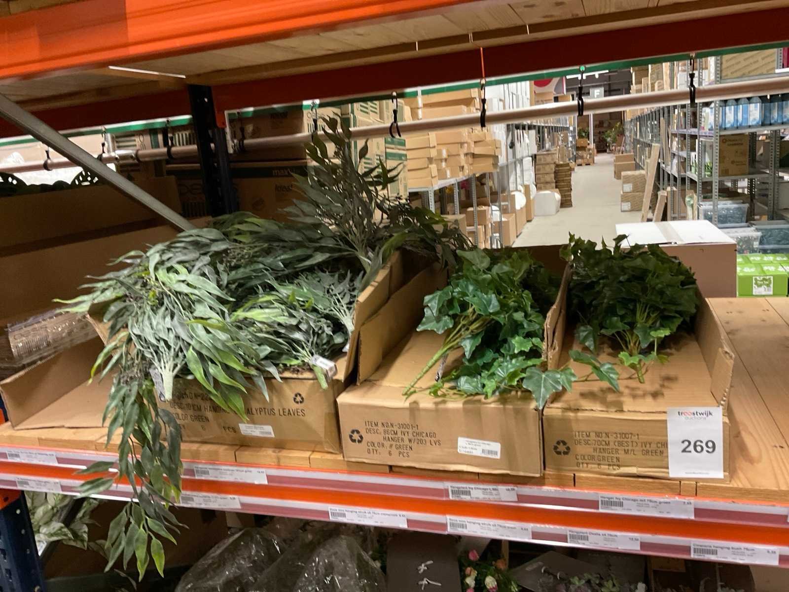 Inhoud van 1 sectie van stelling bestaande o.a uit hangplanten, Eucalyptus en Jasmijn, exclusief stelling.