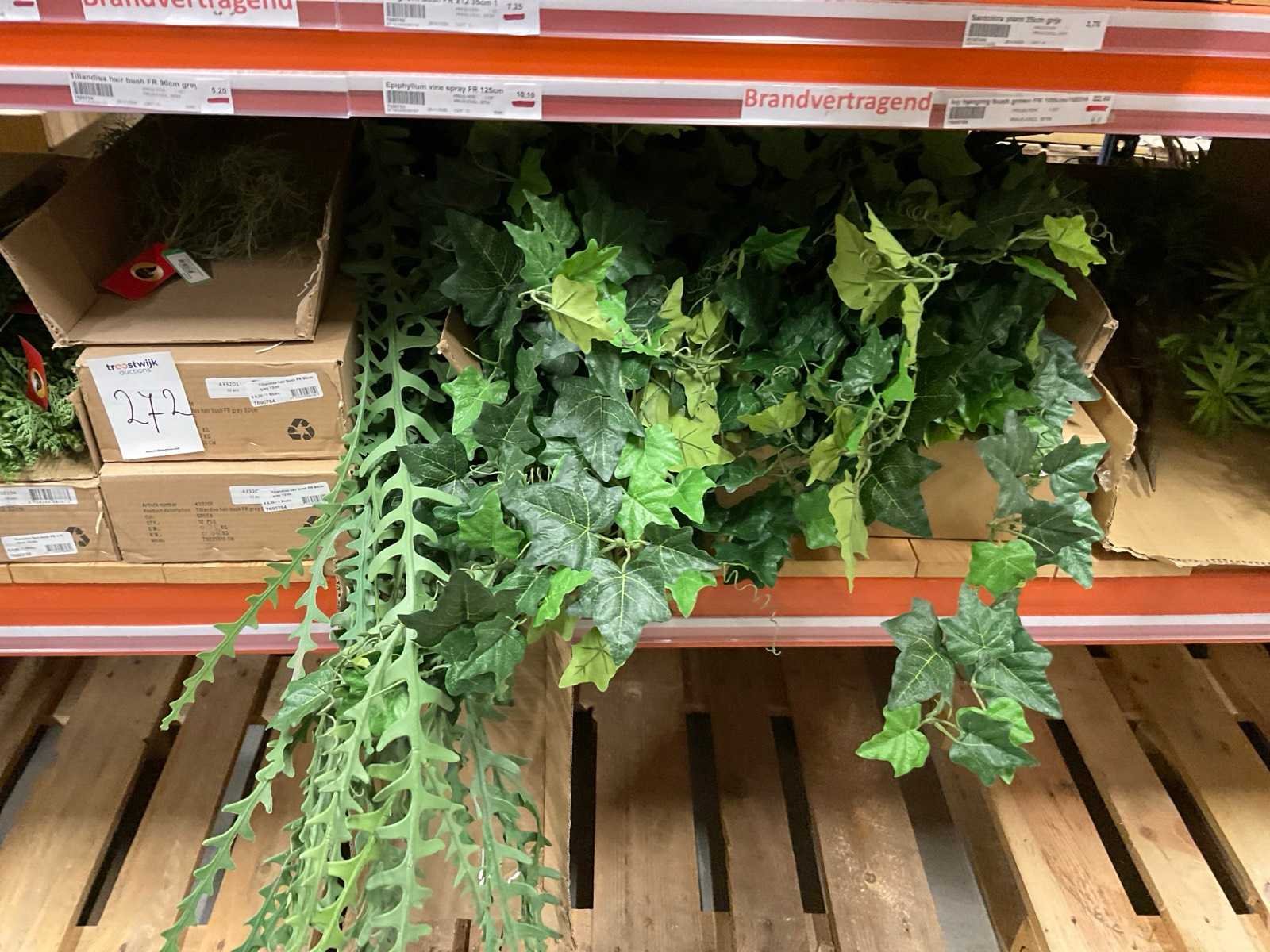 Inhoud van 1 sectie van stelling bestaande o.a bladtakken en hangplanten, exclusief stelling. Merk: Silka en Art
