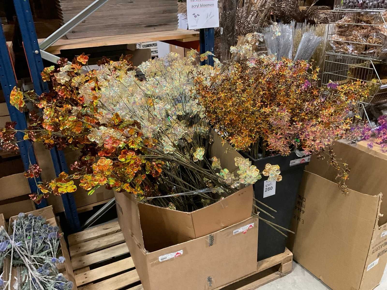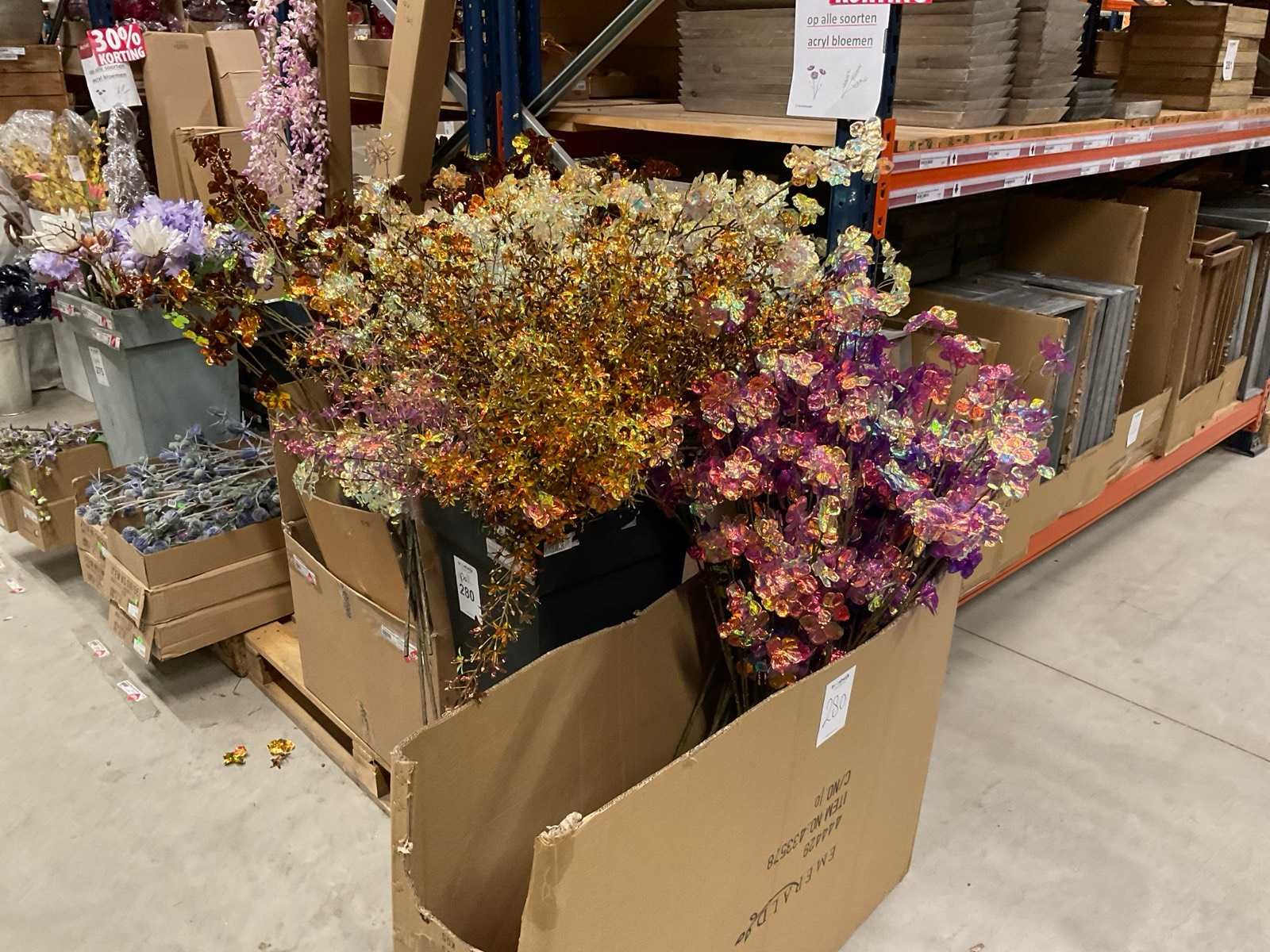 Inhoud op 1 pallet bestaande o.a. uit acryl bloesem, inclusief zinken emmer en pallet. Merk: Silka