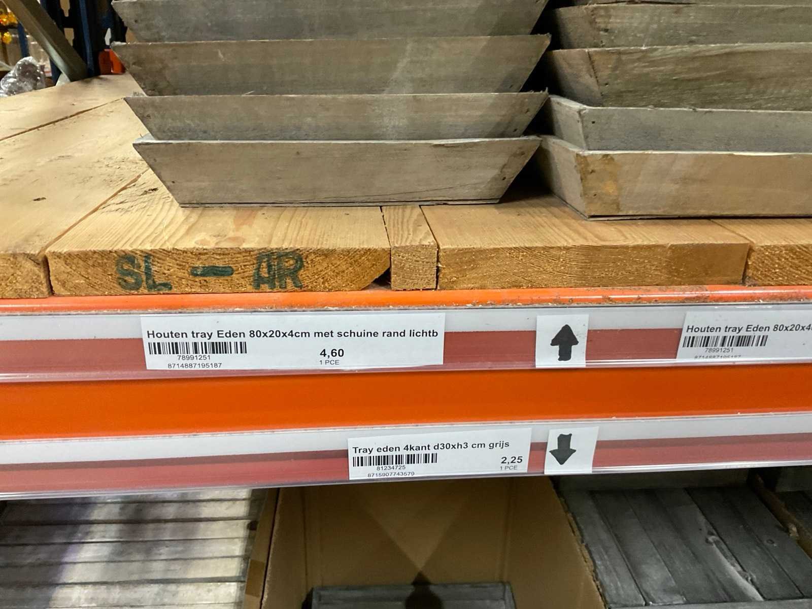 Inhoud van 1 sectie van stelling bestaande uit diverse afmetingen dienbladen exclusief stelling.