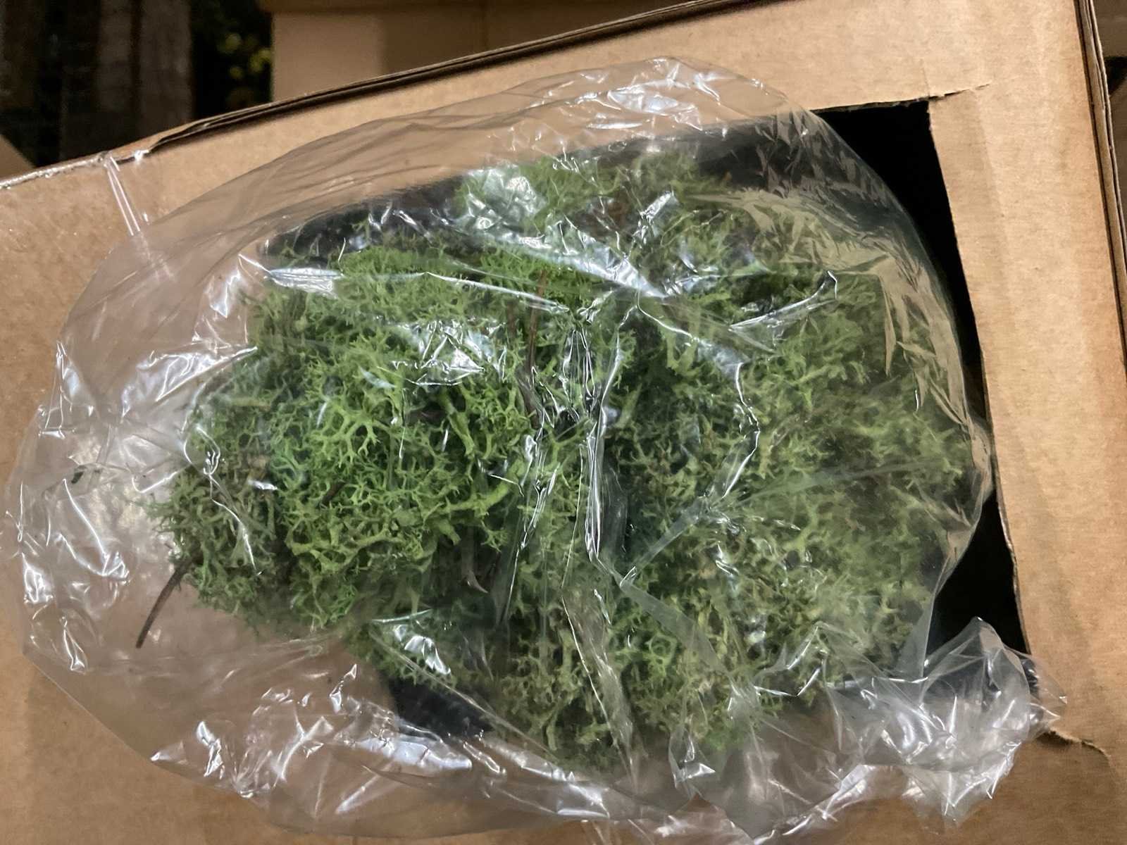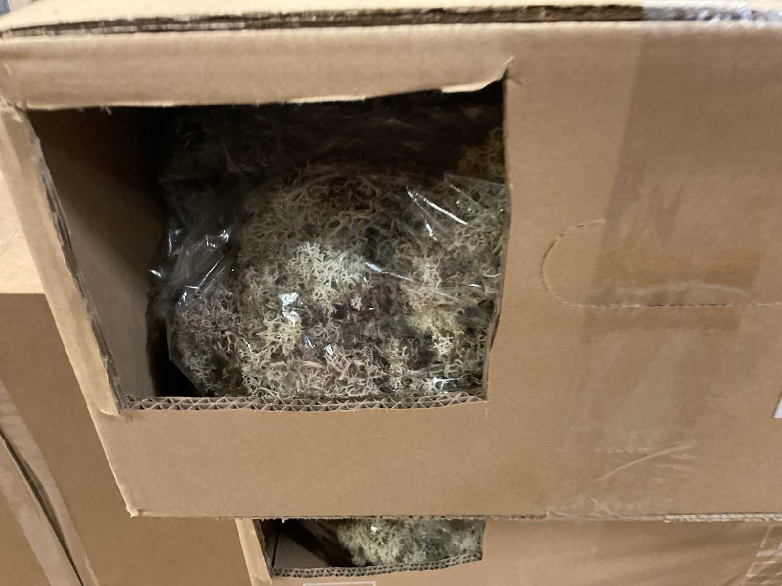 Inhoud op pallet bestaande uit islands mos, naturel en groen ,inclusief pallet