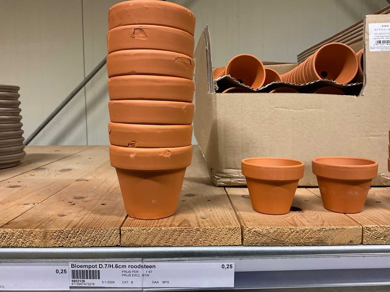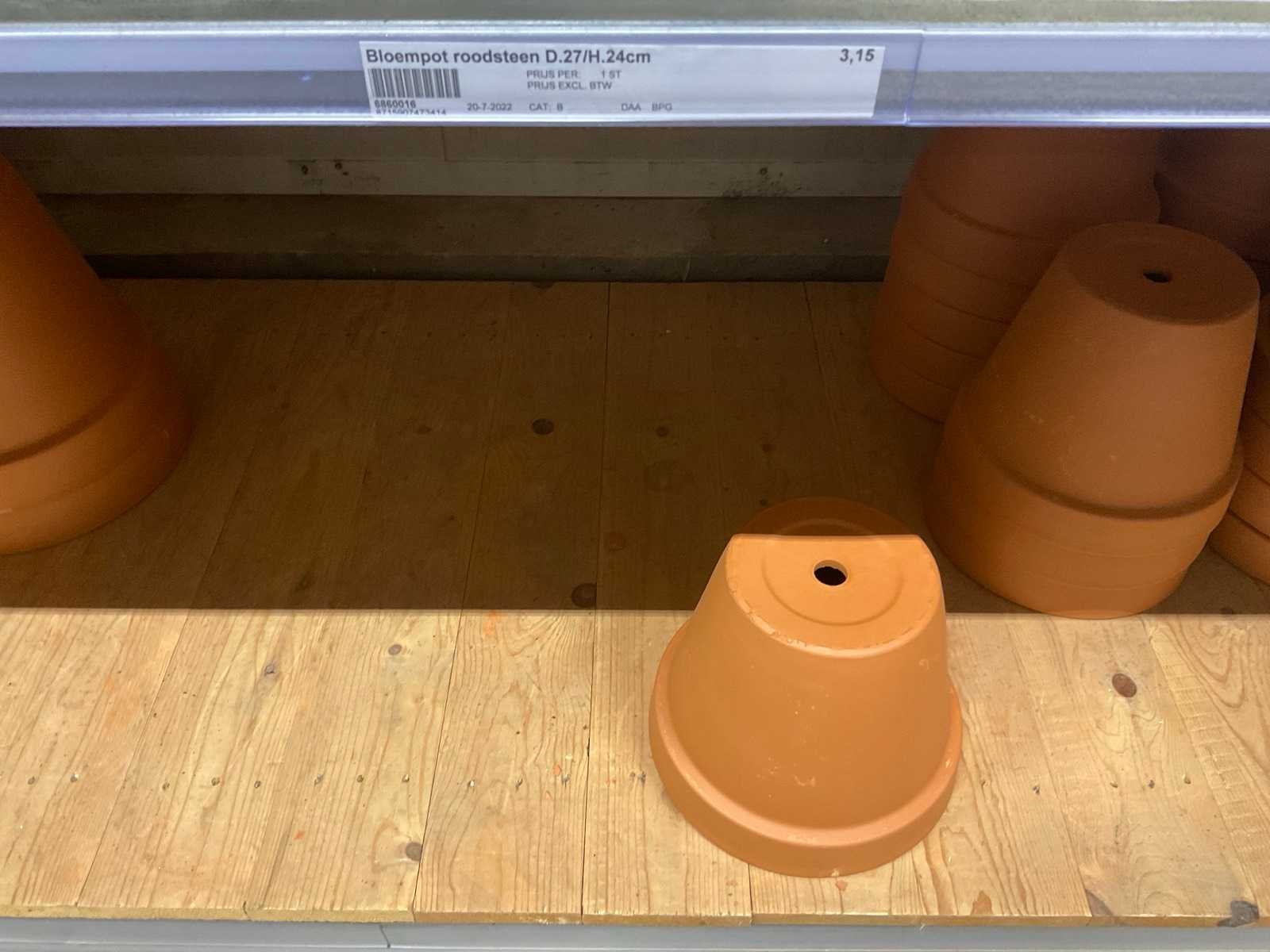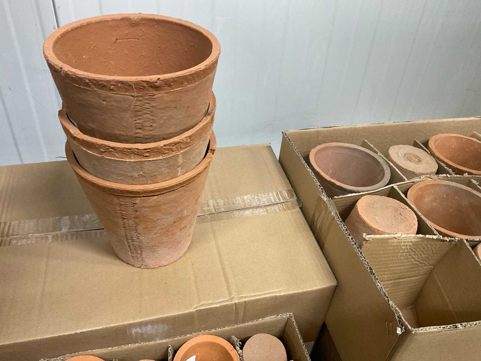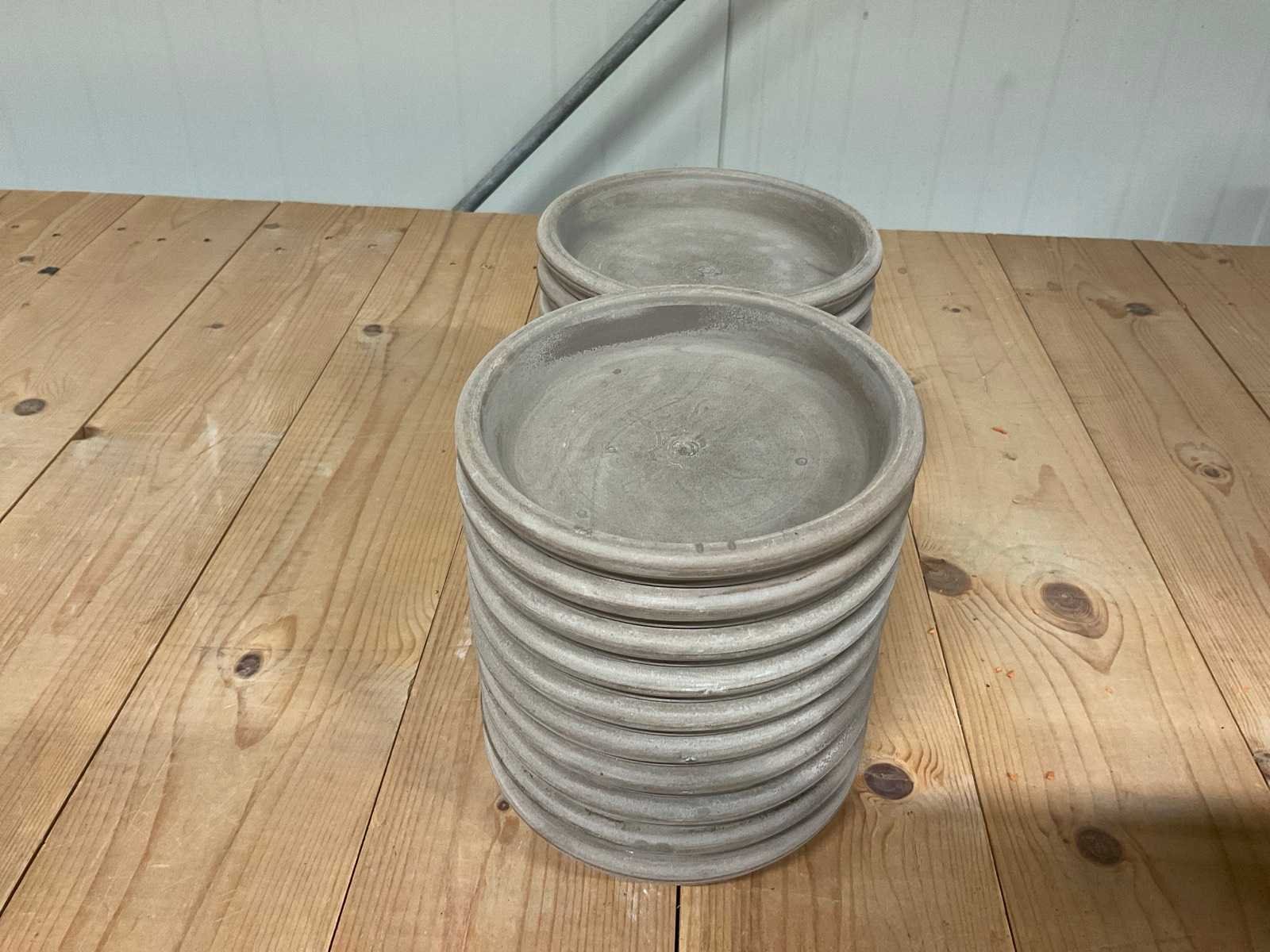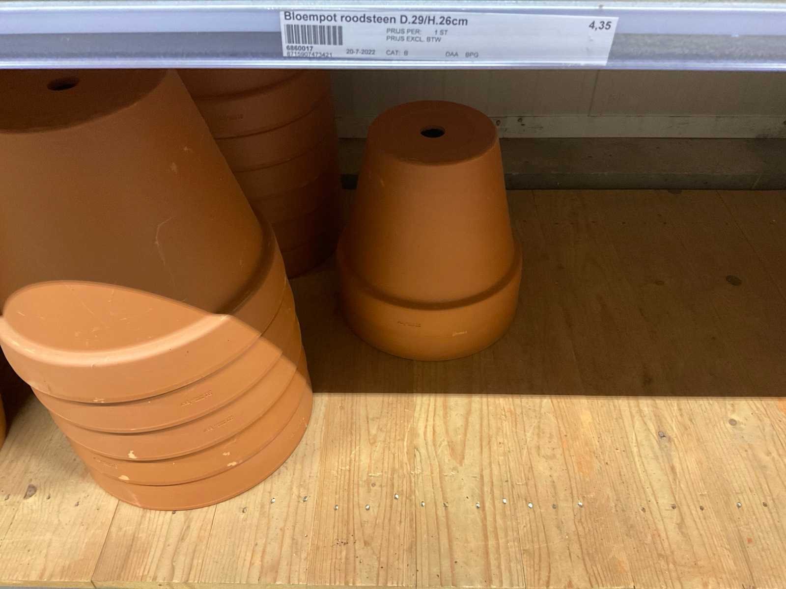Diverse potten en schalen op en in stelling, in diverse maten en modellen, w.o. Redstone, grijssteen op 5 pallets en in stelling, inclusief pallets, stelling niet inbegrepen, vazen bovenop horen bij kavel 278.