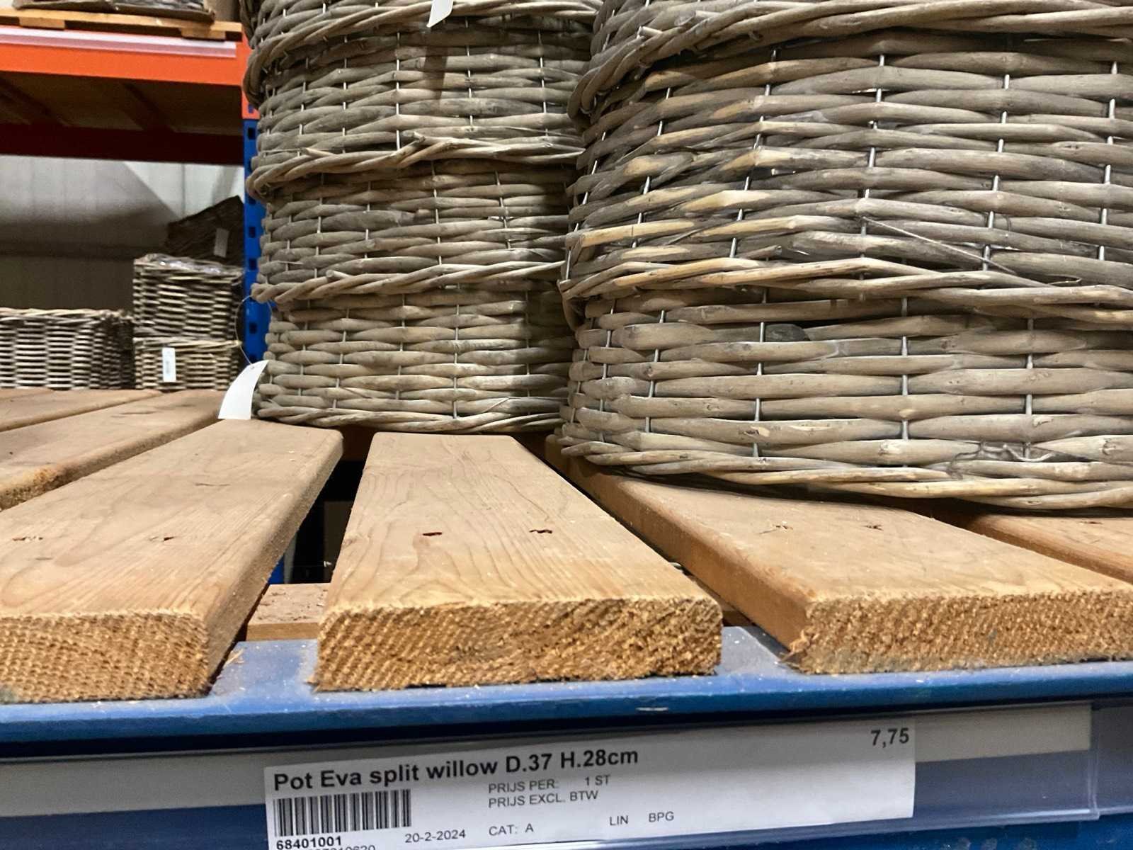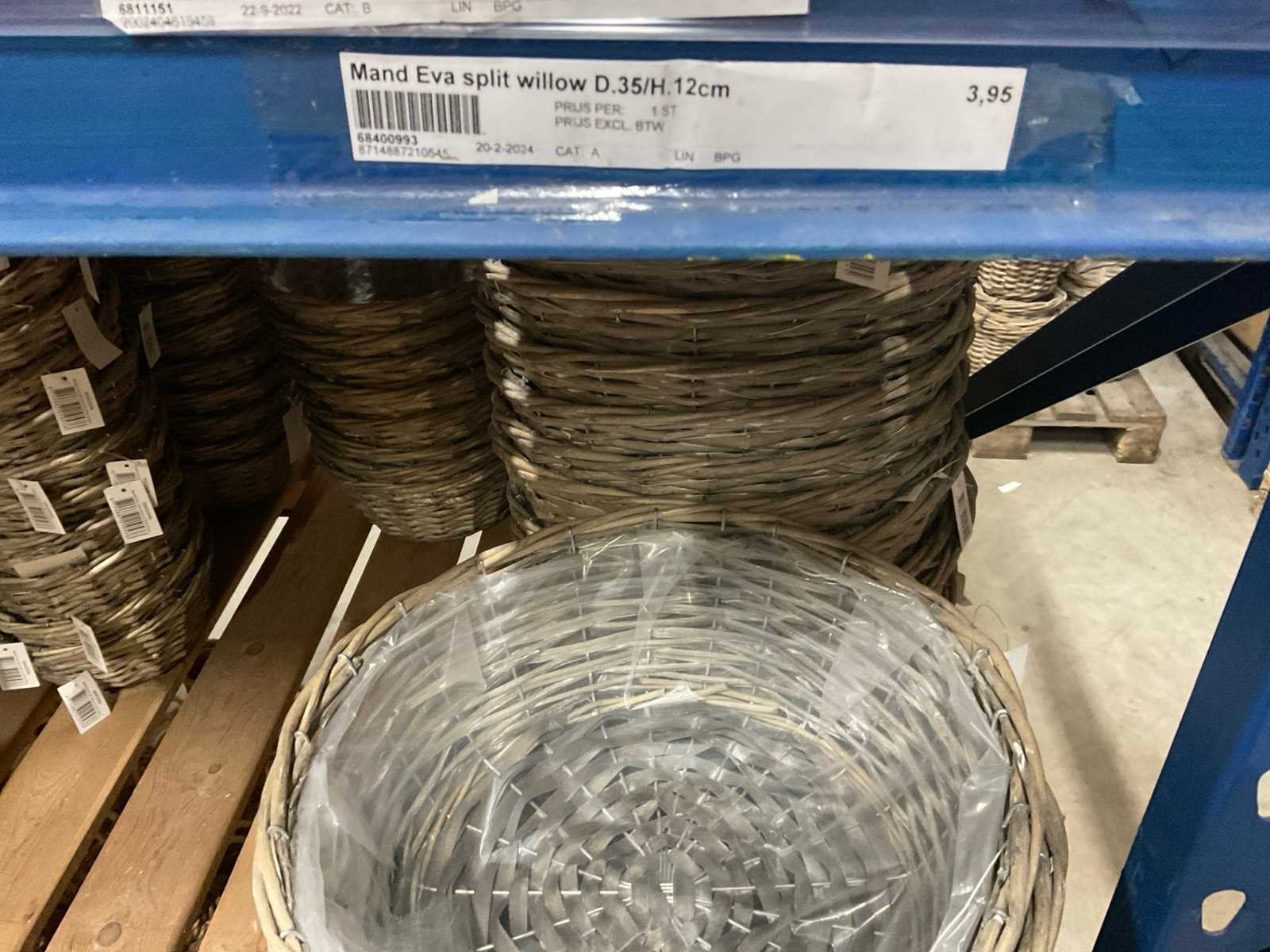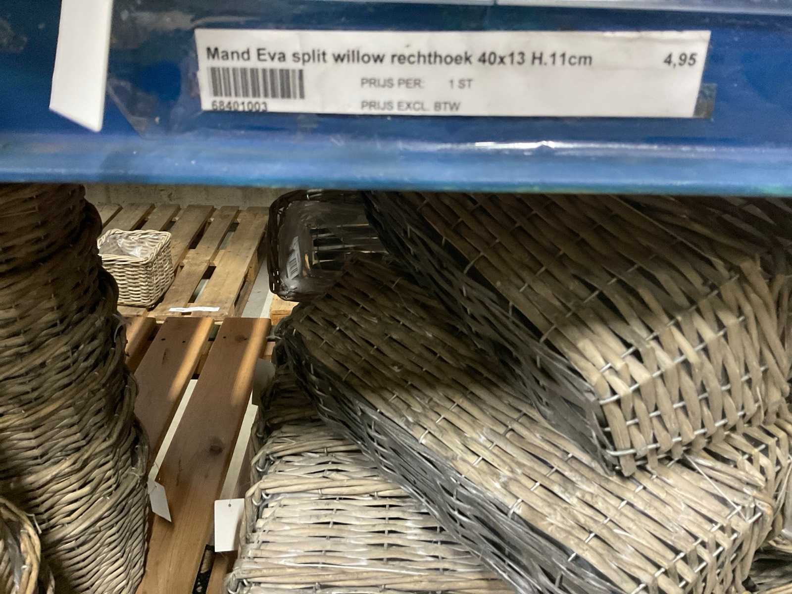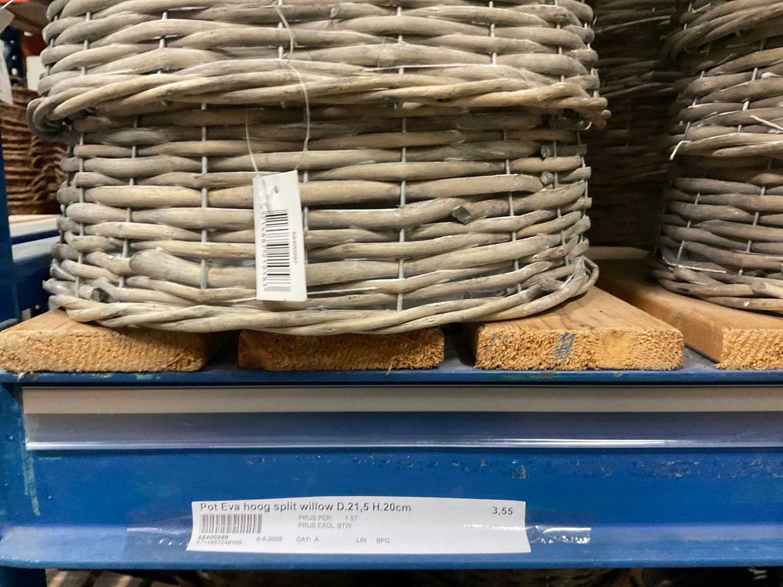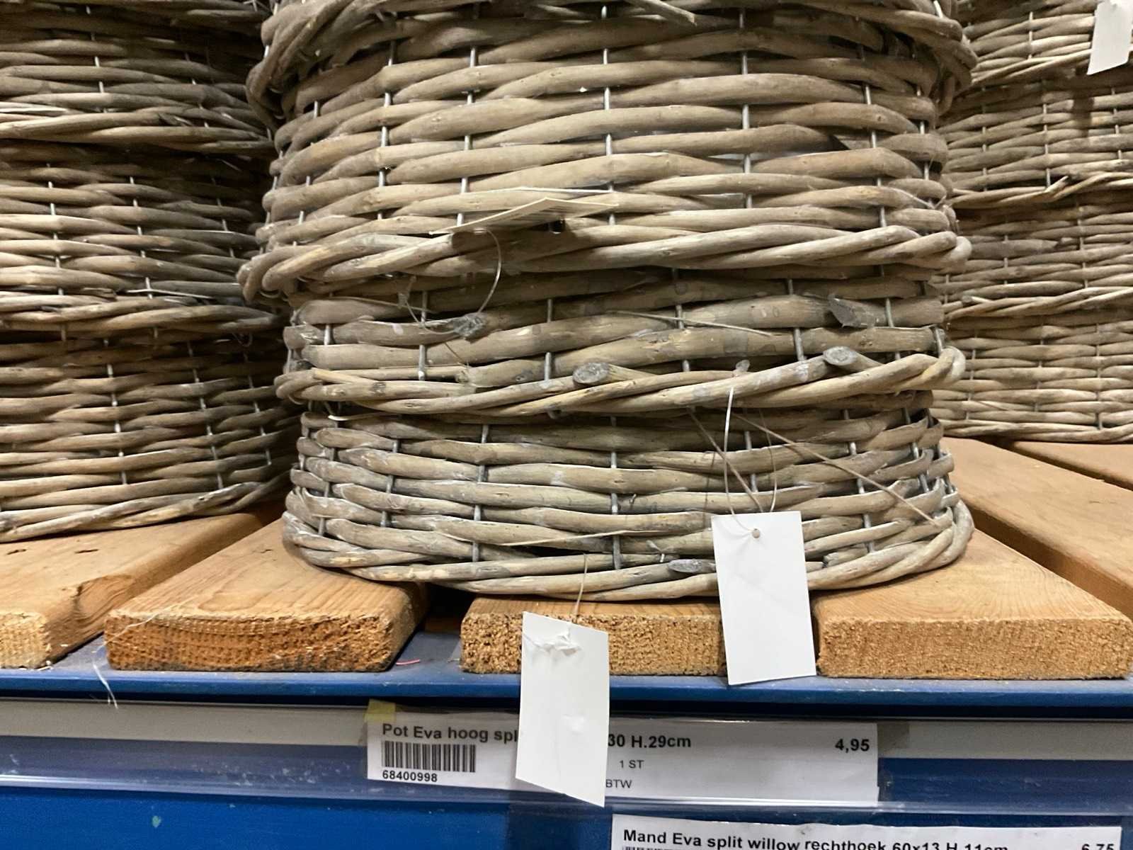 In diverse formaten, vormen en kleuren in 2 stellingsvakken. Materiaal: Wilg