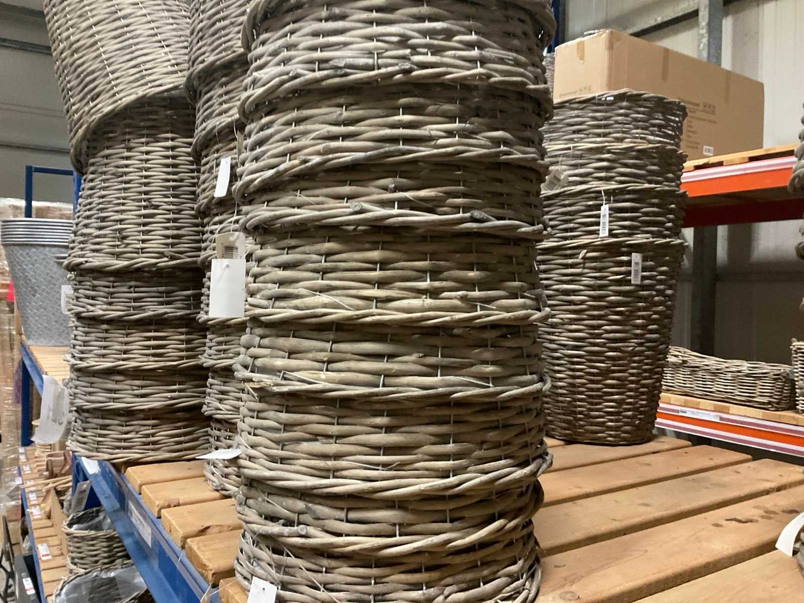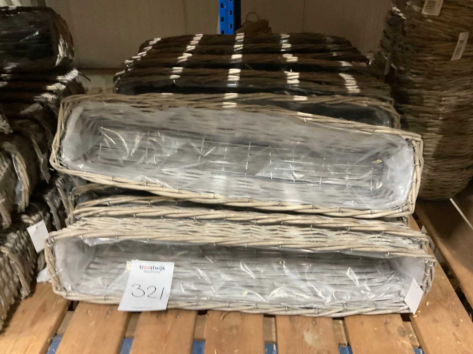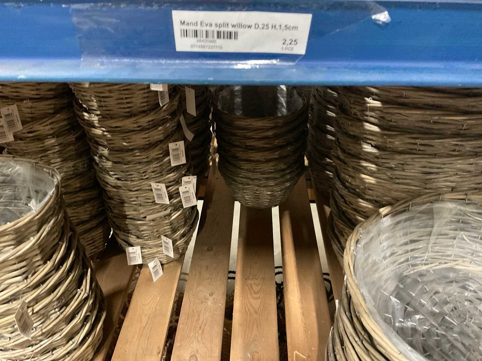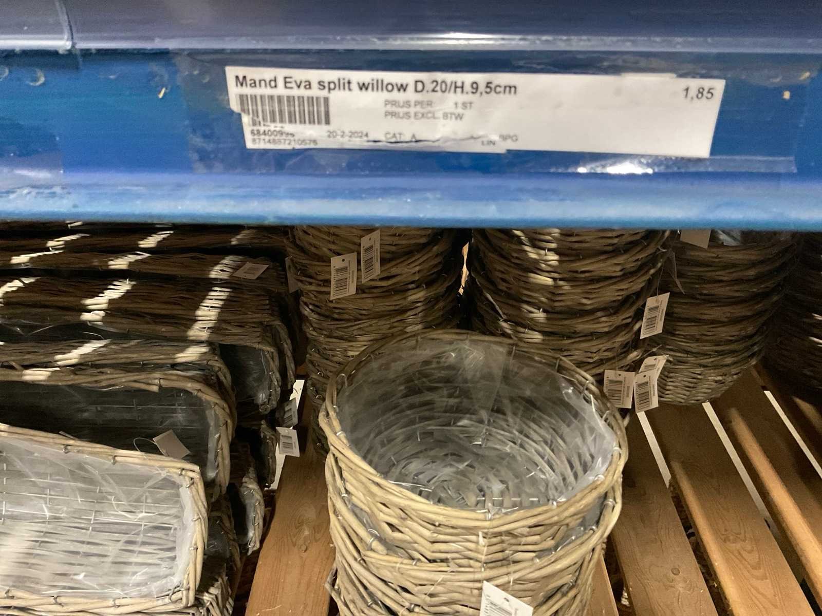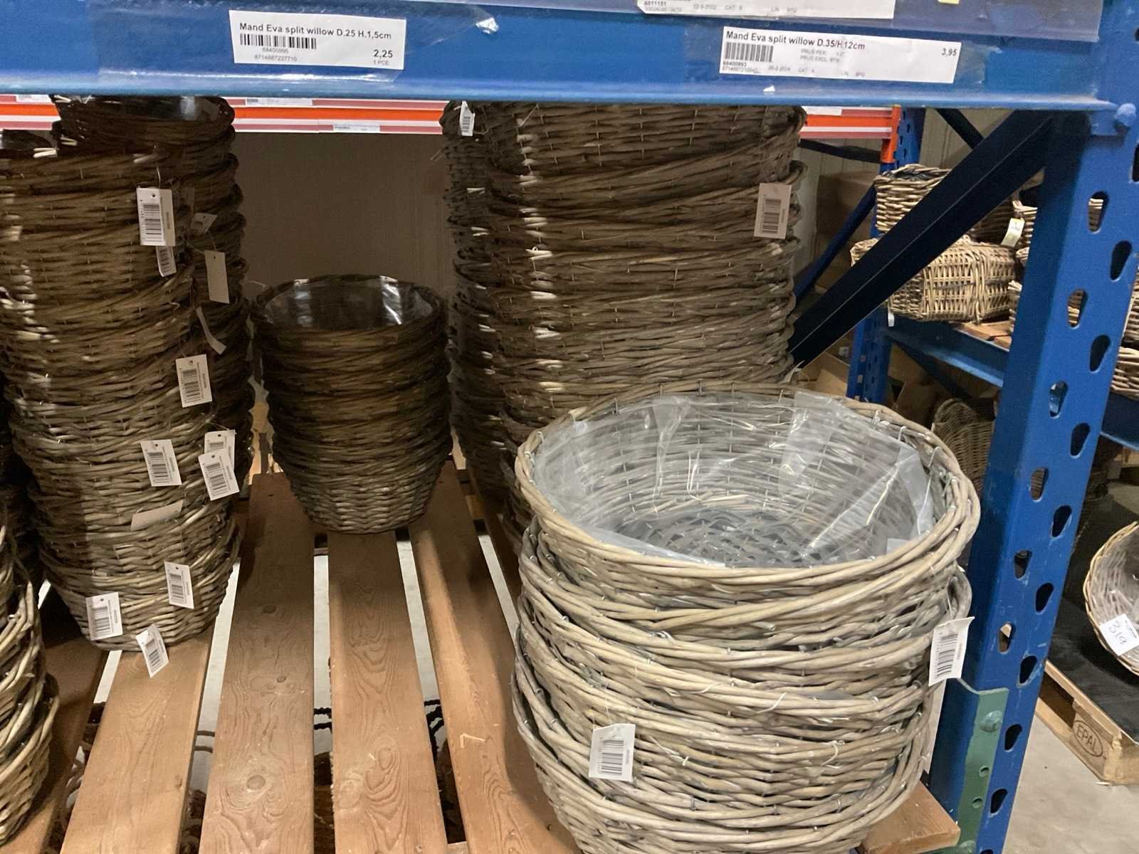 In diverse formaten, vormen en kleuren in 2 stellingsvakken. Materiaal: Wilg